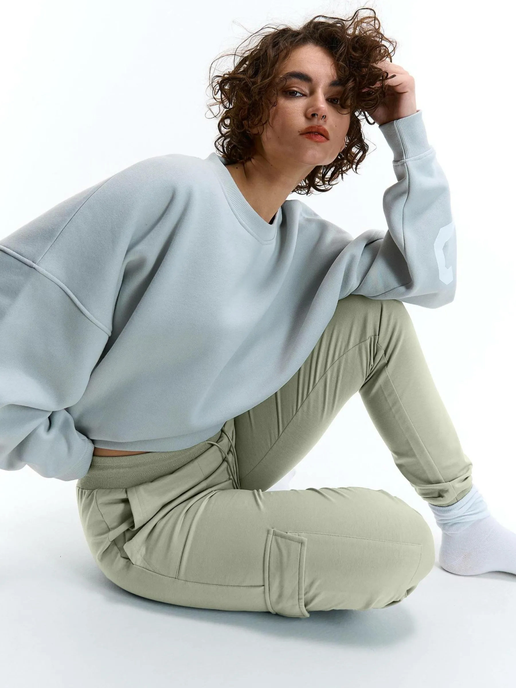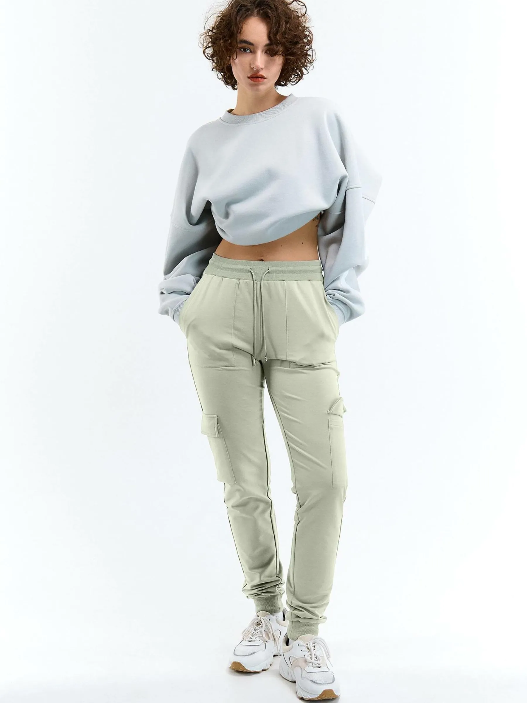 Kolor: zielonyKrój: cargoTyp: spodnie dresoweDługość: dlugiePattern style: pojedynczy kolorDetal: ze sznurowaniem, z…