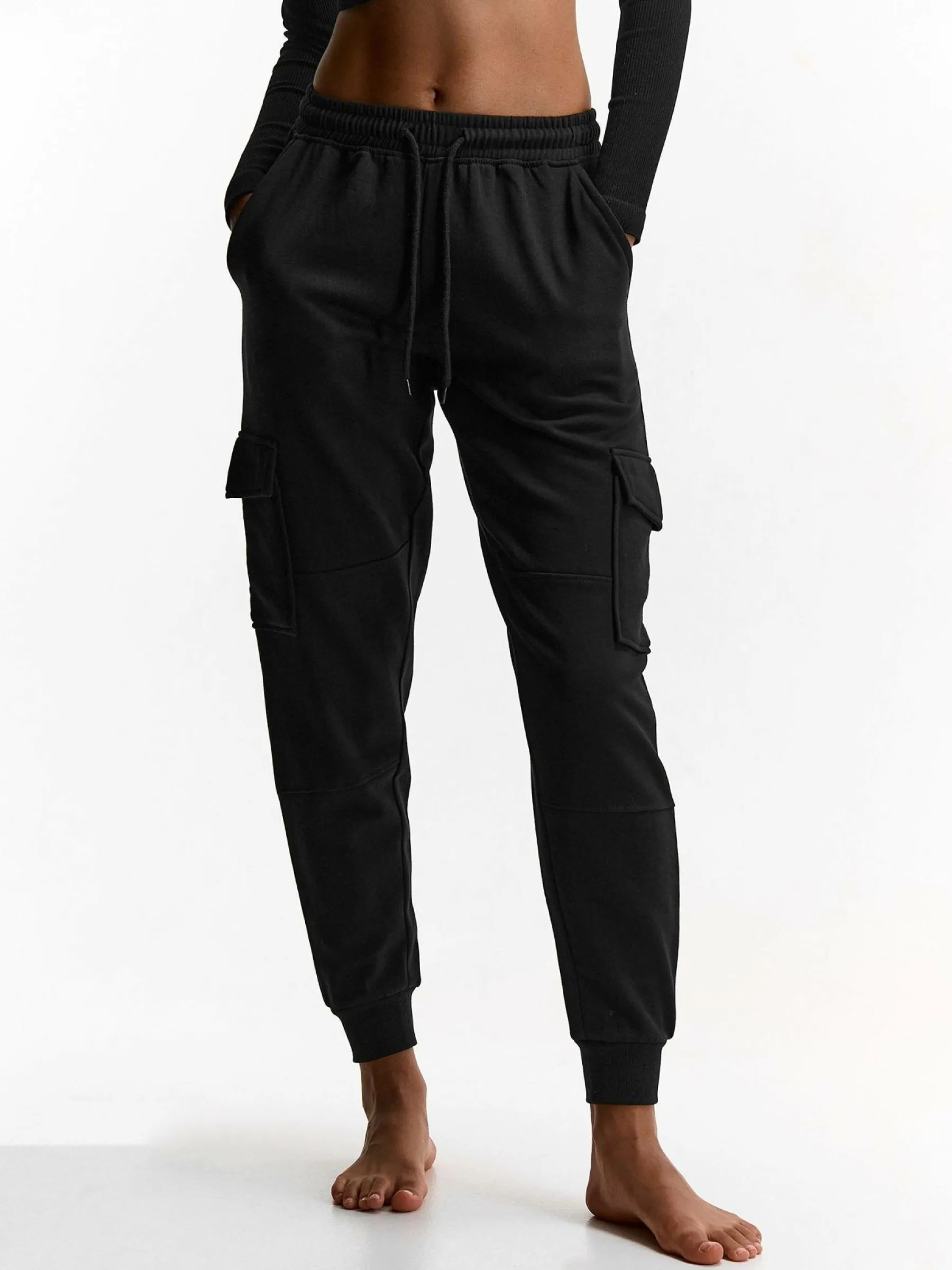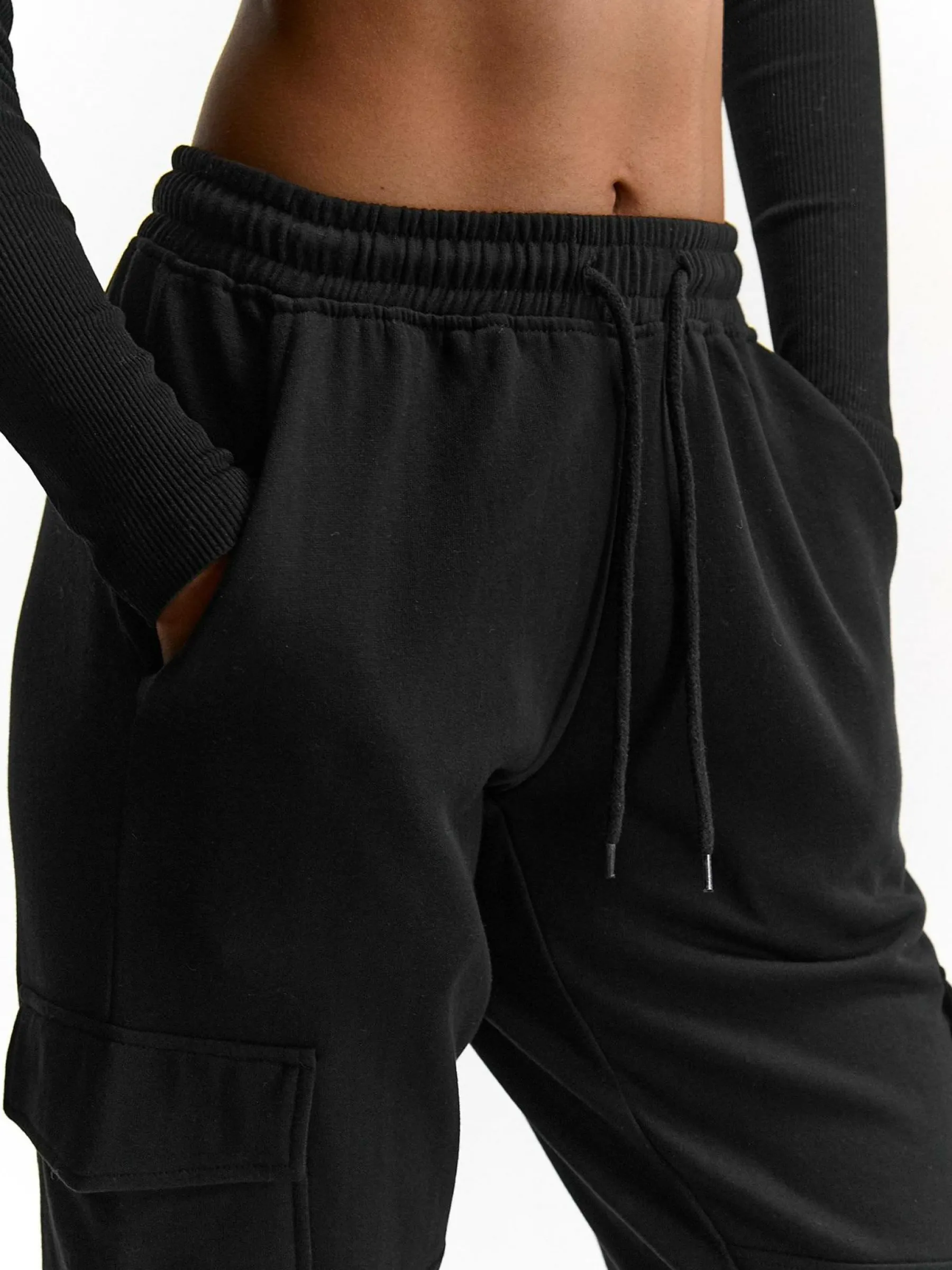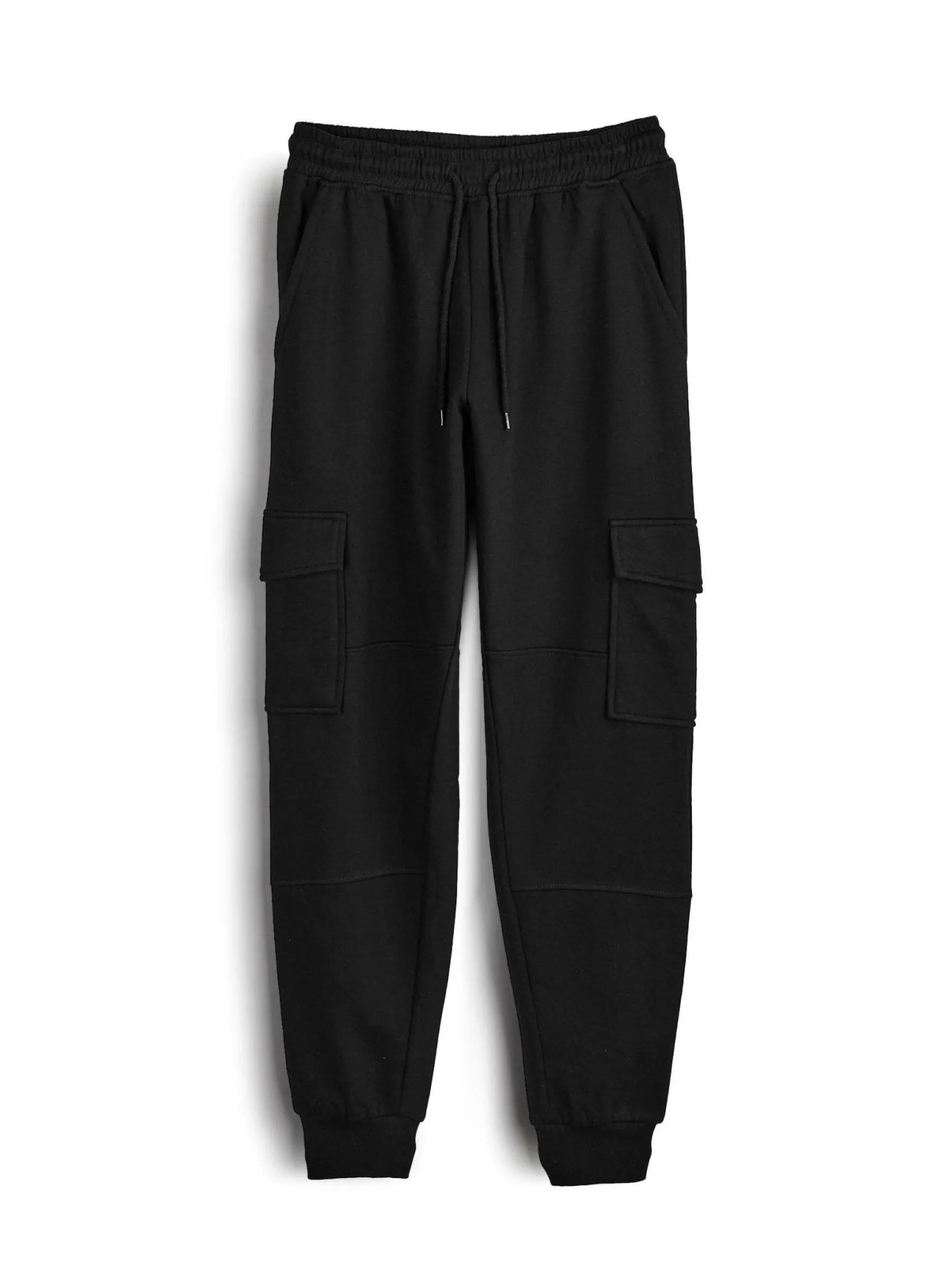 Kolor: czarnyKrój: cargoTyp: spodnie dresoweDługość: dlugiePattern style: pojedynczy kolorDetal: ze sznurowaniem, z …