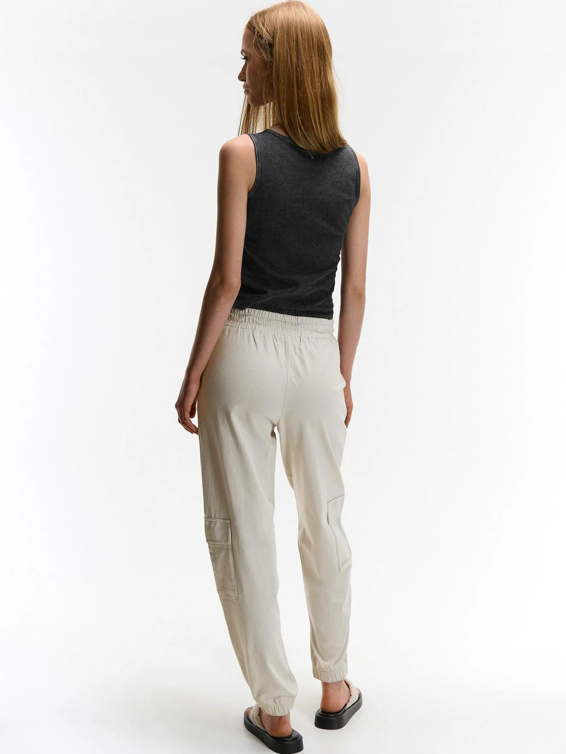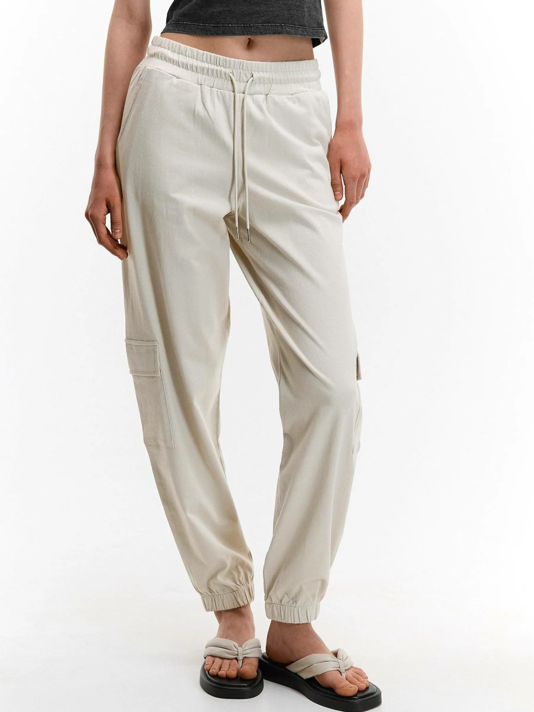 Kolor: beżowyKrój: cargoTyp: spodnie dresoweDługość: dlugiePattern style: pojedynczy kolorDetal: ze sznurowaniem, z…