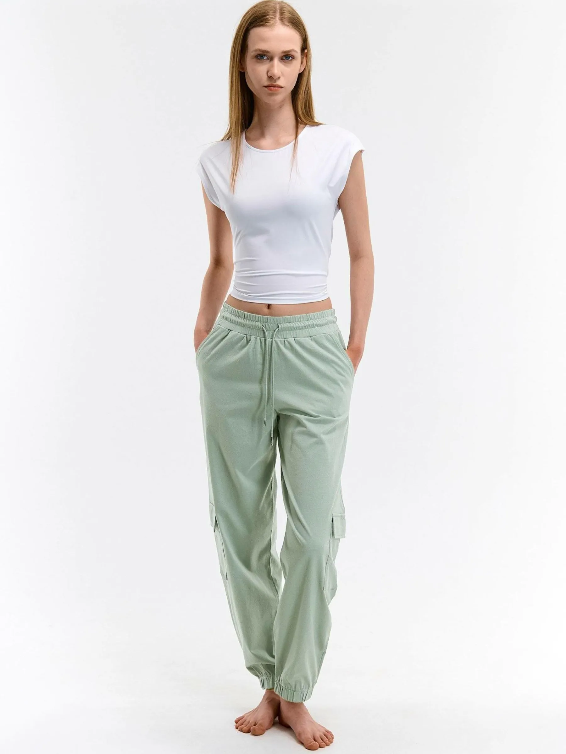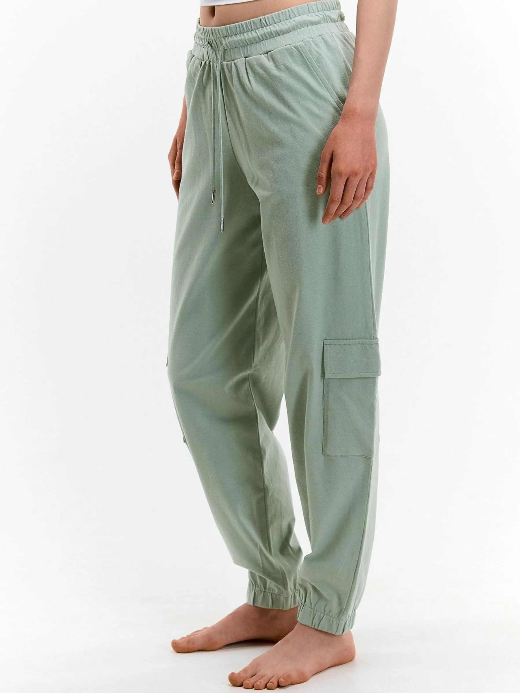 Kolor: zielonyKrój: cargoTyp: spodnie dresoweDługość: dlugiePattern style: pojedynczy kolorDetal: ze sznurowaniemMat…