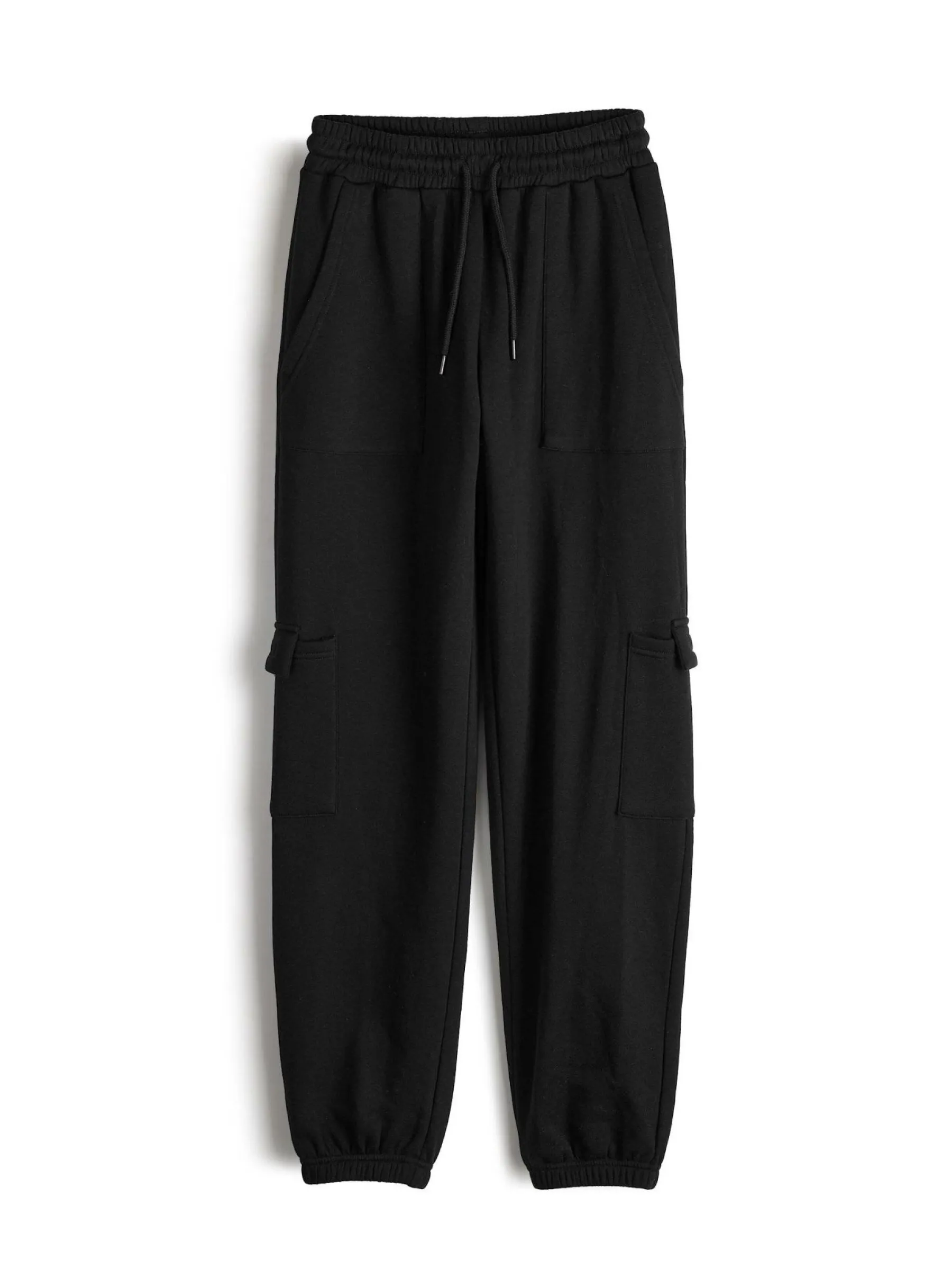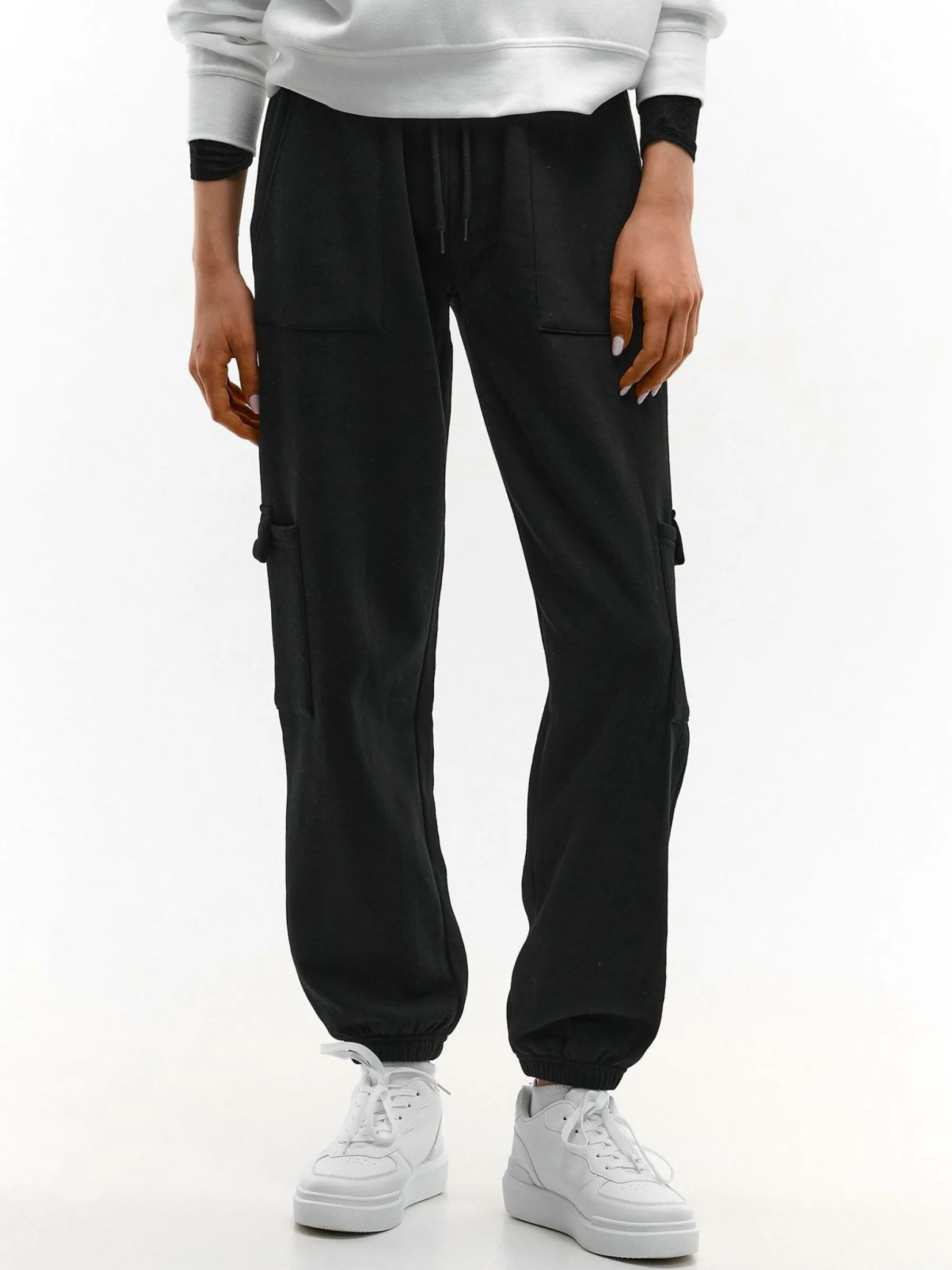 Kolor: czarnyKrój: cargoTyp: spodnie dresoweDługość: dlugiePattern style: pojedynczy kolorDetal: z kieszeniami, ze s…