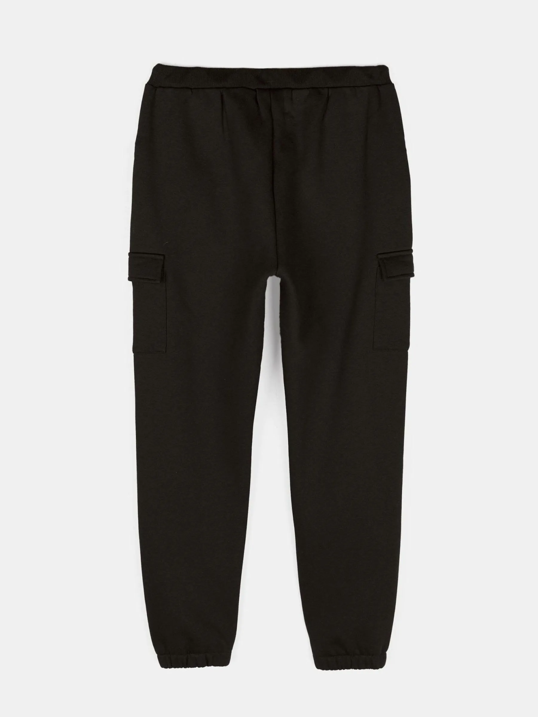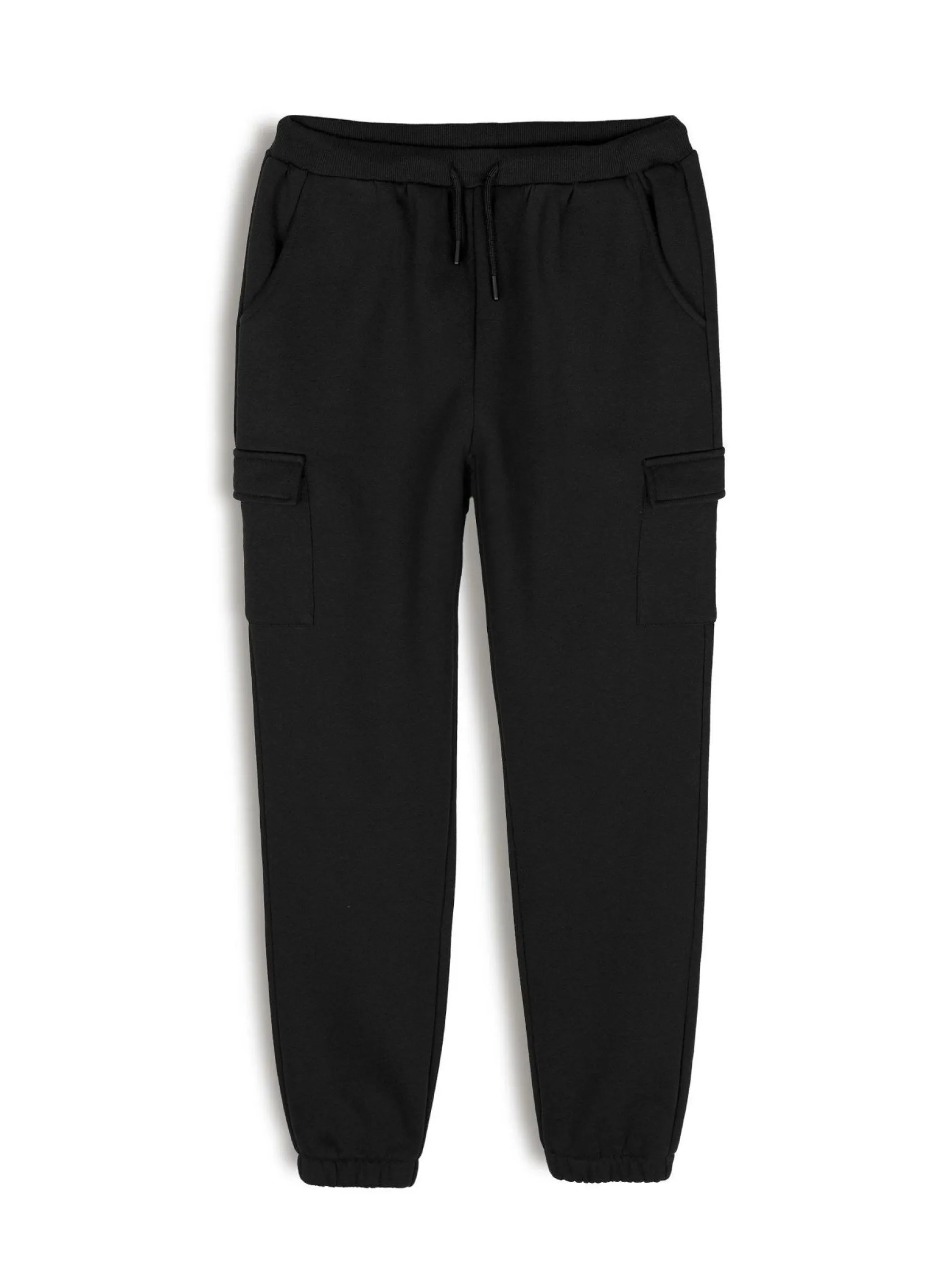 Kolor: czarnyKrój: cargoTyp: spodnie dresoweDługość: dlugiePattern style: pojedynczy kolorDetal: ze sznurowaniem, z …