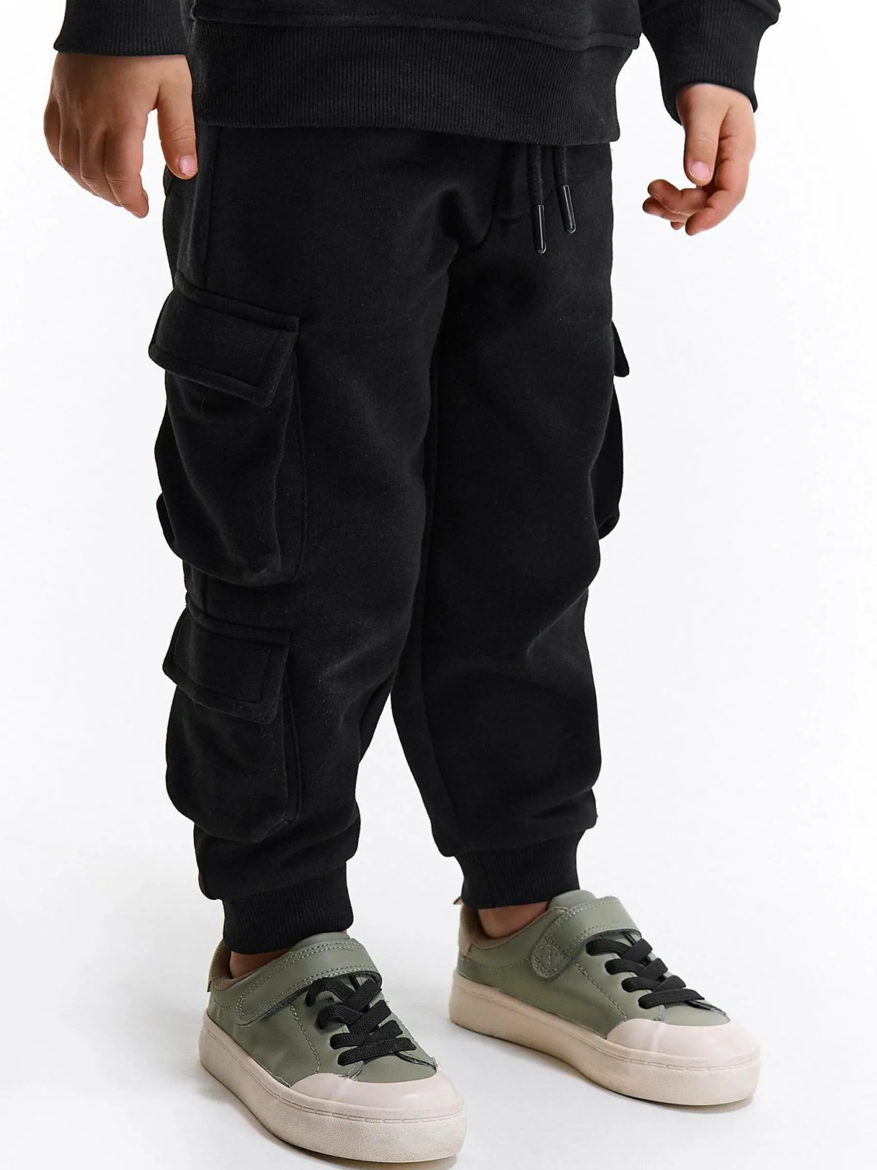 Kolor: czarnyKrój: cargoTyp: spodnie dresoweDługość: dlugiePattern style: pojedynczy kolorDetal: ze sznurowaniem, z …