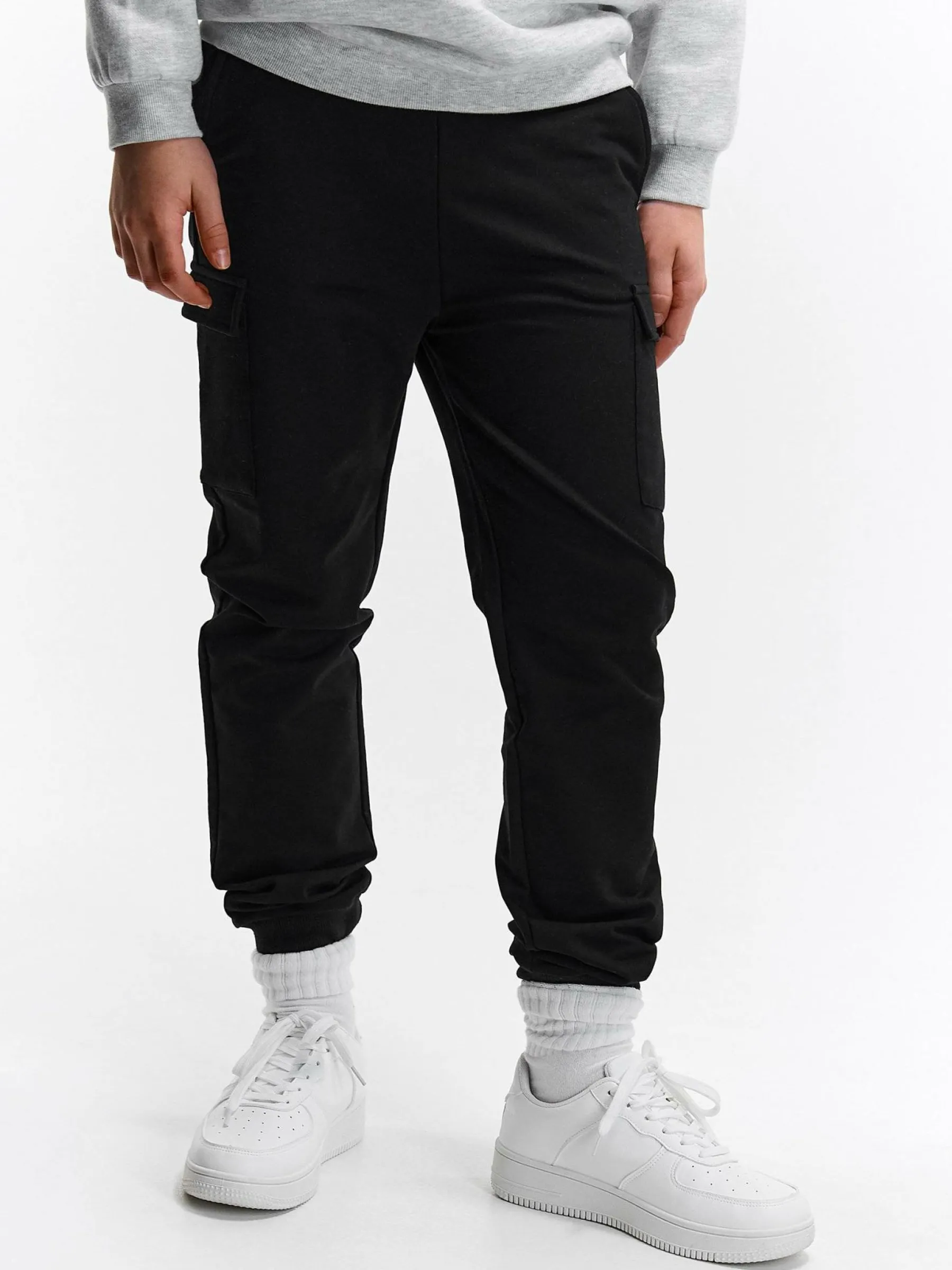 Kolor: czarnyKrój: joggerTyp: spodnie dresoweDługość: dlugiePattern style: pojedynczy kolorDetal: ze sznurowaniem, z…