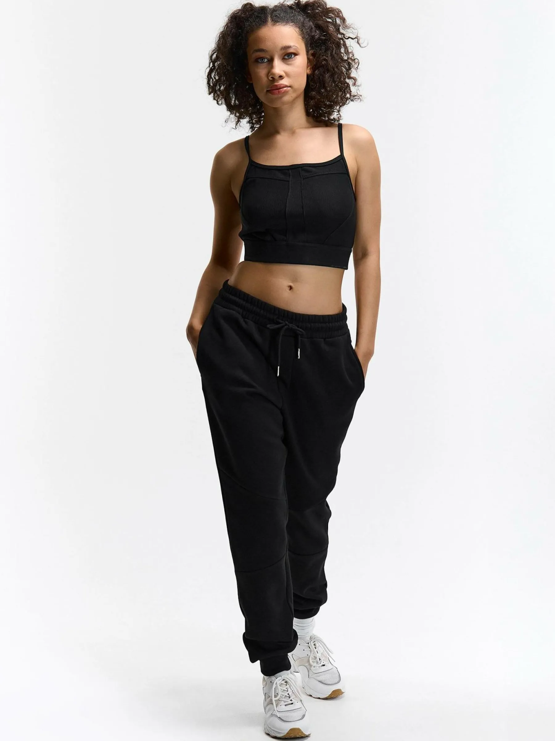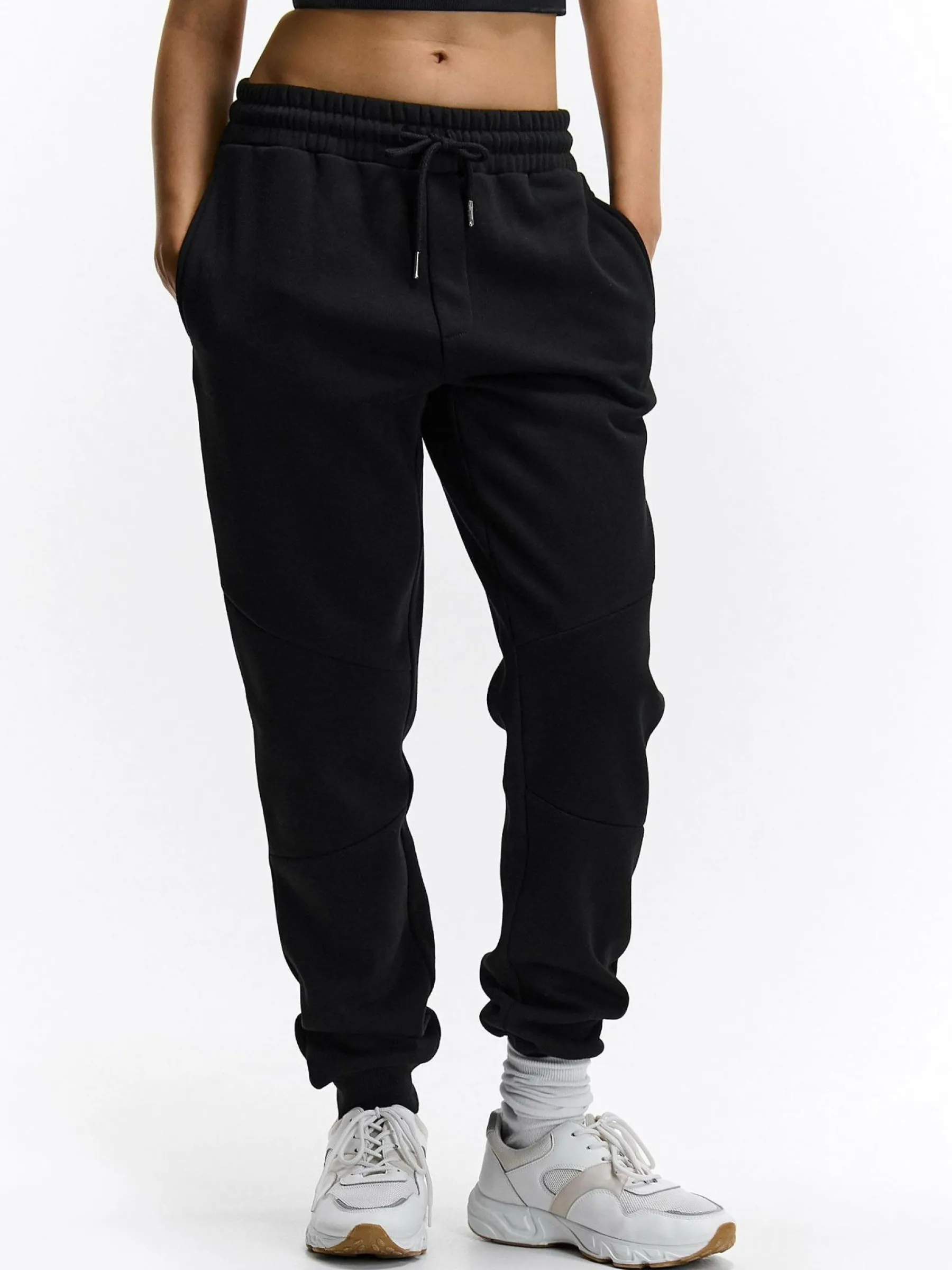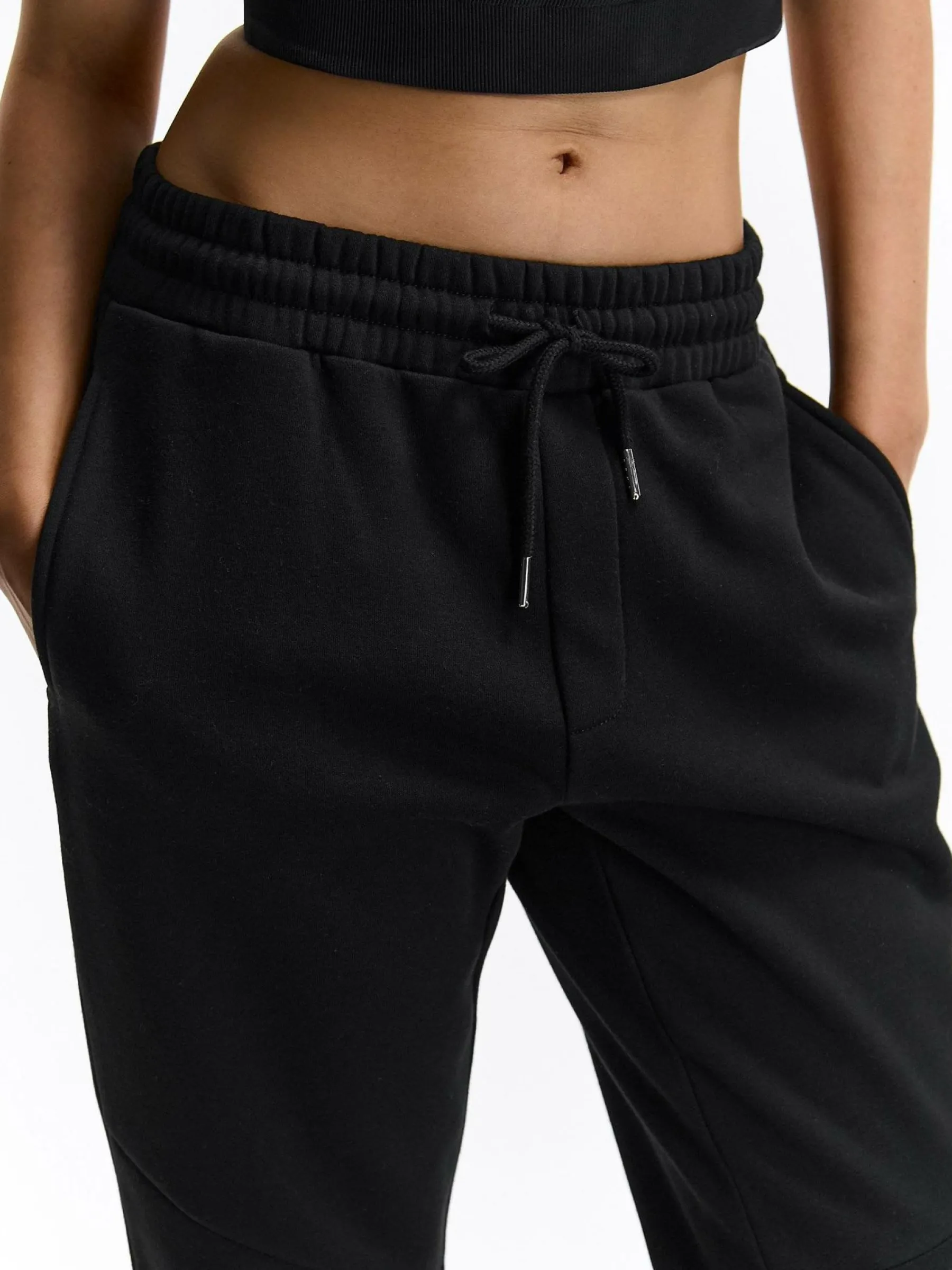 Kolor: czarnyKrój: joggerTyp: spodnie dresoweDługość: dlugiePattern style: pojedynczy kolorDetal: ze sznurowaniemMat…