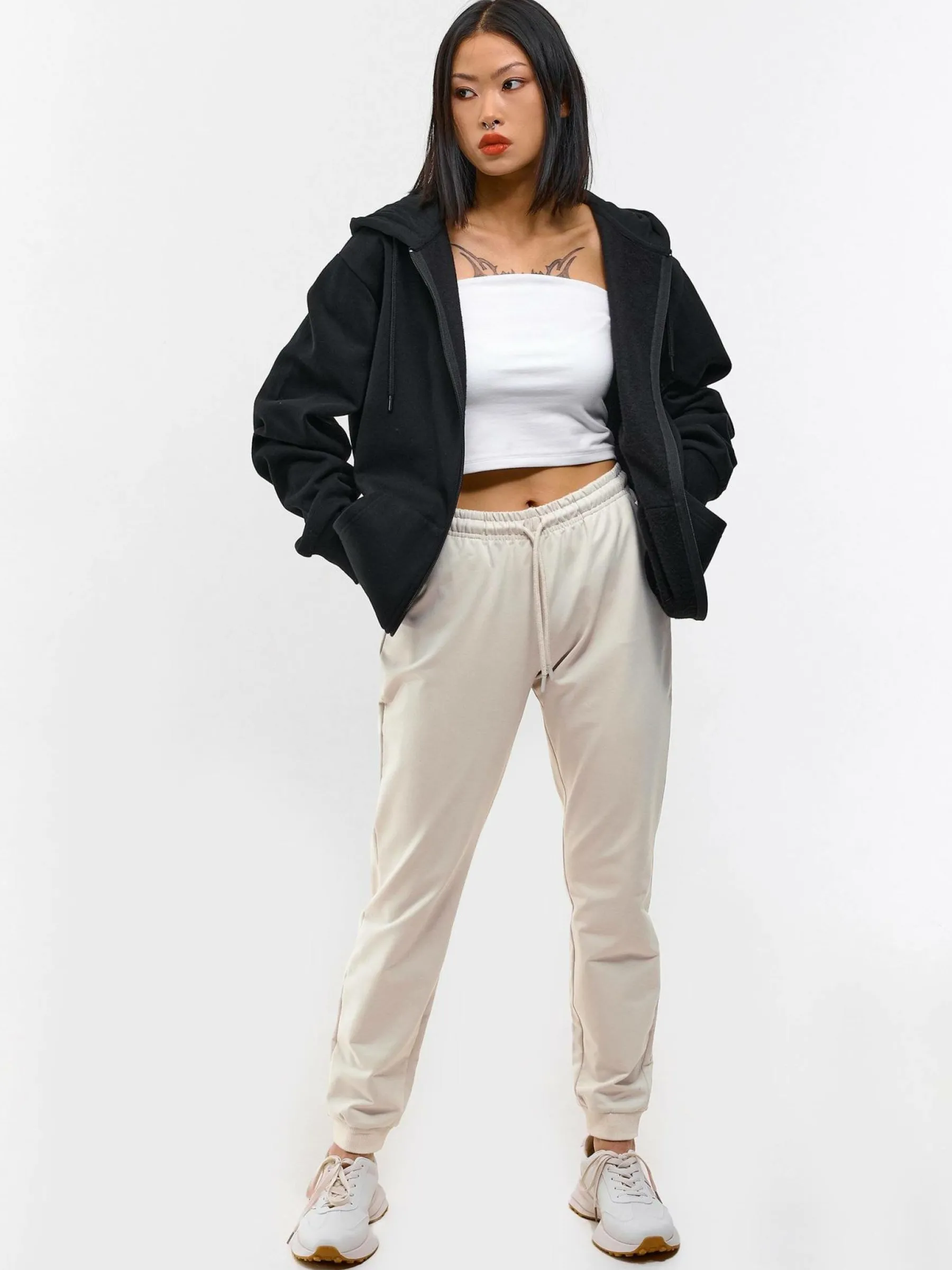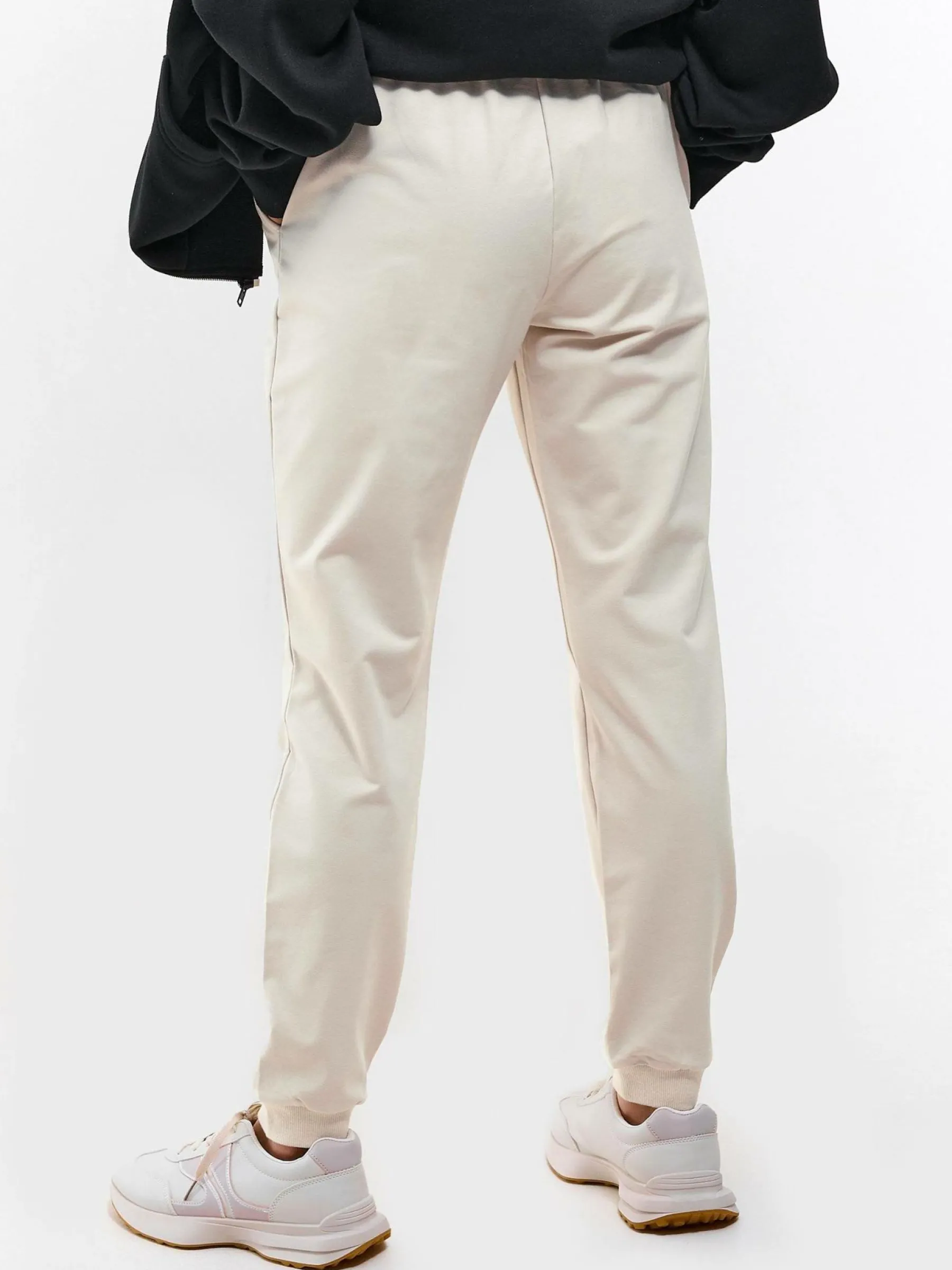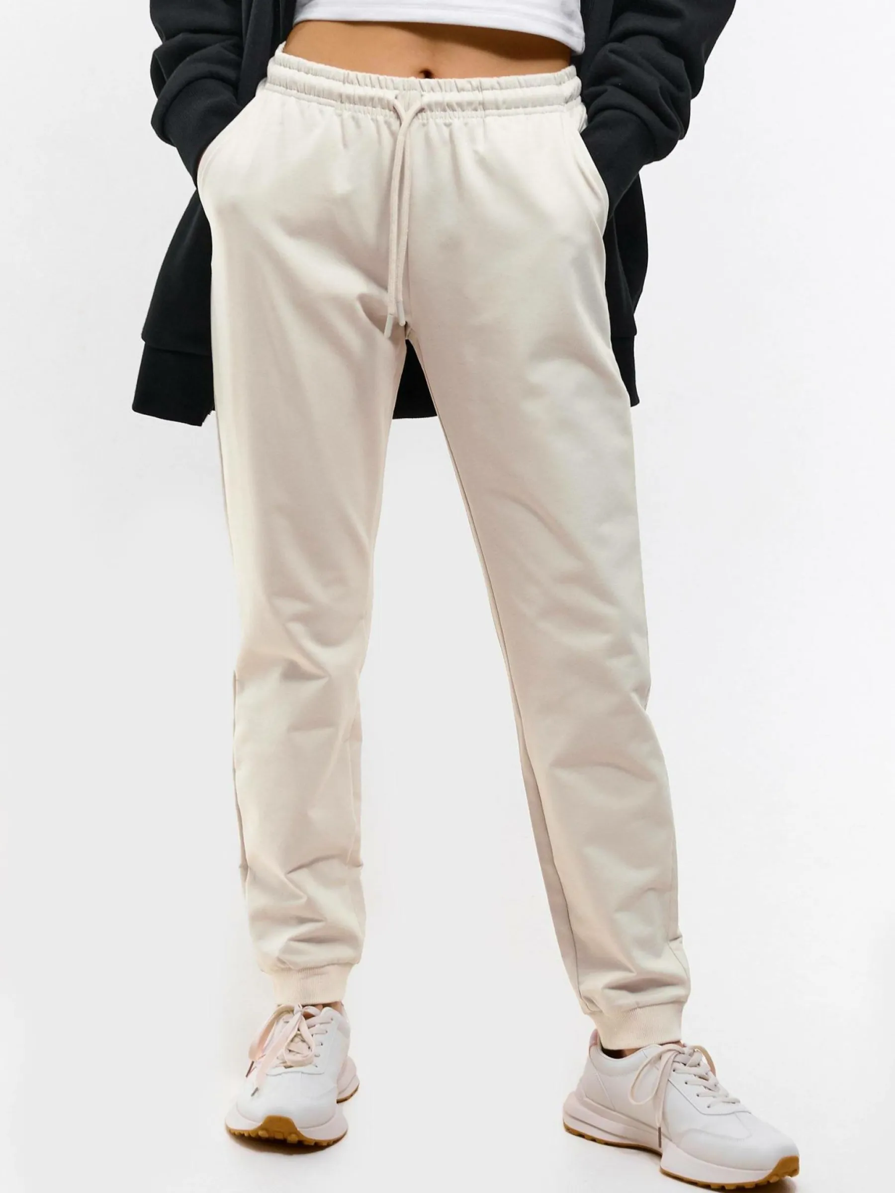 Kolor: beżowyKrój: joggerTyp: spodnie dresoweDługość: dlugiePattern style: pojedynczy kolorDetal: ze sznurowaniemMa…