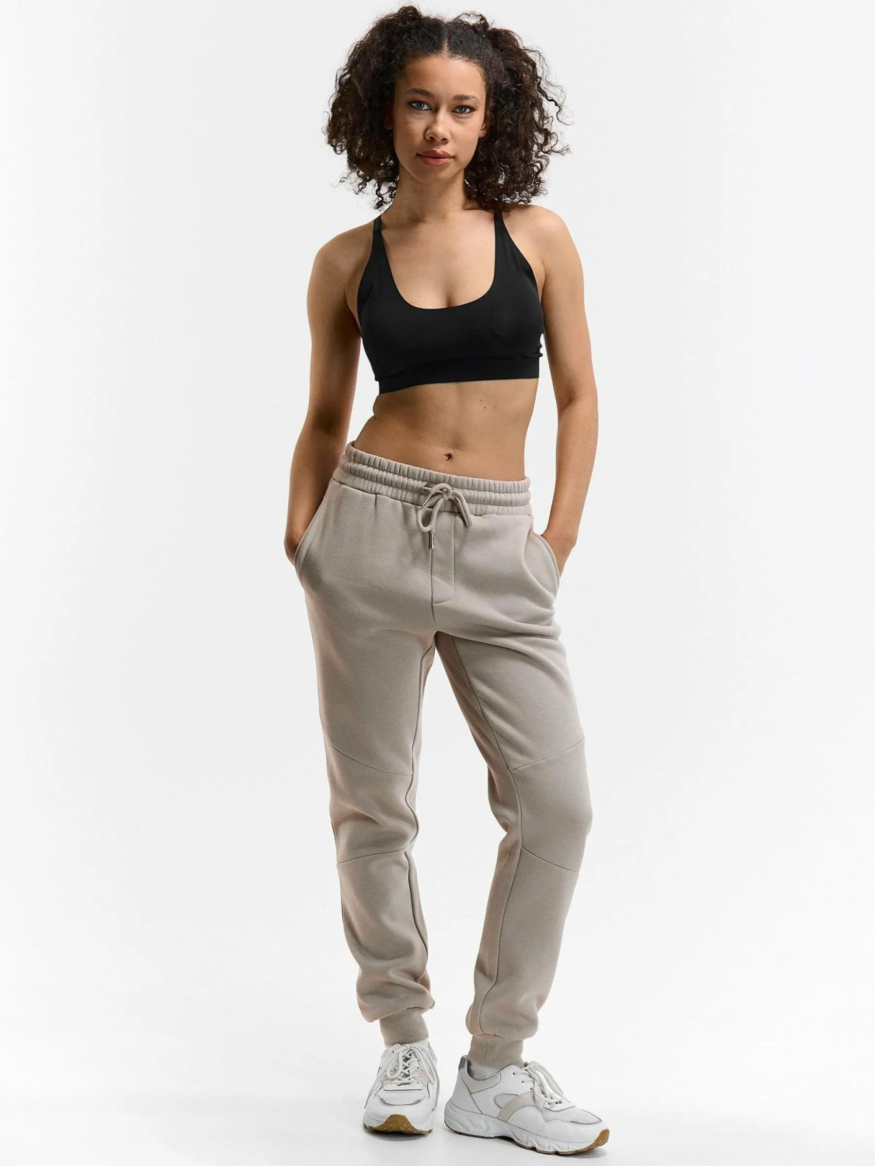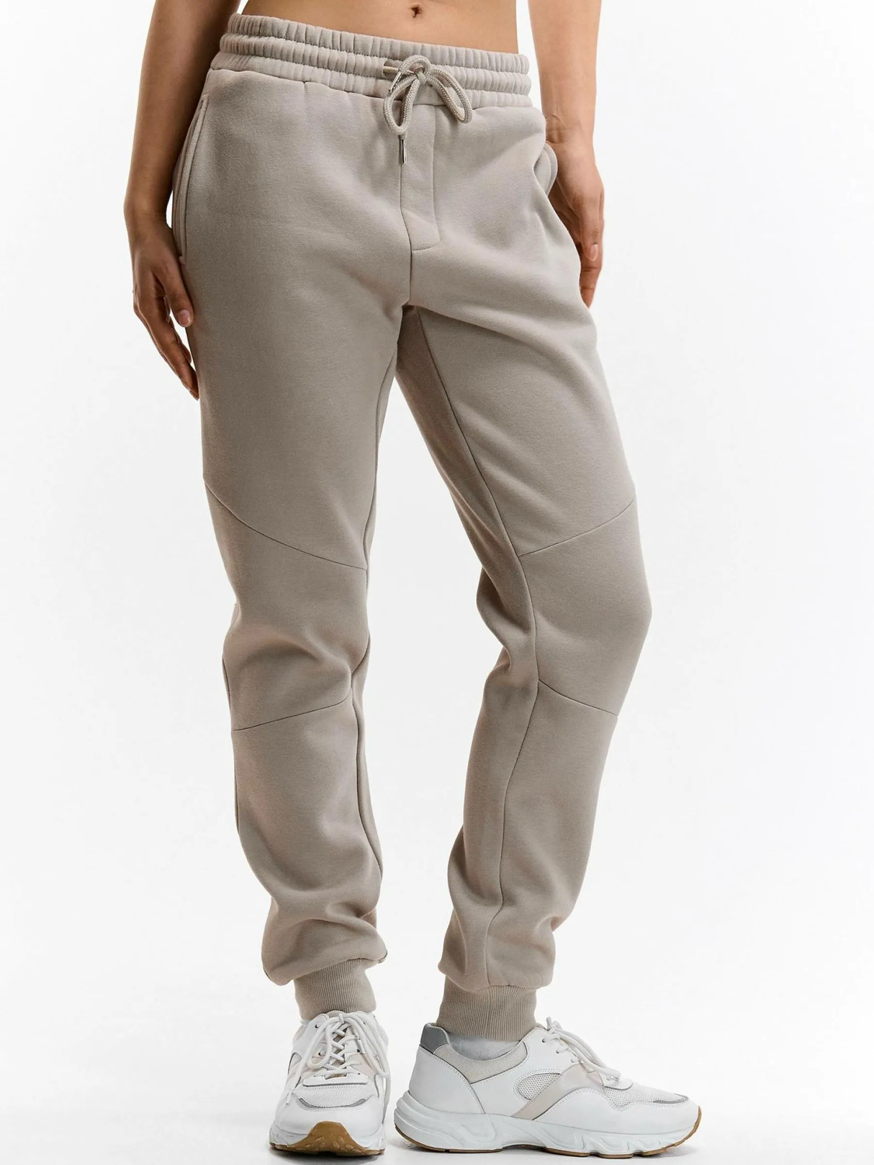 Kolor: beżowyKrój: joggerTyp: spodnie dresoweDługość: dlugiePattern style: pojedynczy kolorDetal: ze sznurowaniemMa…