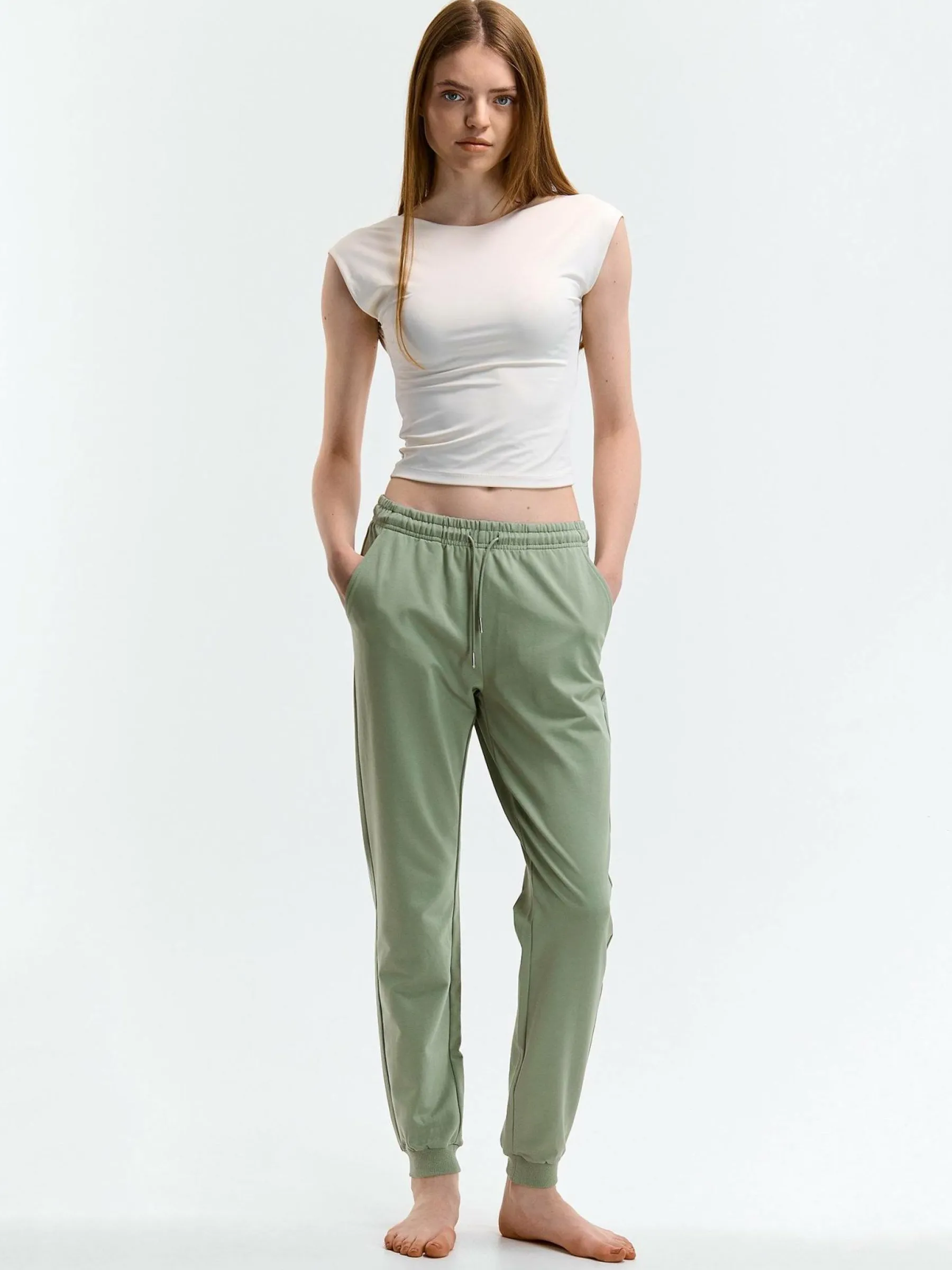 Kolor: zielonyKrój: joggerTyp: spodnie dresoweDługość: dlugiePattern style: pojedynczy kolorDetal: ze sznurowaniem, …