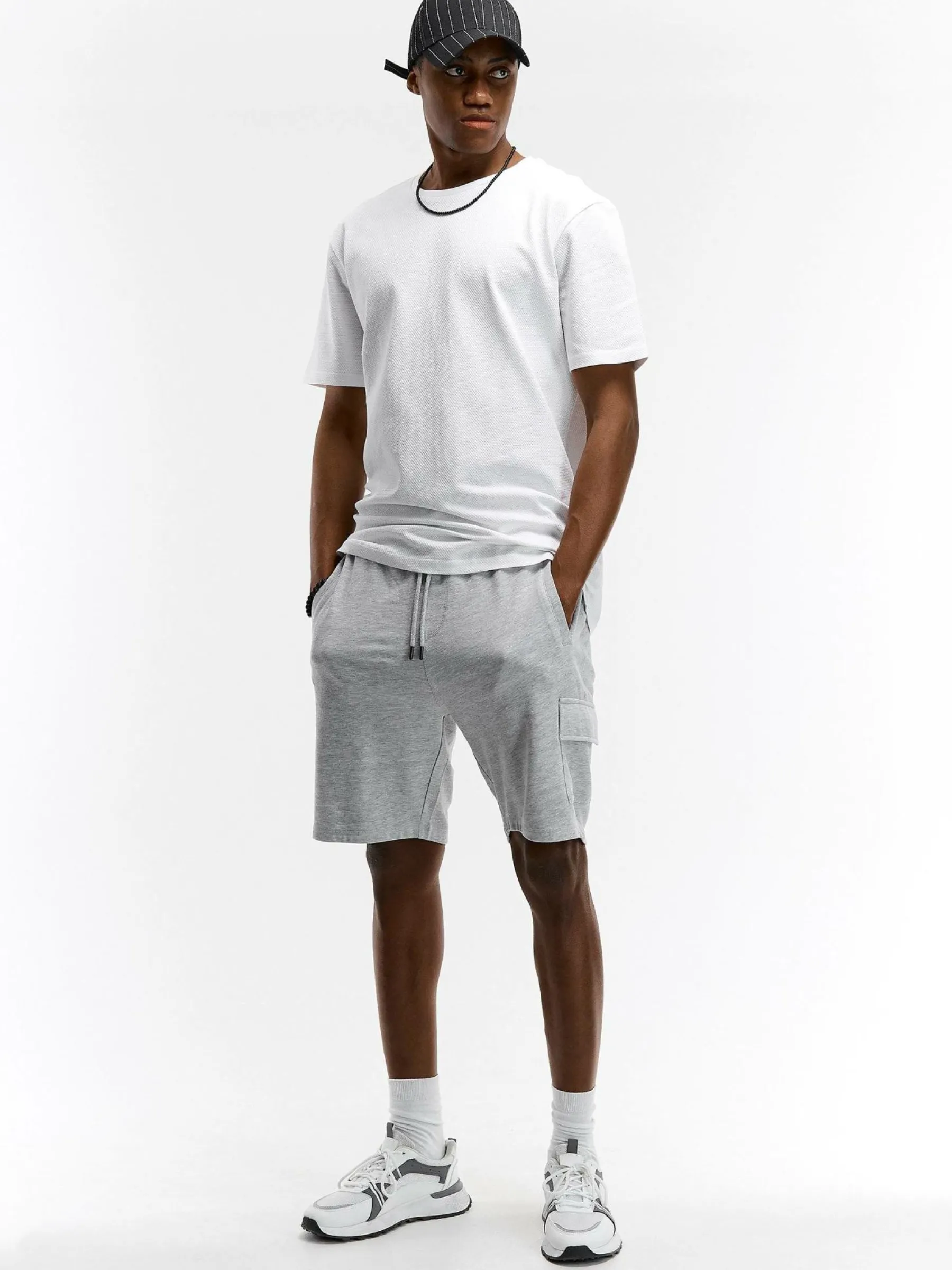 Kolor: szaryKrój: cargoTyp: spodenkiDługość: krótkiPattern style: pojedynczy kolorDetal: ze sznurowaniem, z kieszen…