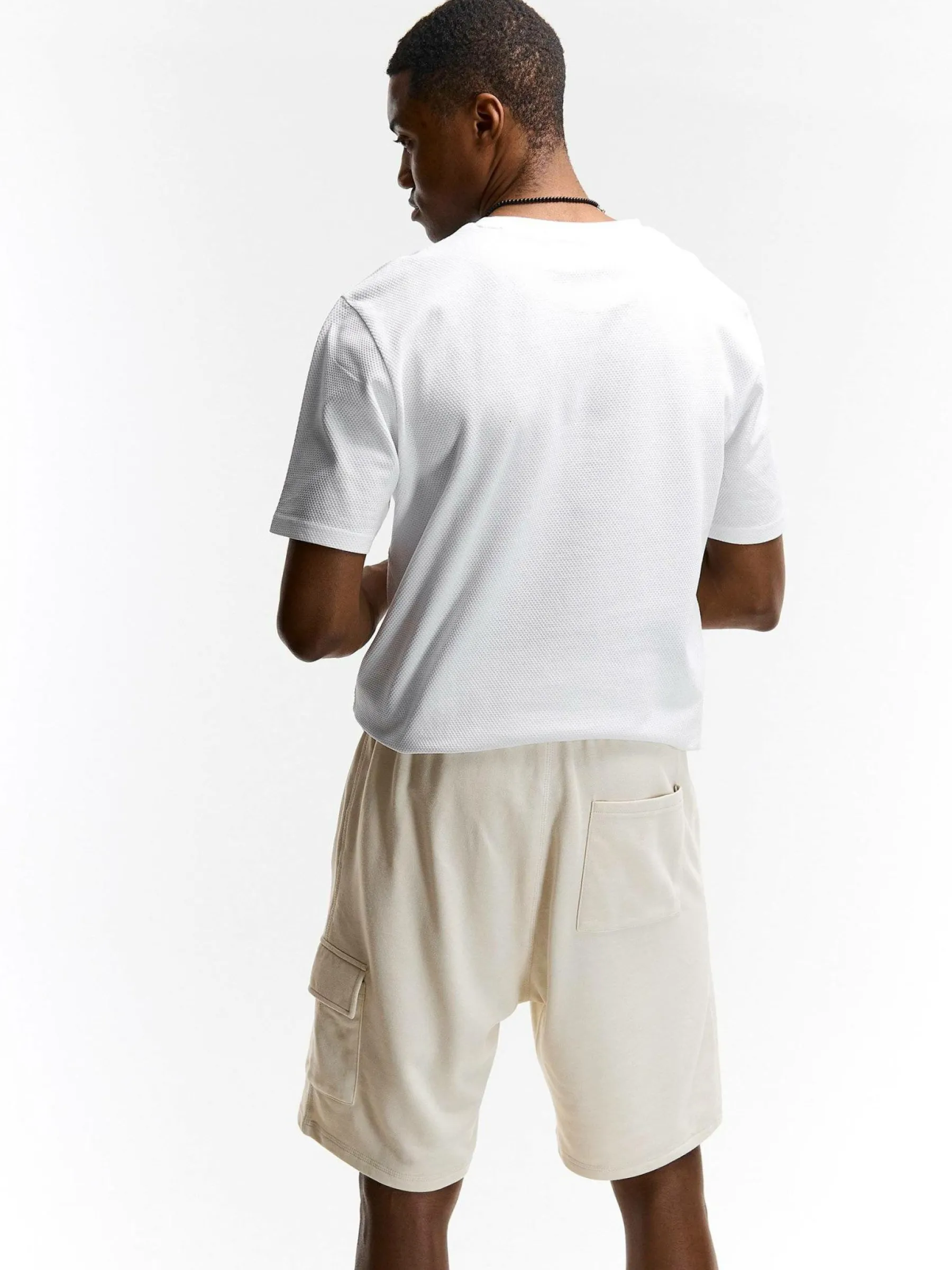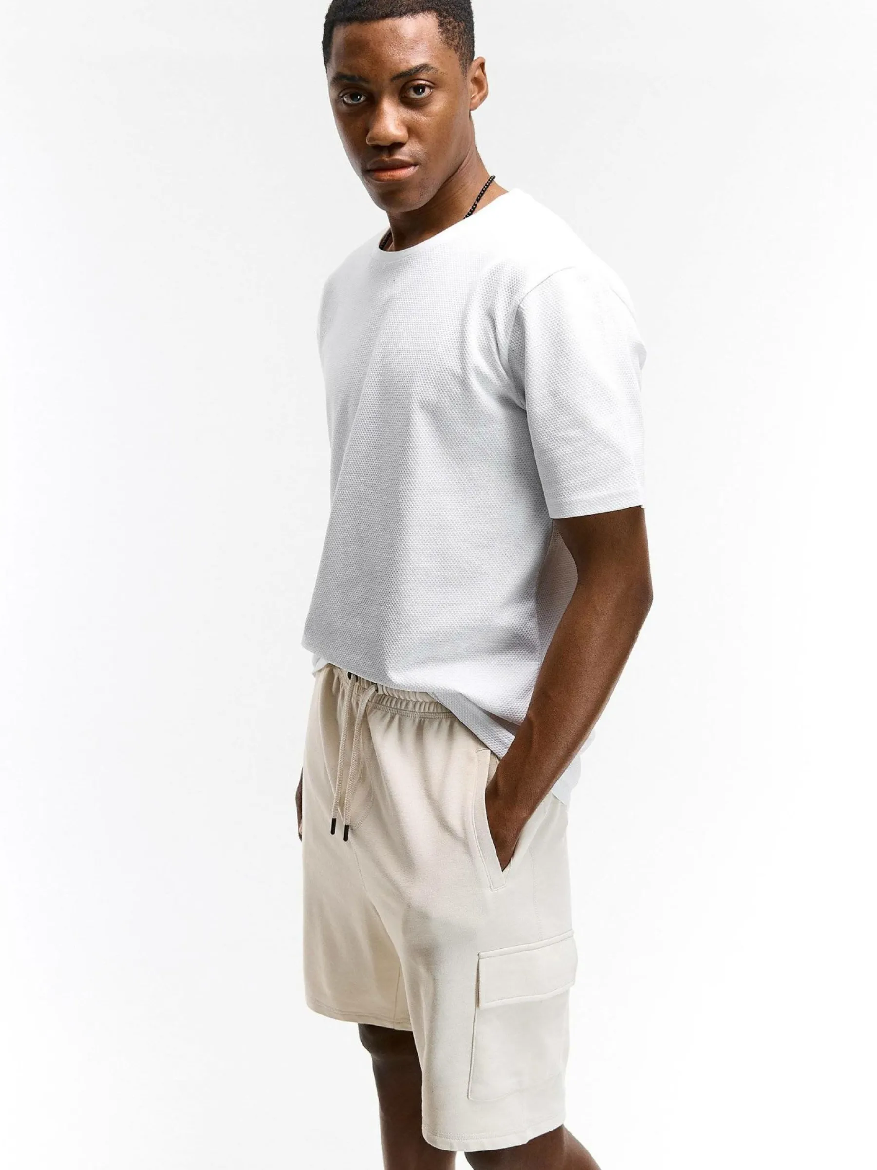 Kolor: beżowyKrój: cargoTyp: spodenkiDługość: krótkiPattern style: pojedynczy kolorDetal: ze sznurowaniem, z kiesz…
