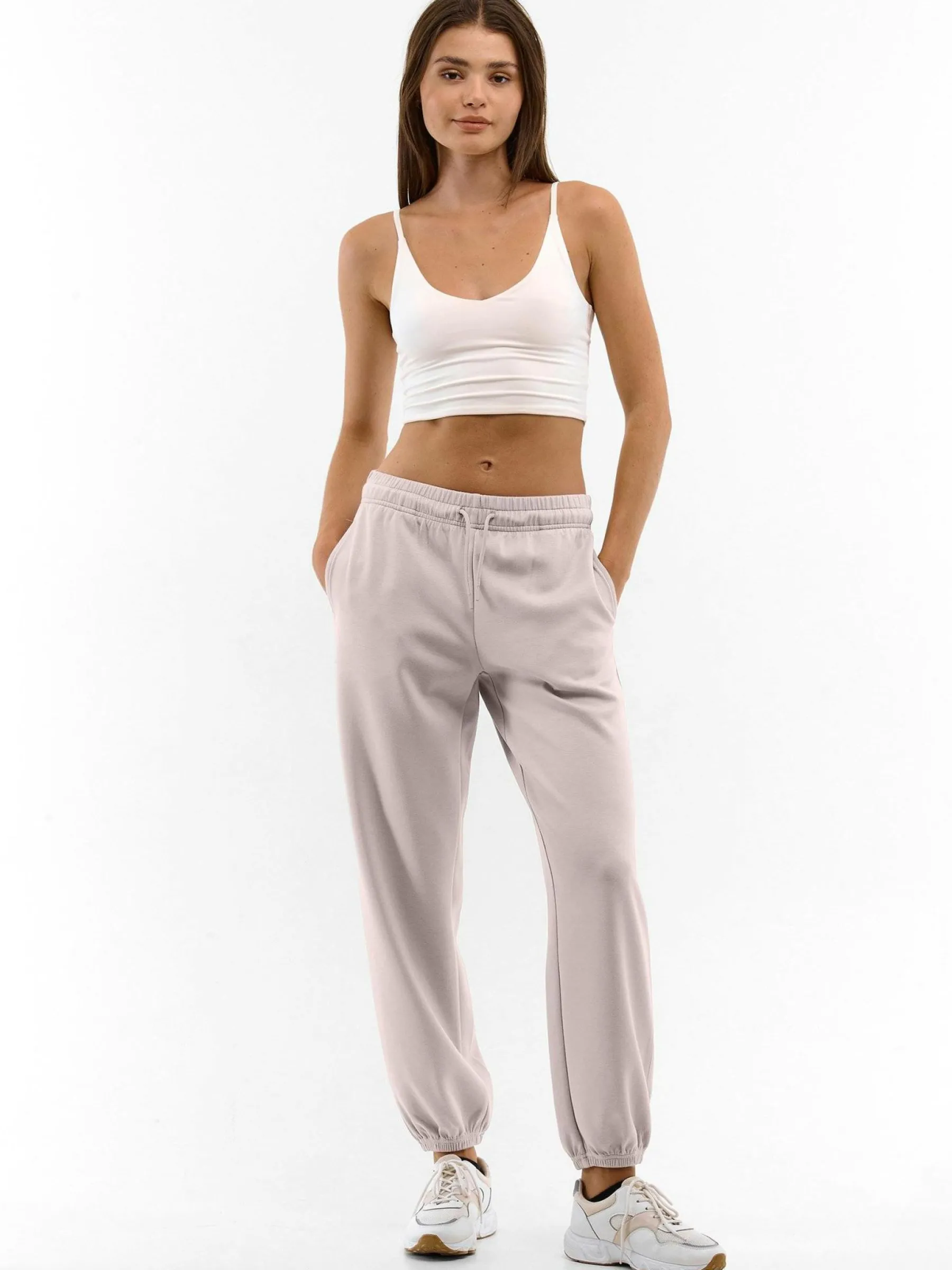 Kolor: beżowyKrój: joggerTyp: spodnie dresoweDługość: dlugiePattern style: pojedynczy kolorDetal: z kieszeniami, ze…
