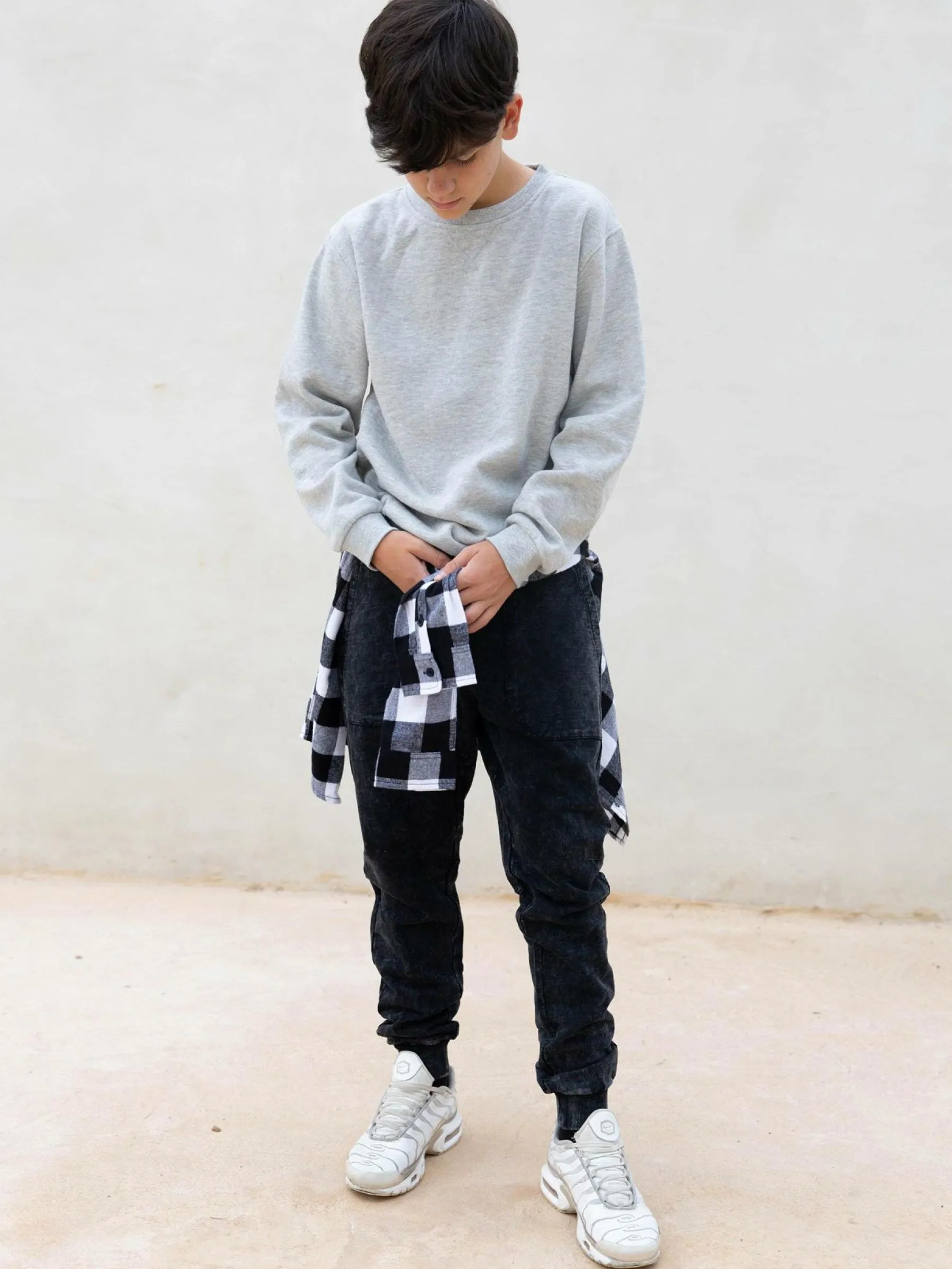 Kolor: czarnyKrój: joggerTyp: spodnieDługość: dlugiePattern style: pojedynczy kolorDetal: z kieszeniami, ze sznurowa…