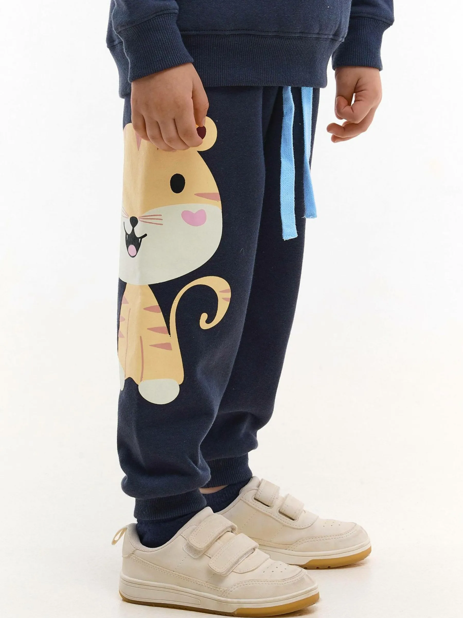 Kolor: szaryKrój: joggerTyp: spodnie dresoweDługość: dlugiePattern style: z nadrukiemDetal: ze sznurowaniem, z elast…