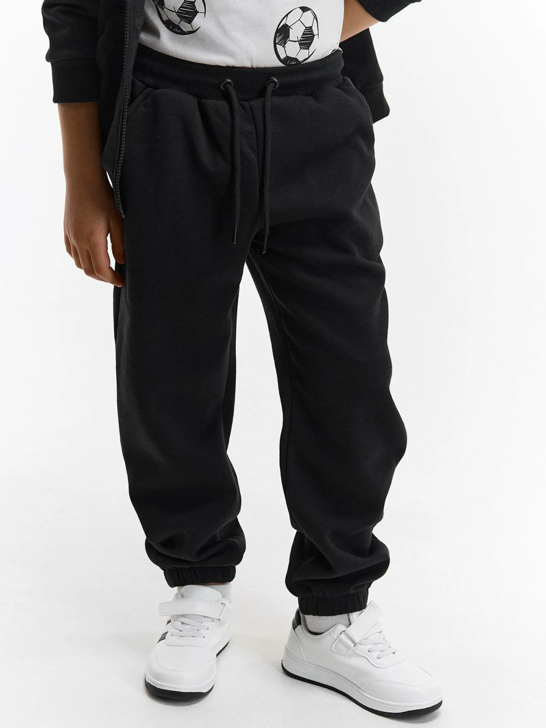 Kolor: czarnyKrój: joggerTyp: spodnie dresoweDługość: dlugiePattern style: pojedynczy kolorDetal: ze sznurowaniem, z…