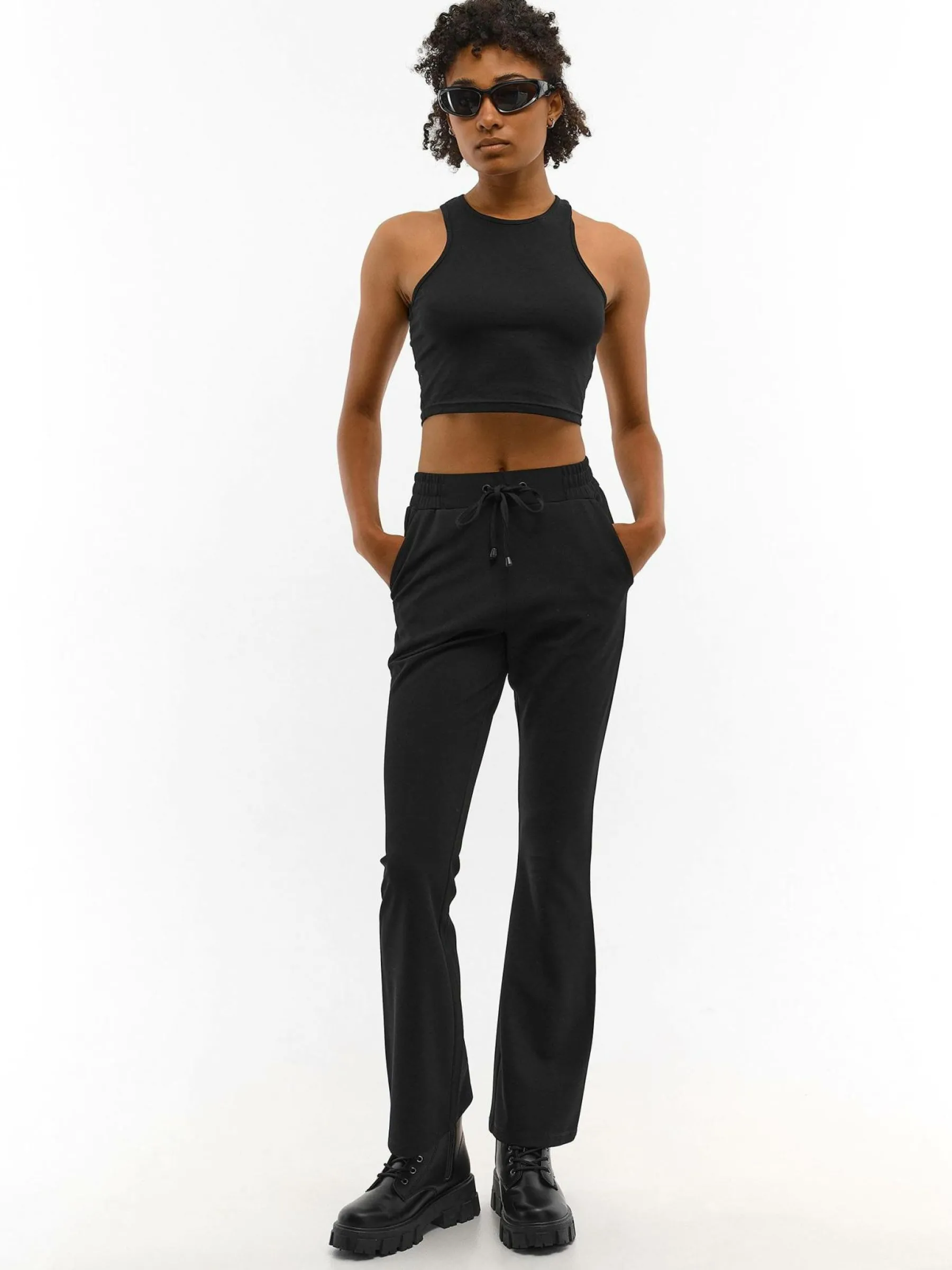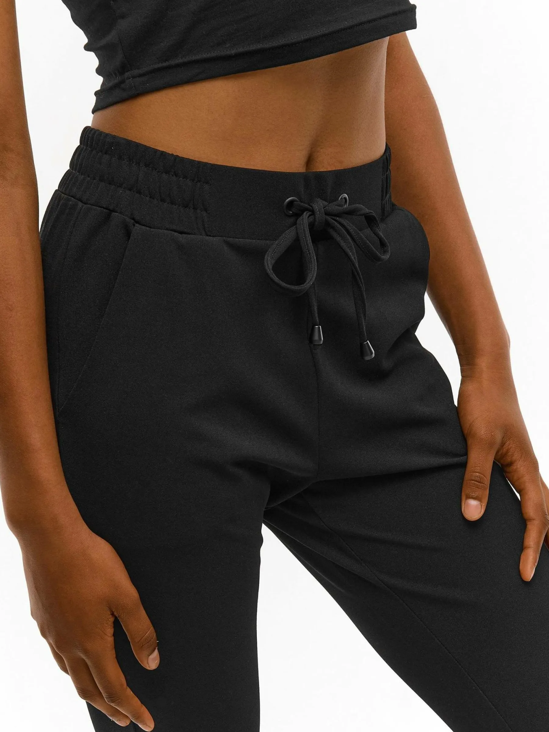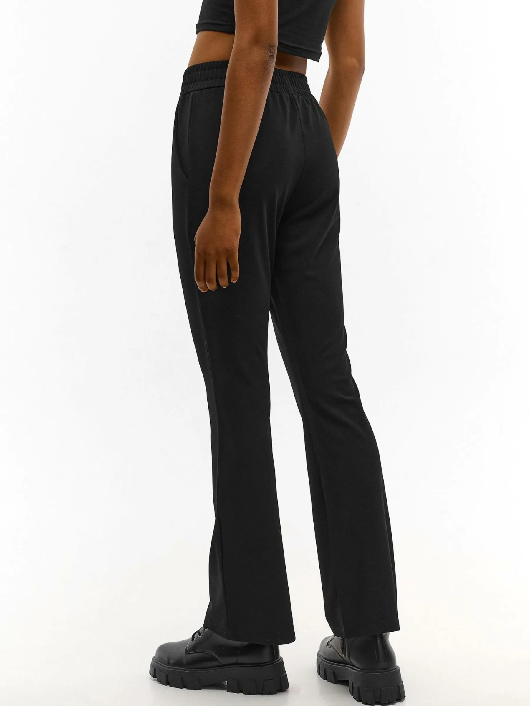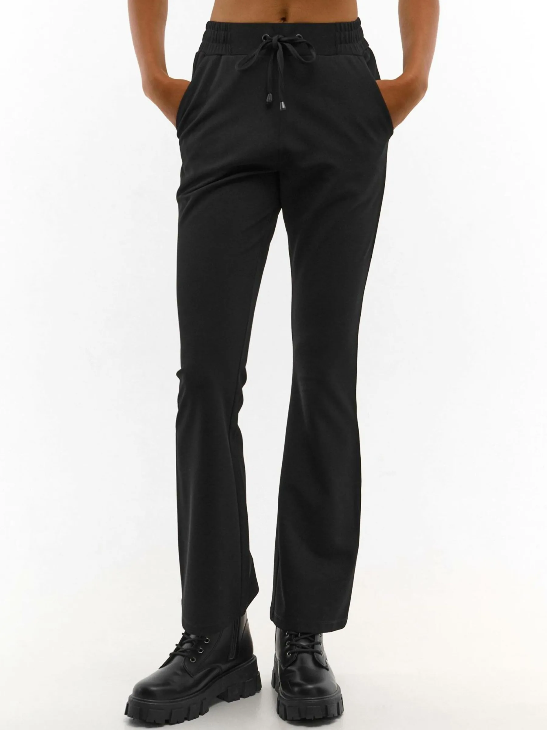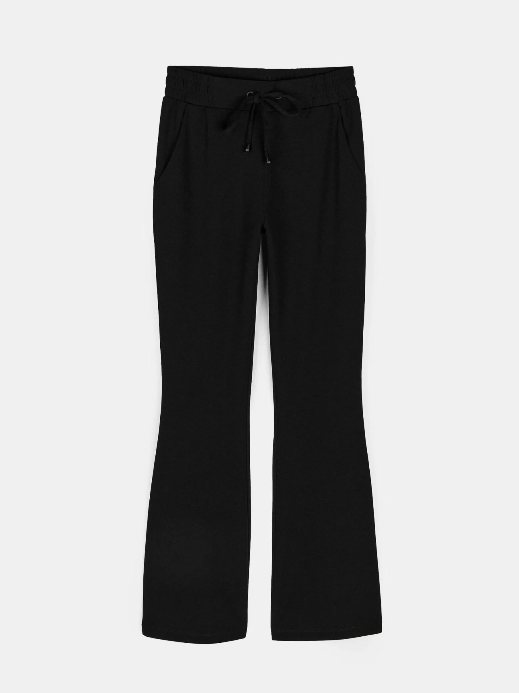 Kolor: czarnyKrój: dzwonTyp: spodnieDługość: dlugiePattern style: pojedynczy kolorDetal: ze sznurowaniem, z kieszeni…