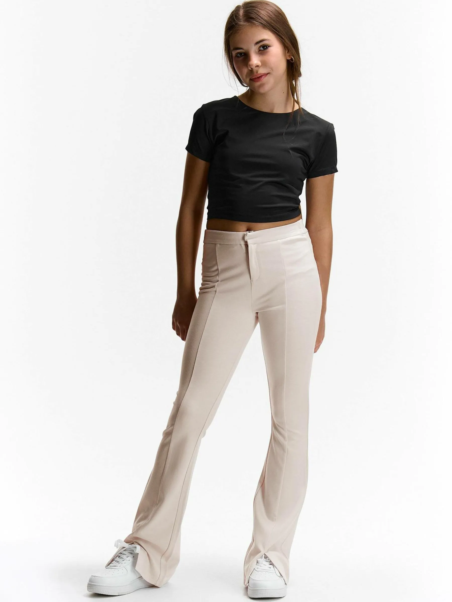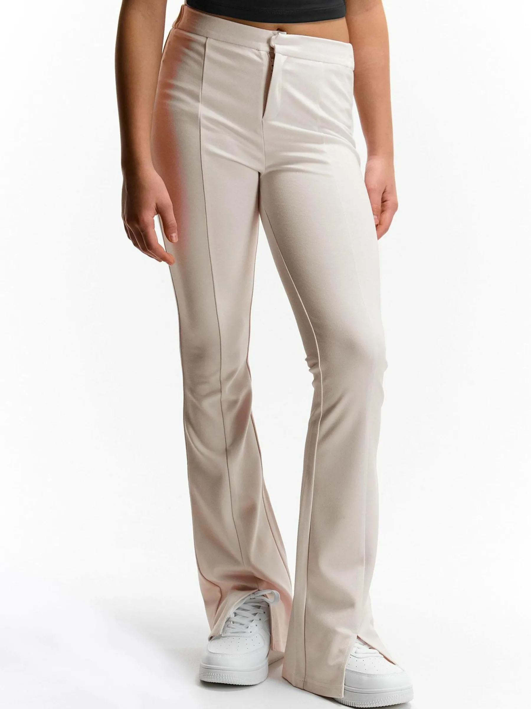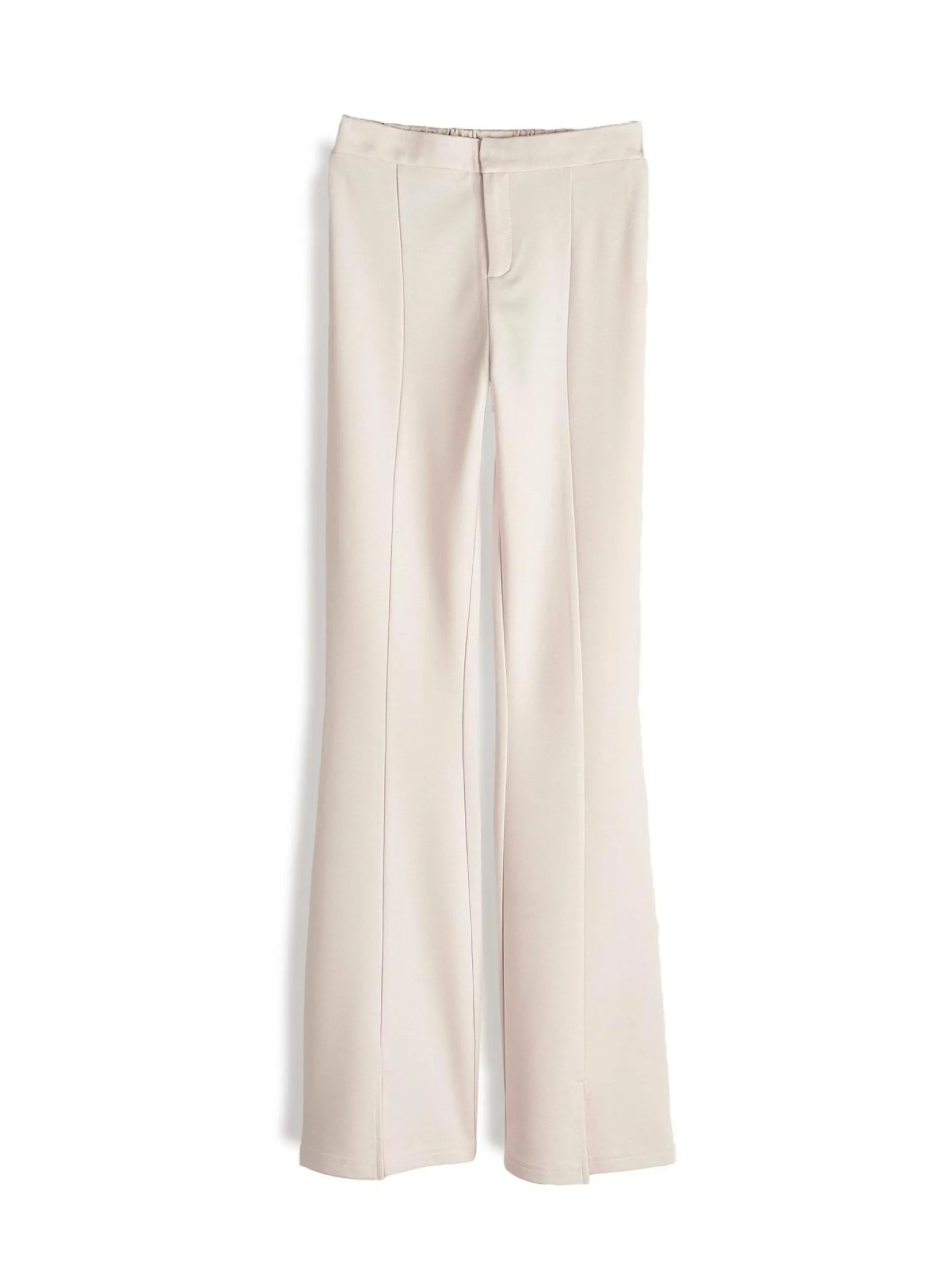 Kolor: białyKrój: dzwonTyp: spodnieDługość: dlugiePattern style: pojedynczy kolorDetal: z rozcięciem, na zamekMate…
