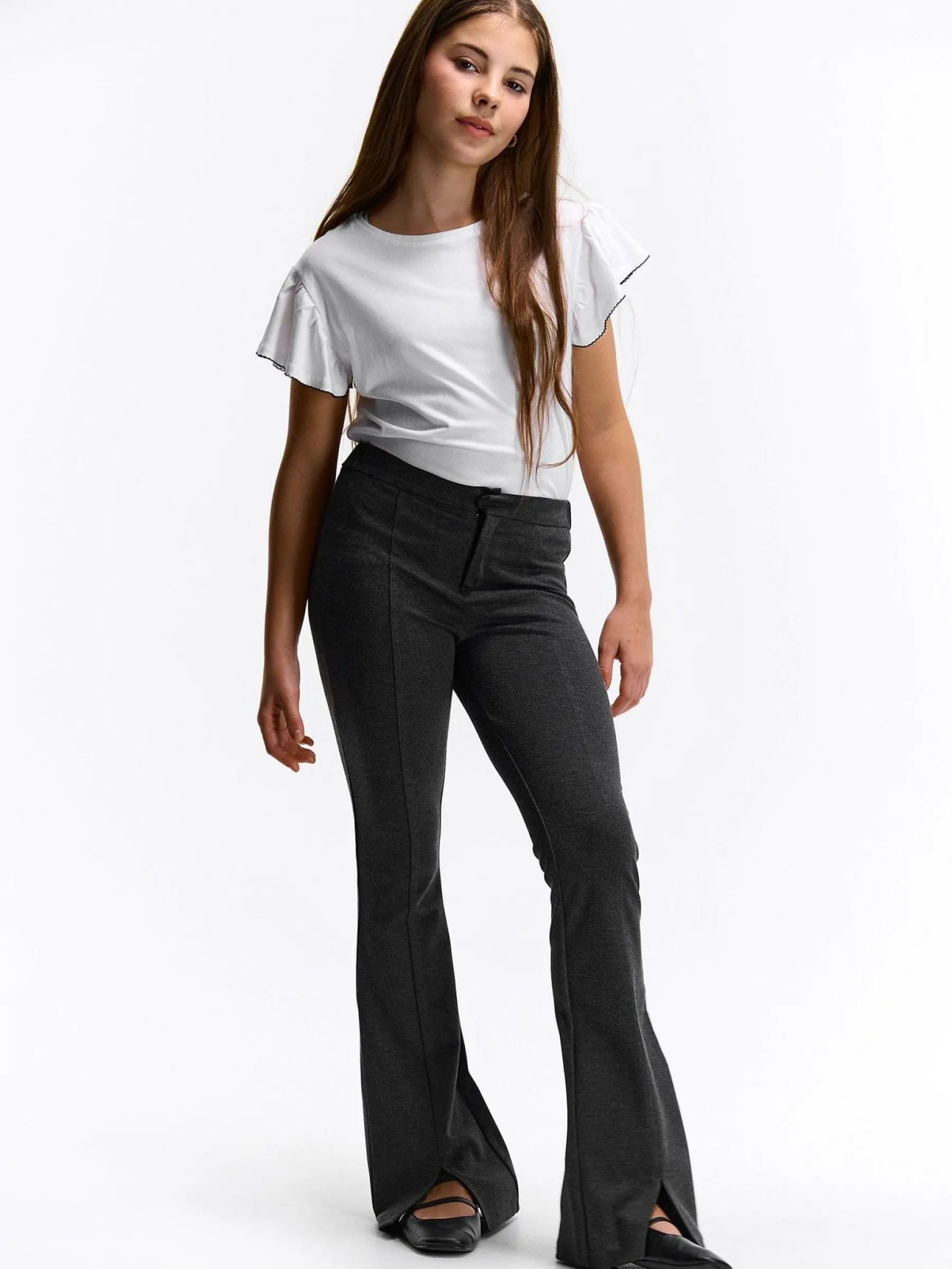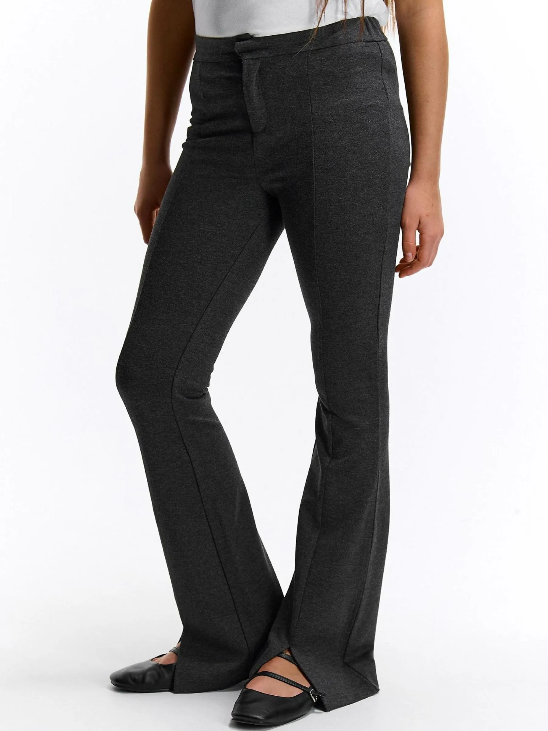 Kolor: szaryKrój: dzwonTyp: spodnieDługość: dlugiePattern style: pojedynczy kolorDetal: z rozcięciem, na zamekMater…