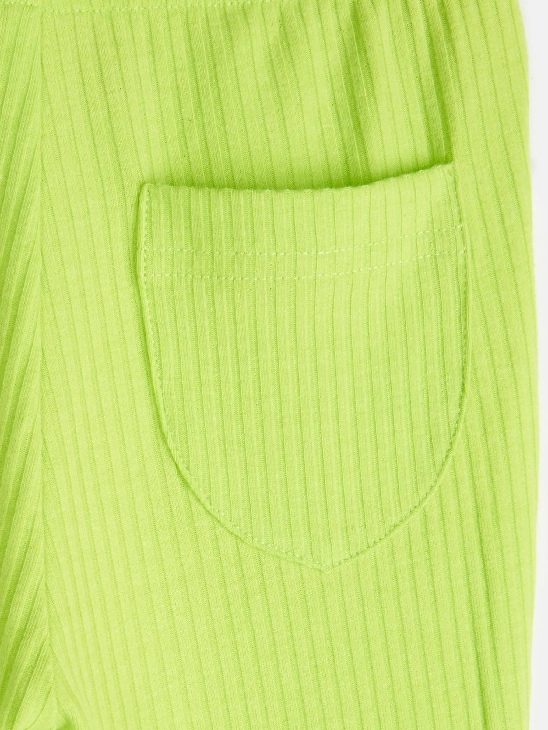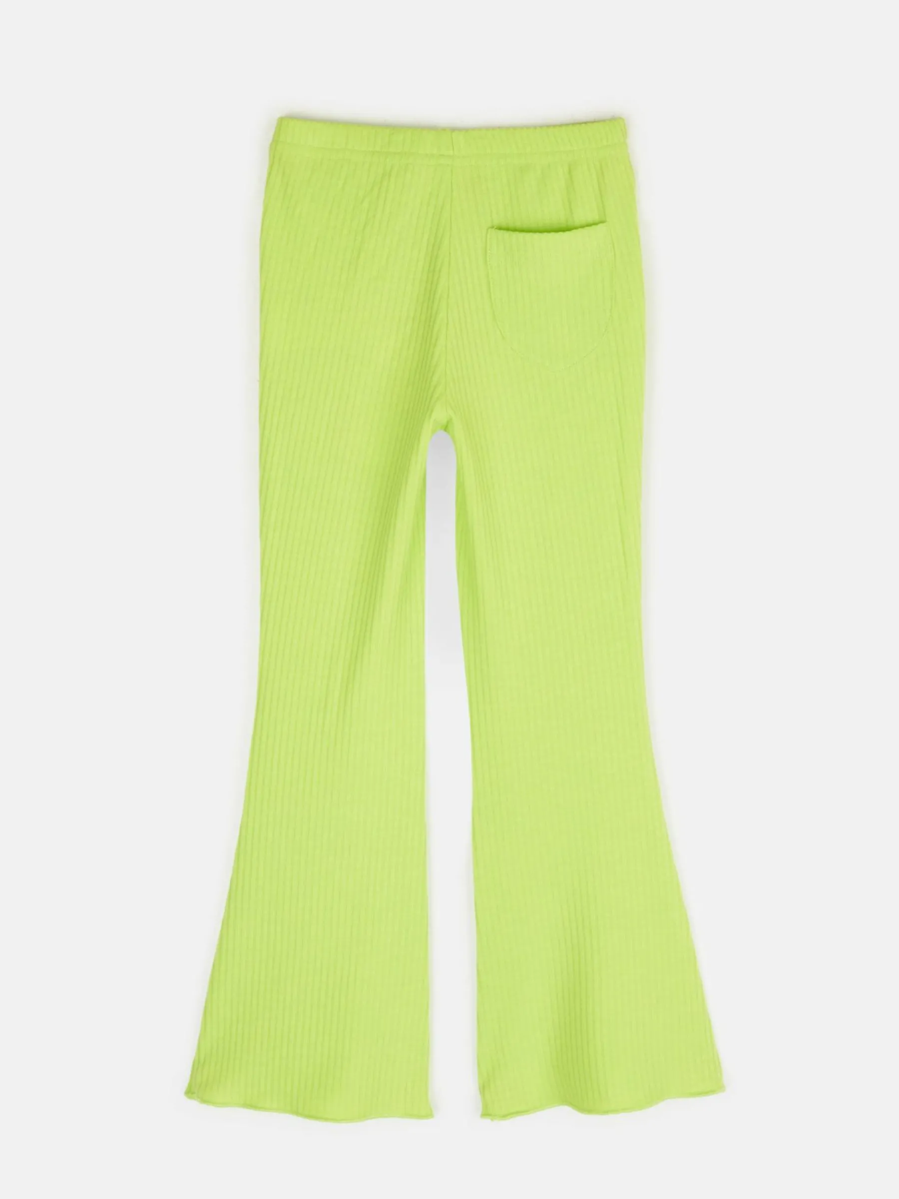 Kolor: zielonyKrój: dzwonTyp: spodnieDługość: dlugiePattern style: żebrowany, pojedynczy kolorMateriał: syntetyczn…