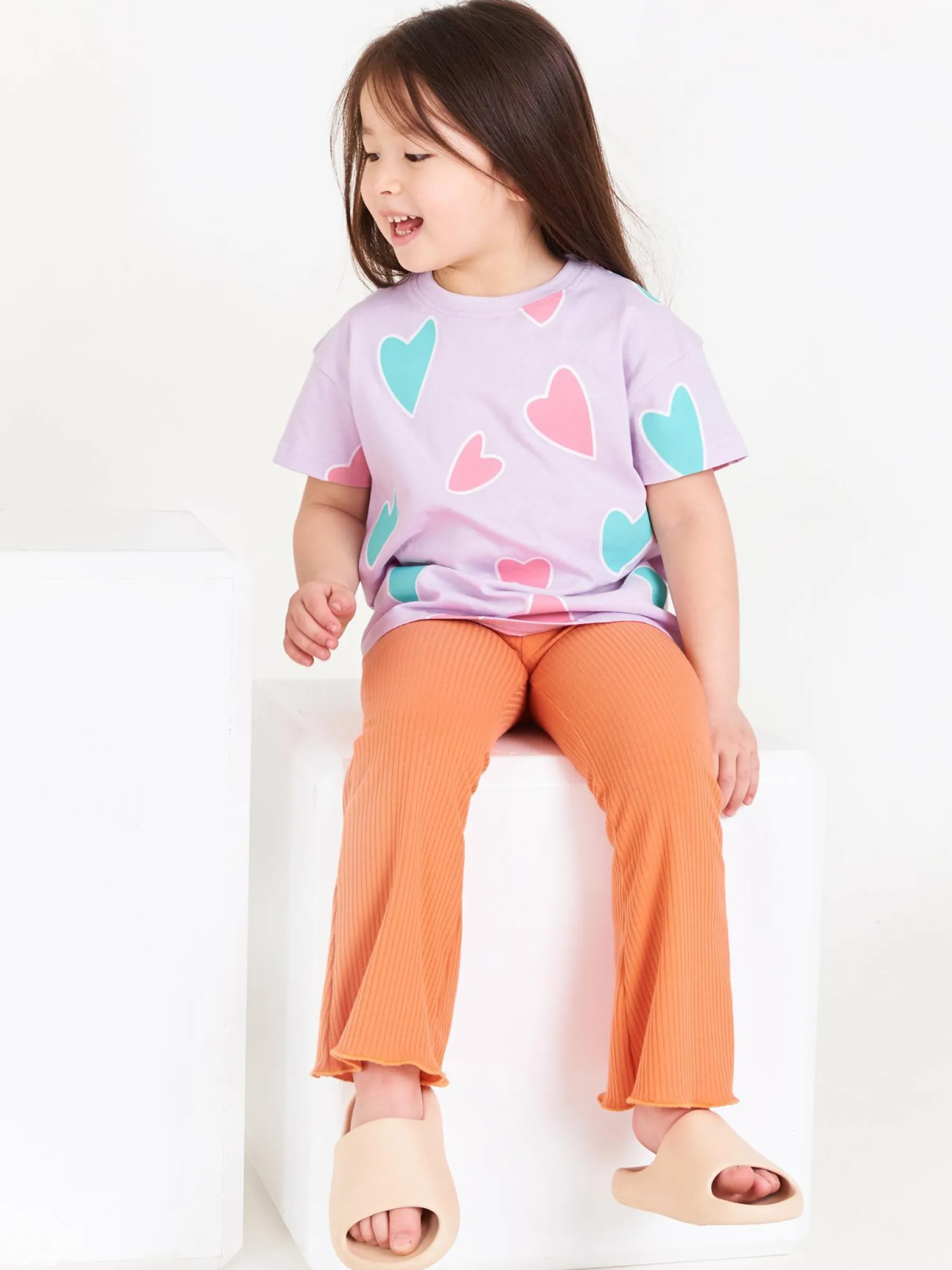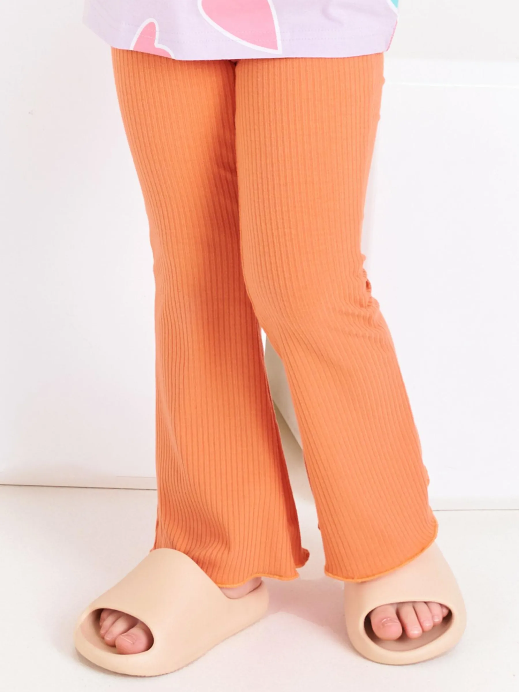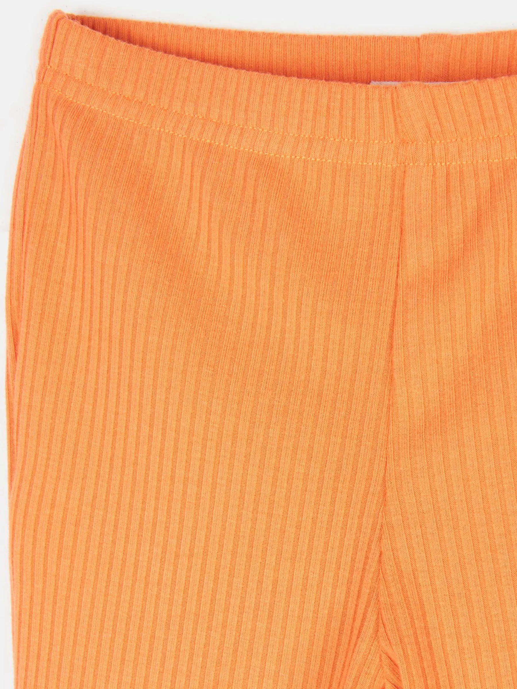 Kolor: pomarańczowyKrój: dzwonTyp: spodnieDługość: dlugiePattern style: żebrowany, pojedynczy kolorMateriał: synt…