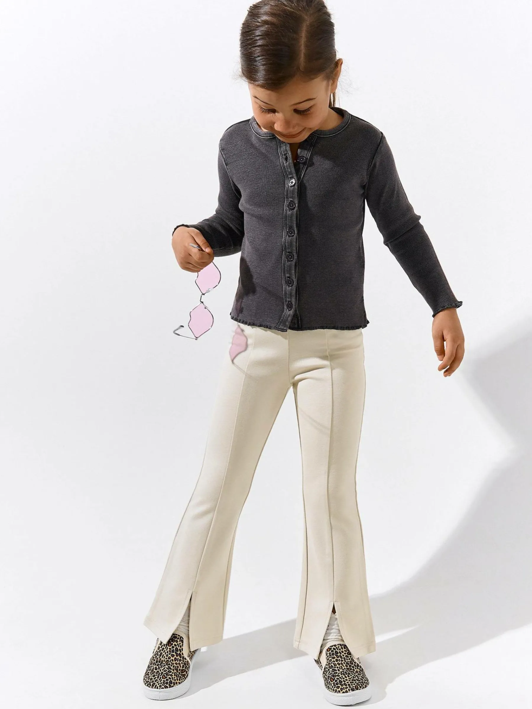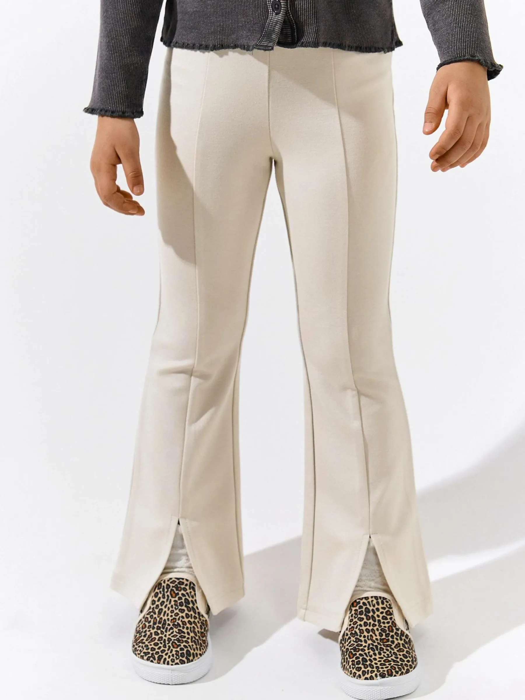 Kolor: beżowyKrój: dzwonTyp: spodnieDługość: dlugiePattern style: pojedynczy kolorDetal: z elastyczną opaską, z r…