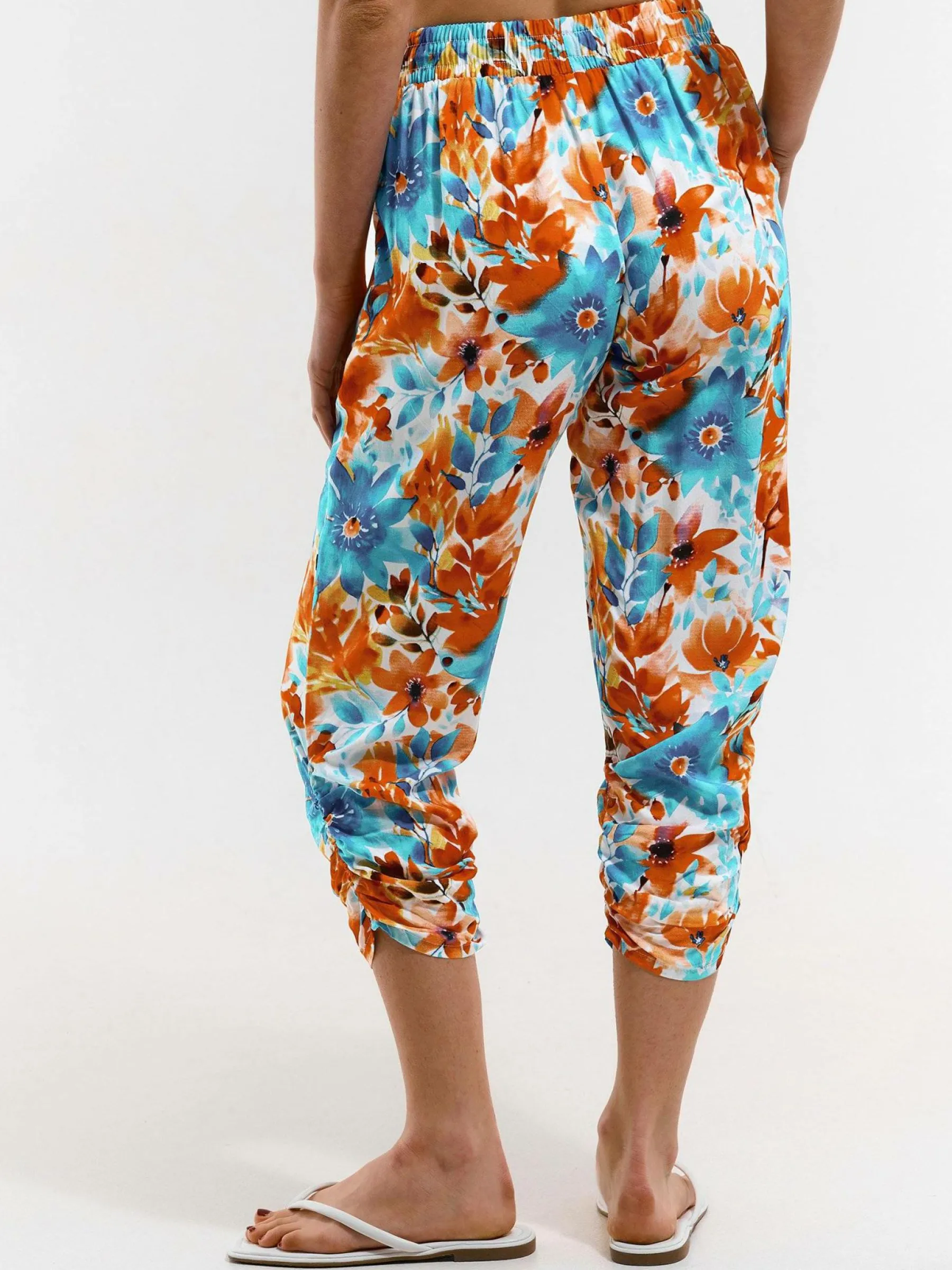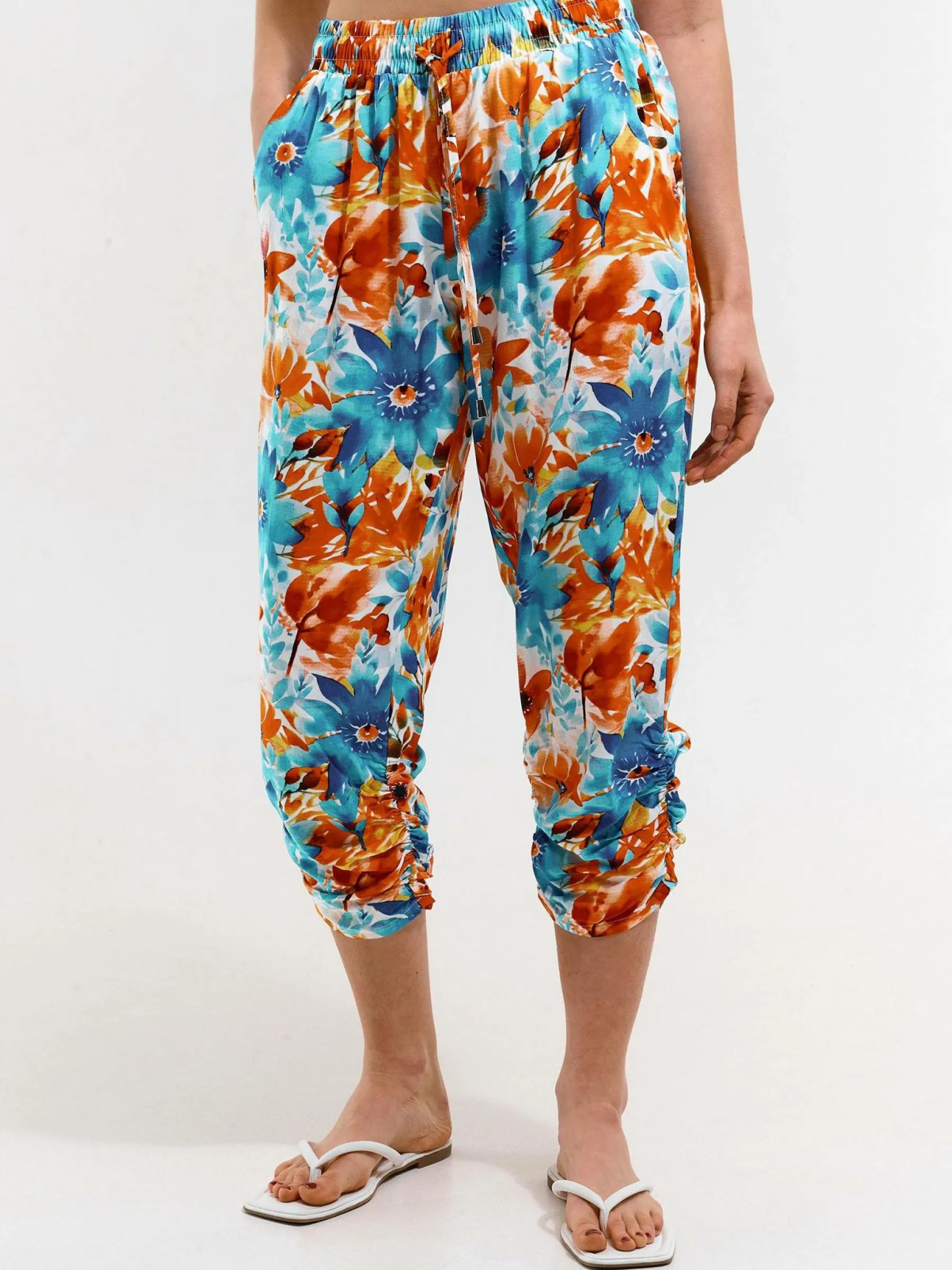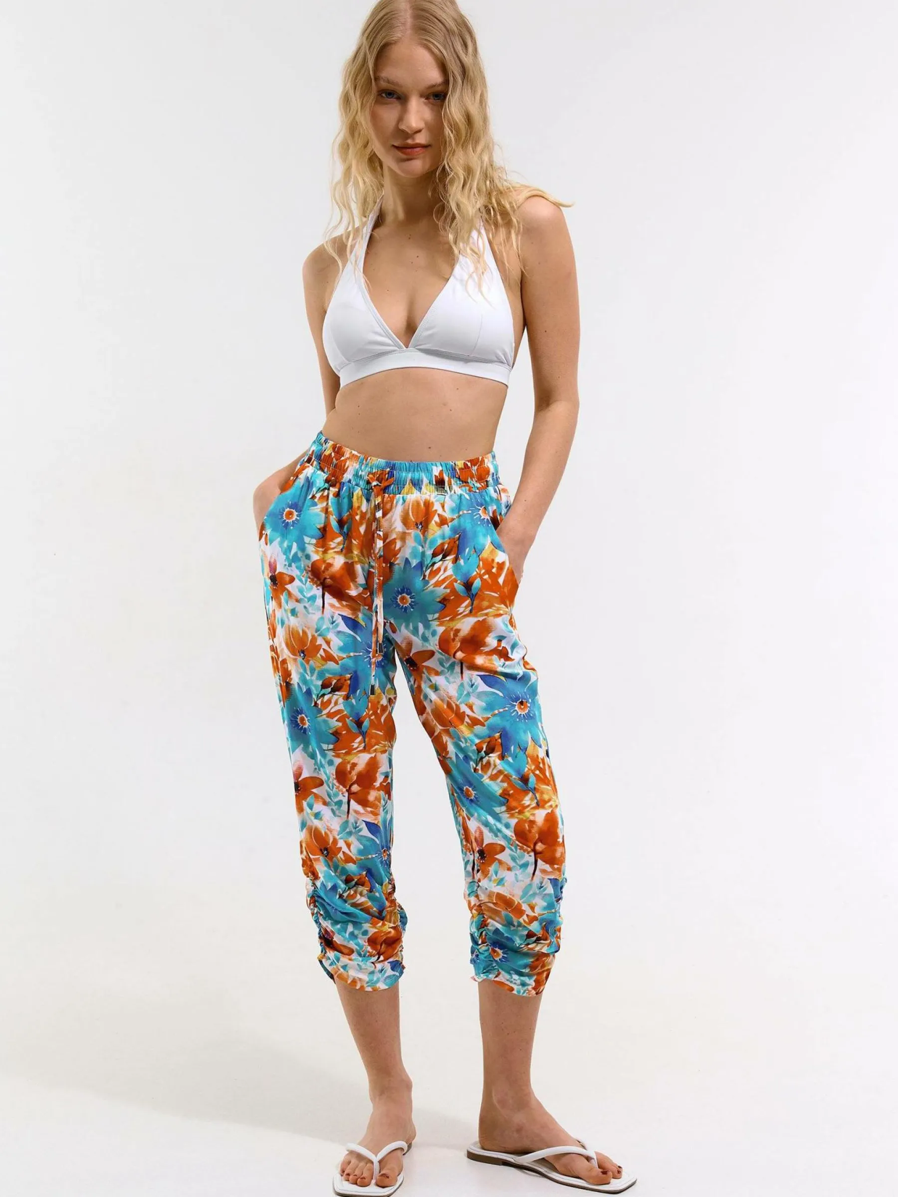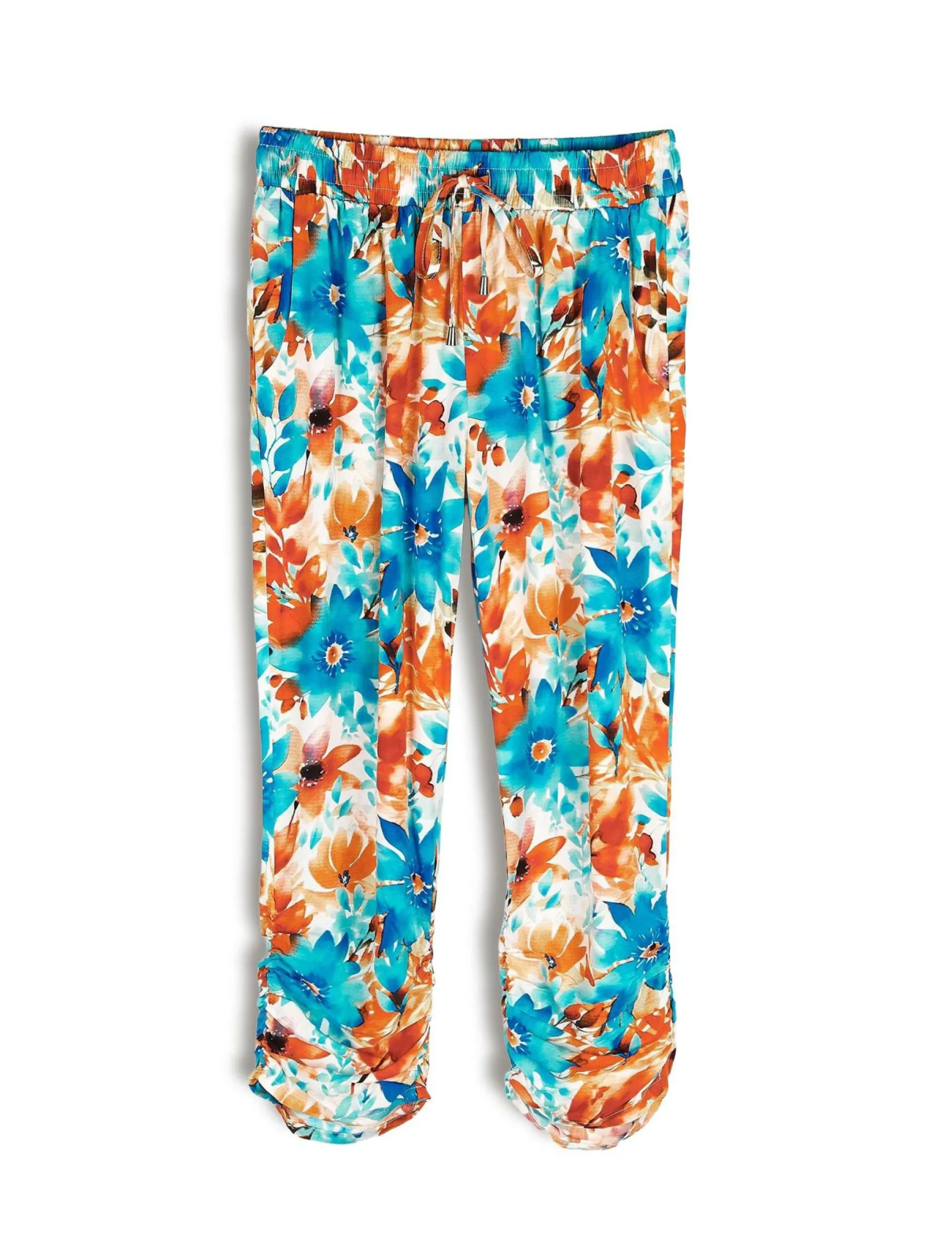 Kolor: białyKrój: haremTyp: spodnieDługość: trzy czwartePattern style: kwiatoweDetal: ze sznurowaniem, z falbankami…