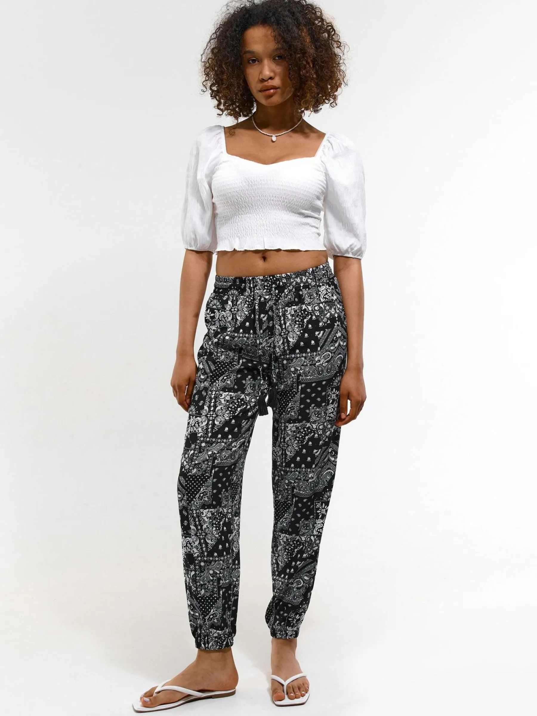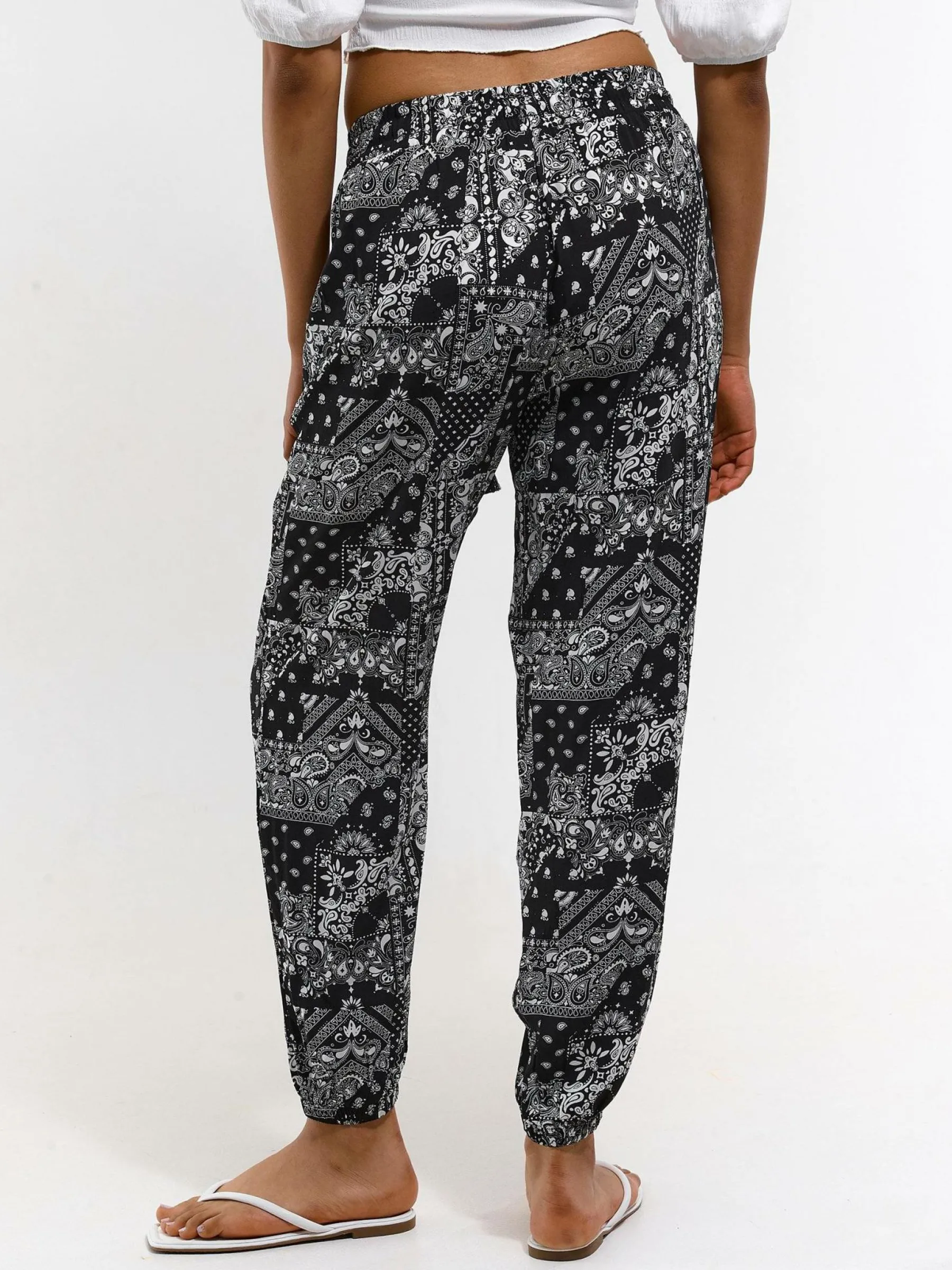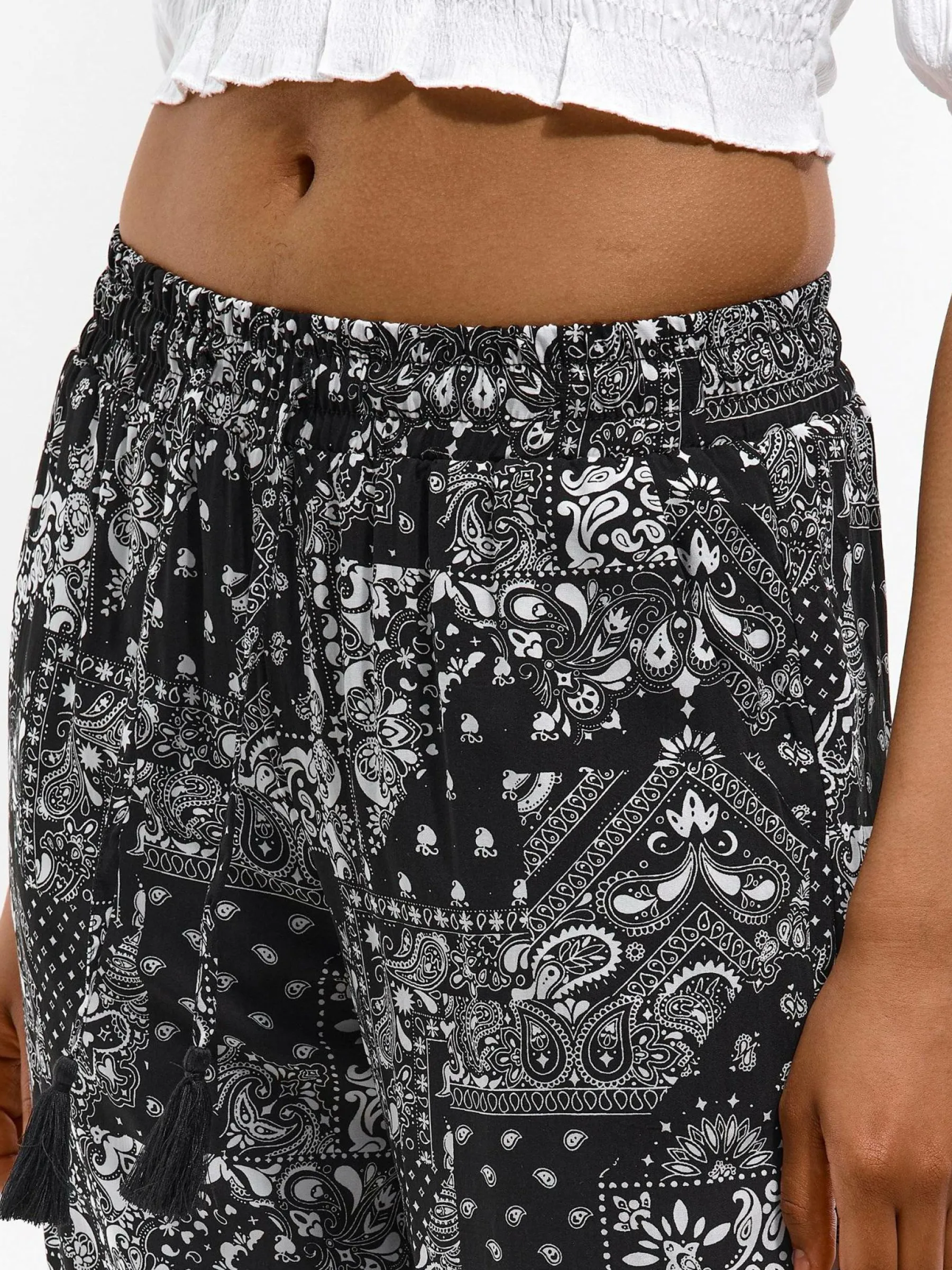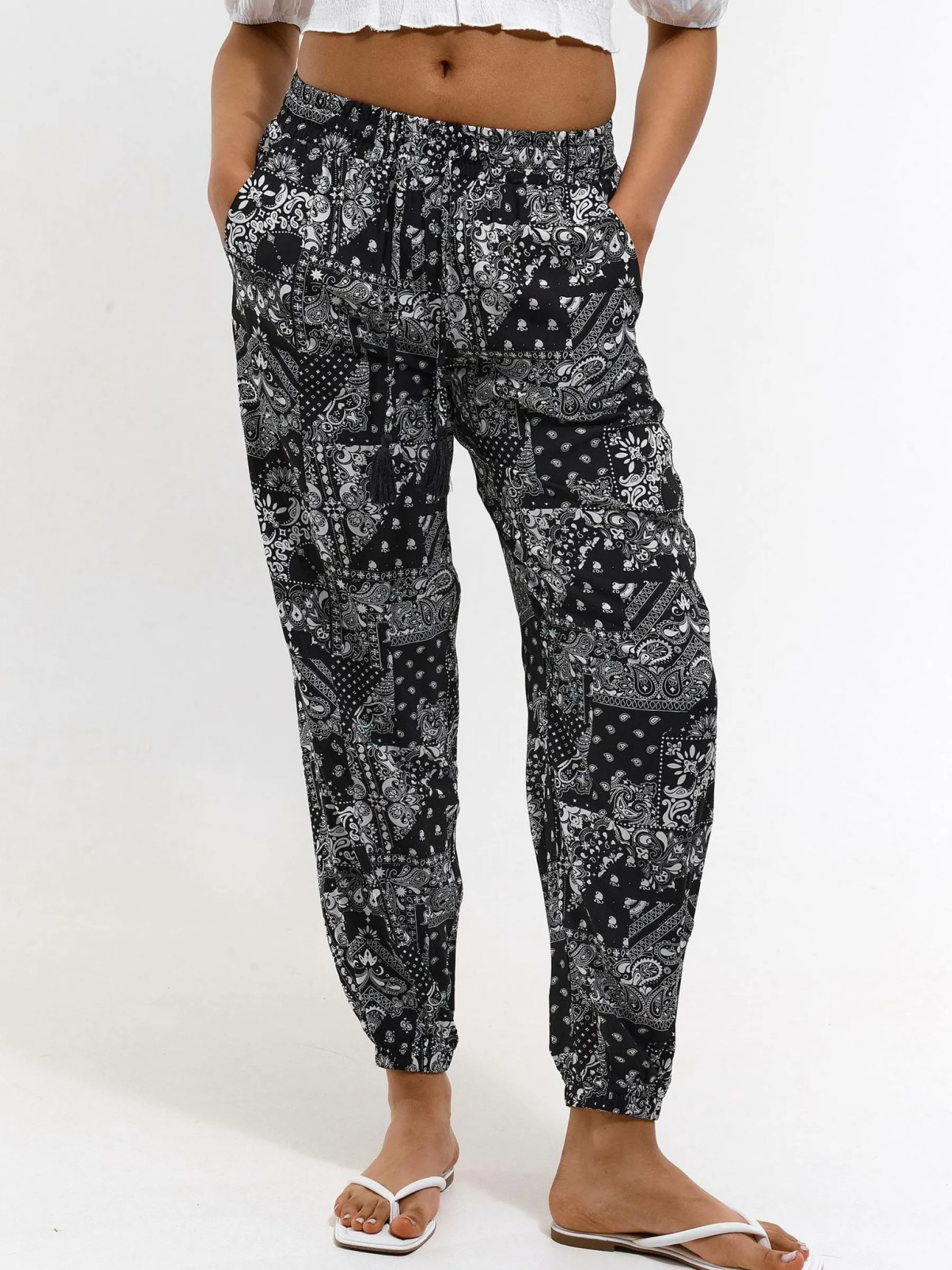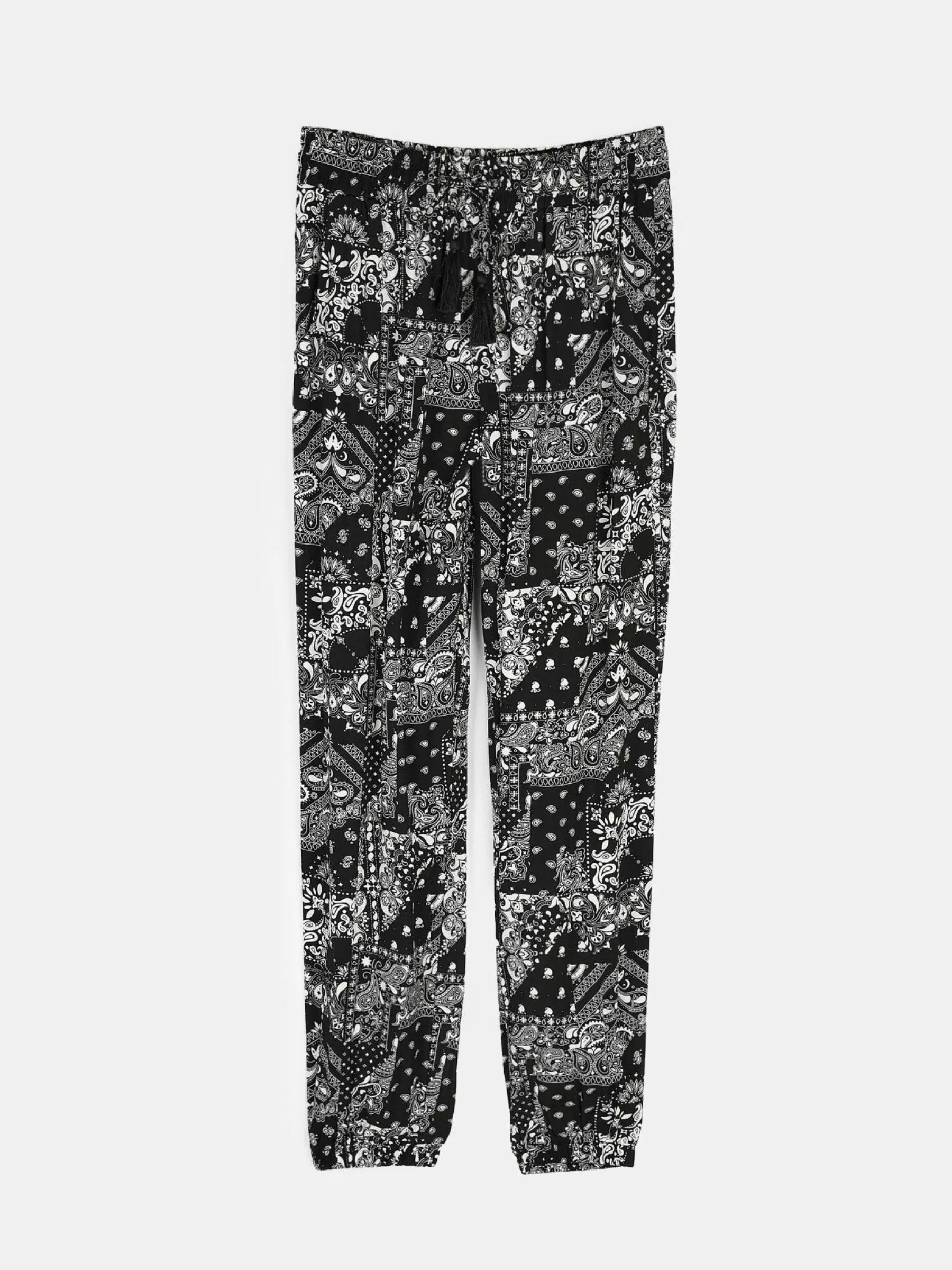 Kolor: czarnyKrój: haremTyp: spodnieDługość: dlugiePattern style: wzorzysteMateriał: wiskozaPłeć: kobietyOkazja: …