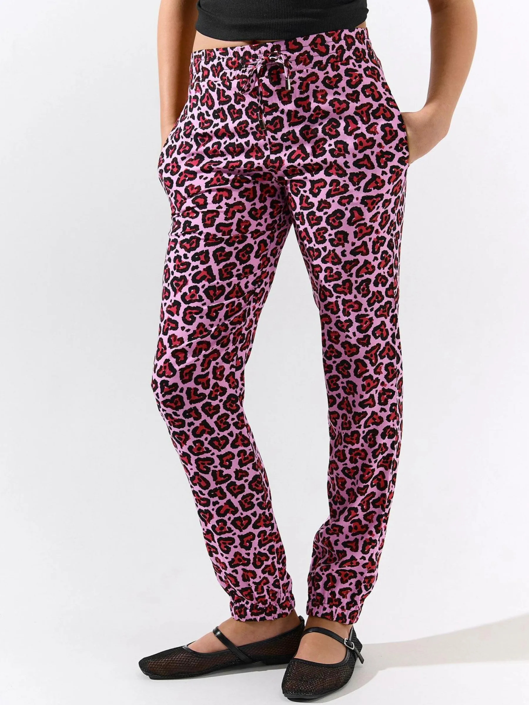 Kolor: różowyKrój: haremTyp: spodnieDługość: dlugiePattern style: zwierzecyDetal: ze sznurowaniemMateriał: wiskoz…