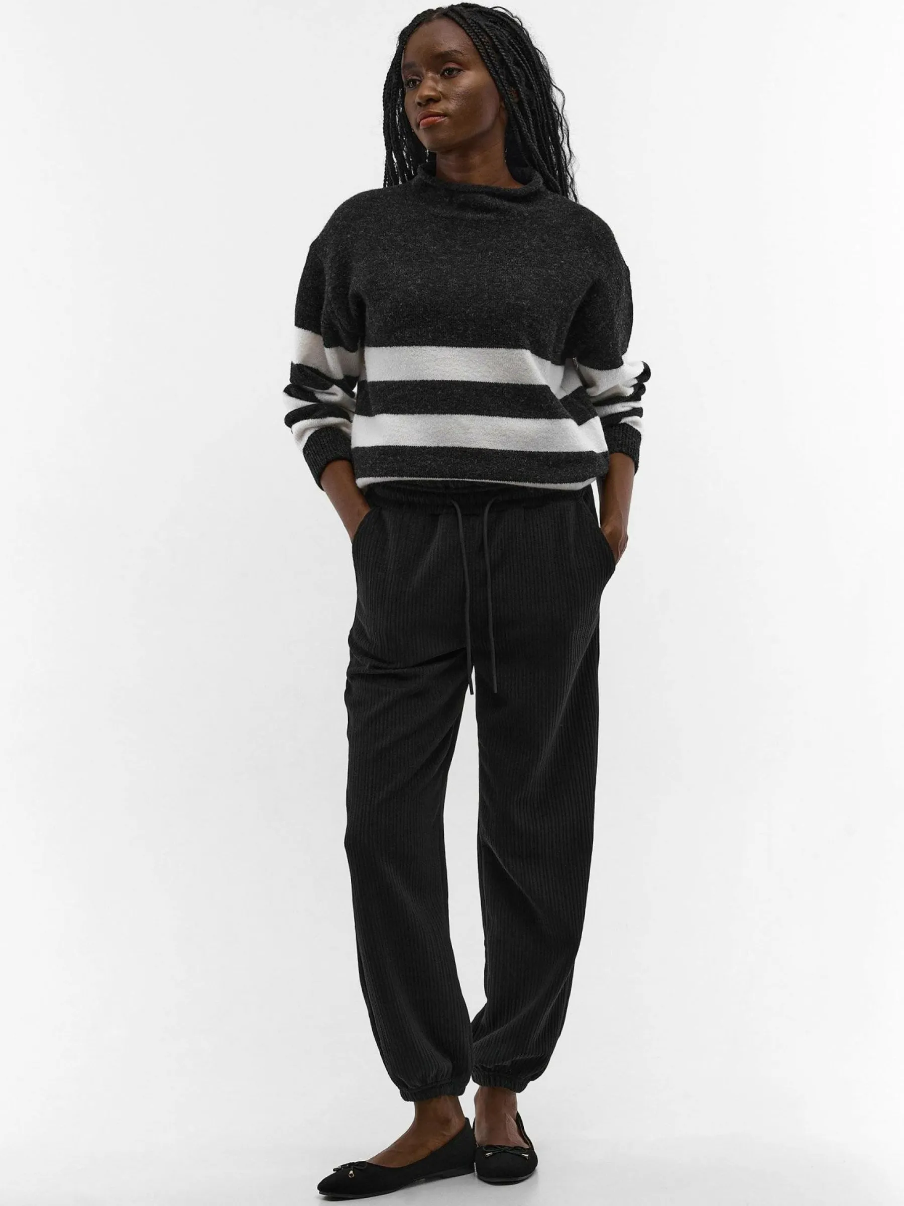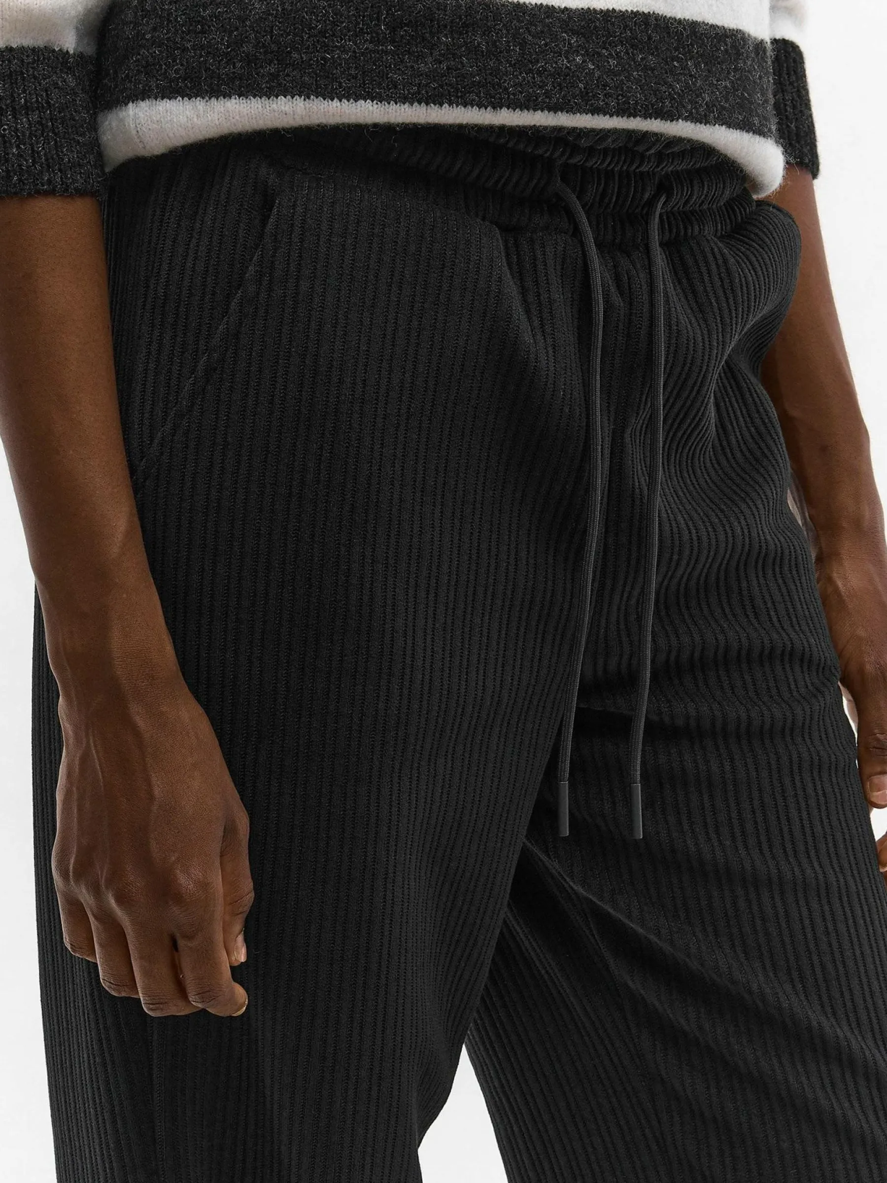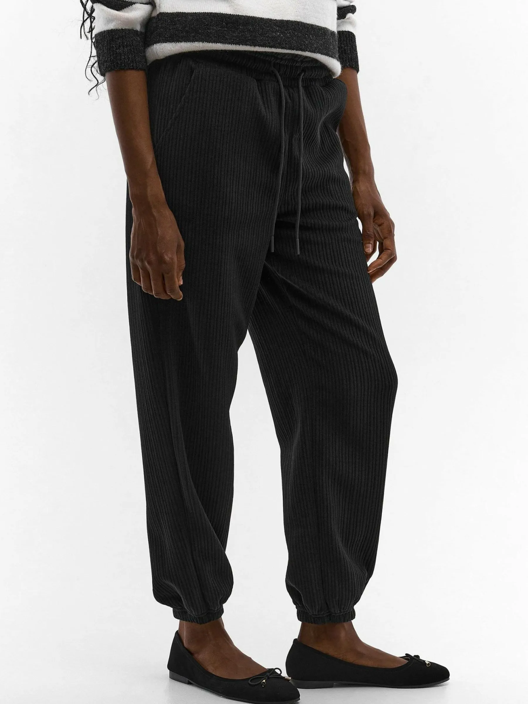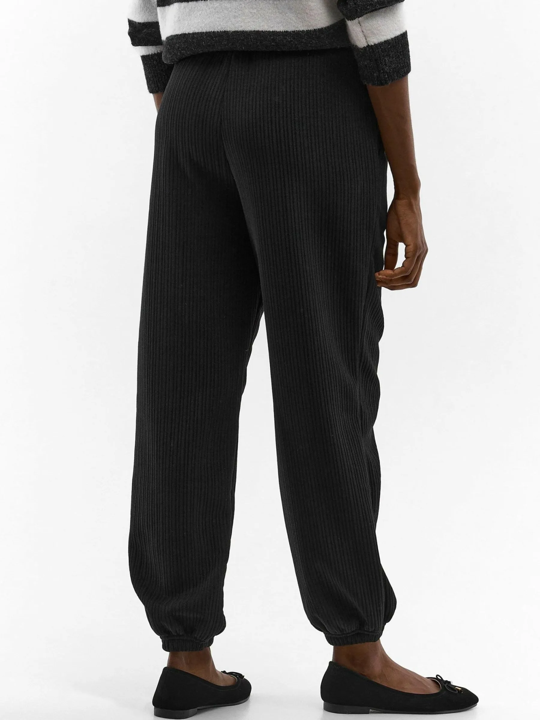 Kolor: czarnyKrój: jogger, paperbagTyp: spodnieDługość: dlugiePattern style: pojedynczy kolor, żebrowanyDetal: ze s…