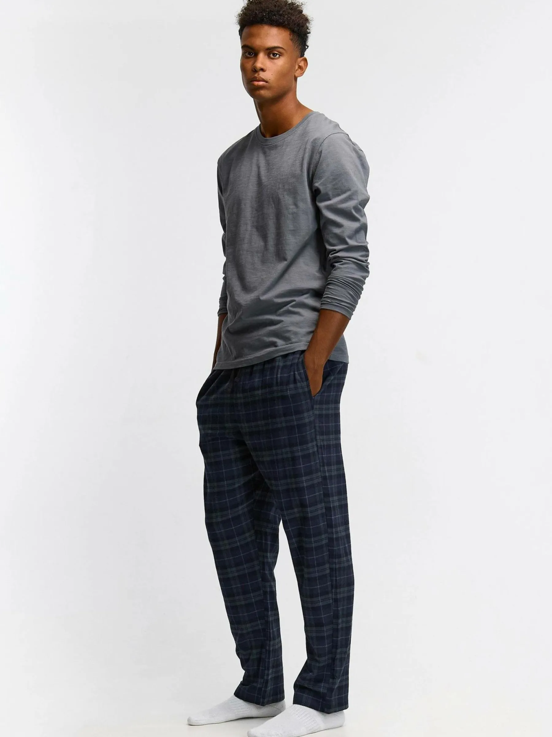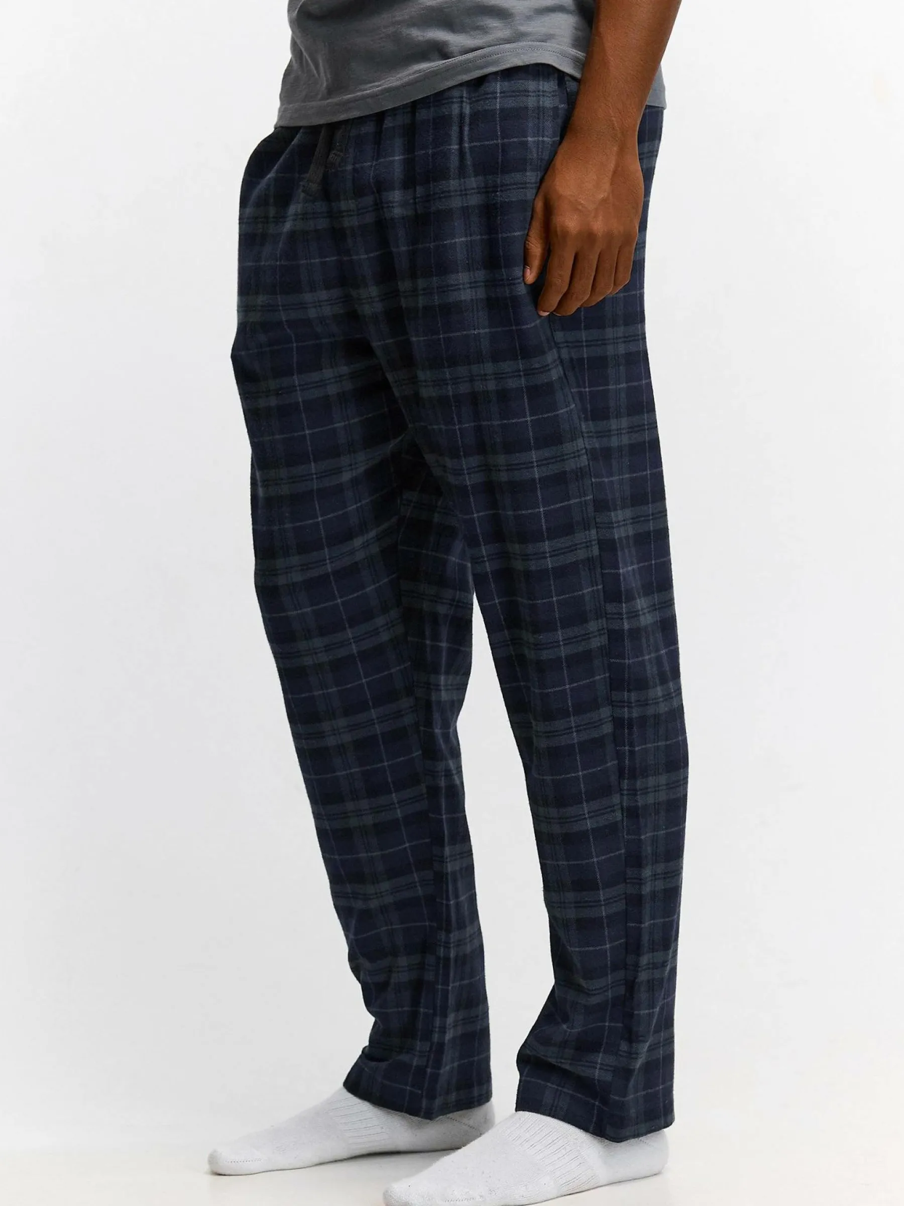 Kolor: granatowyKrój: podstawowyTyp: piżamaDługość: dlugiePattern style: w krateDetal: ze sznurowaniem, z elastyczn…