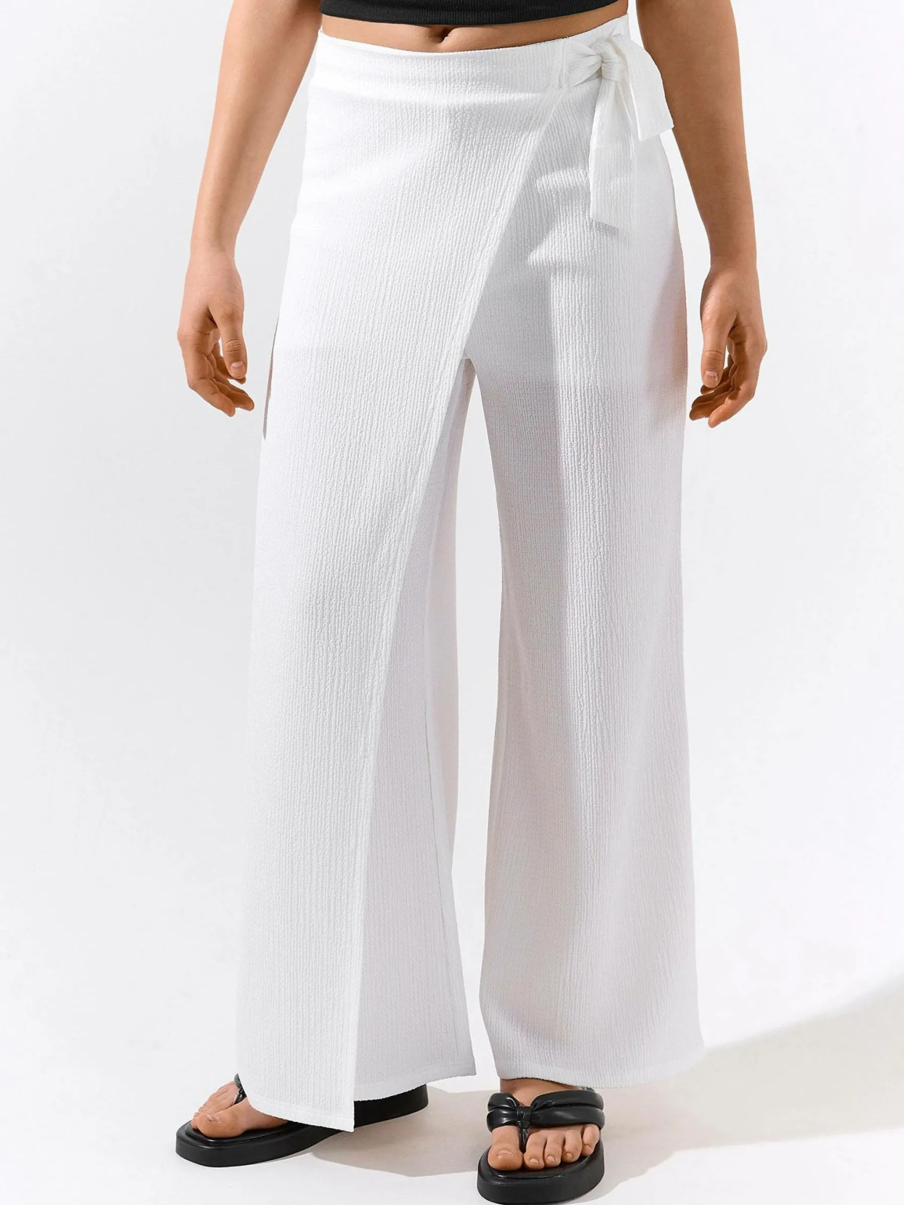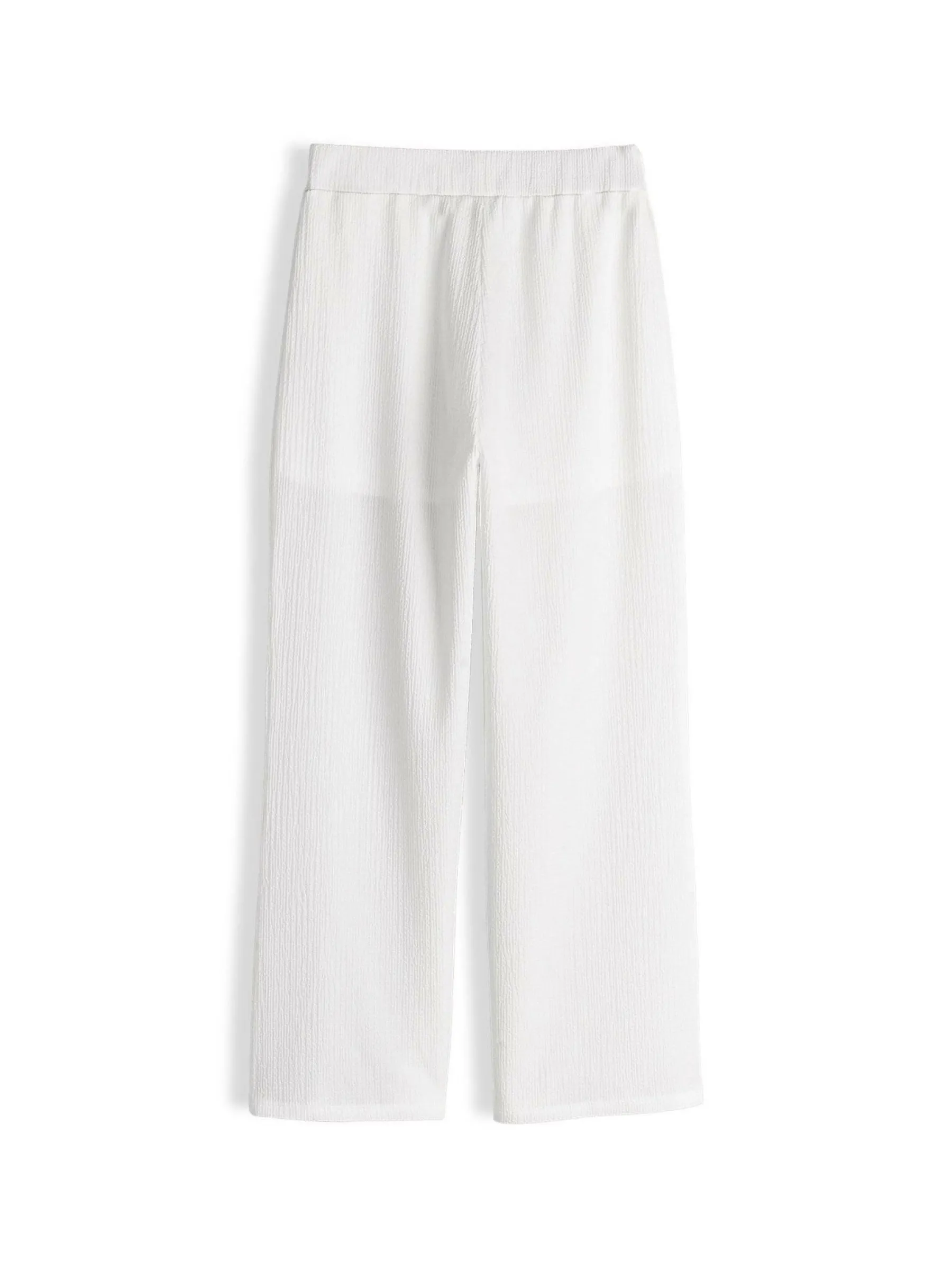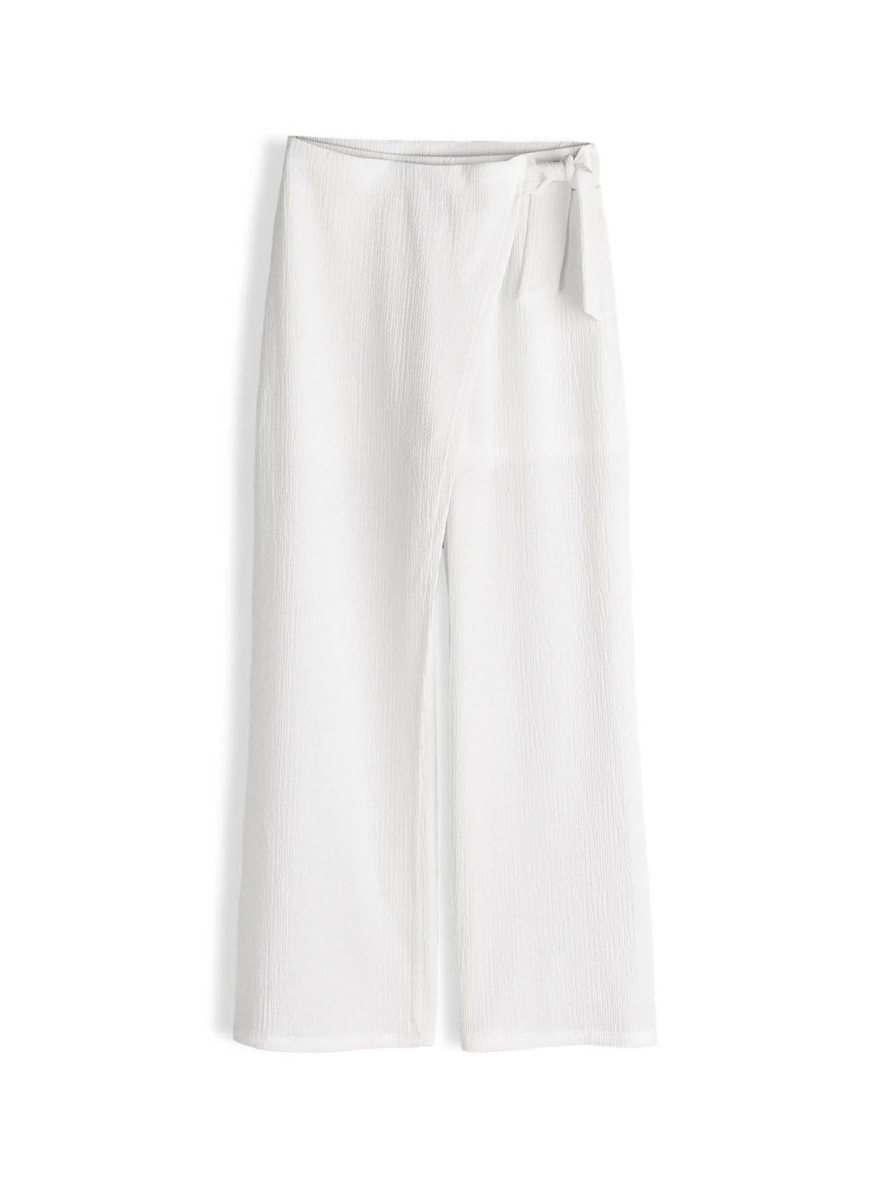 Kolor: białyKrój: szerokieTyp: spodnieDługość: dlugiePattern style: pojedynczy kolorDetal: z wiązaniemMateriał: s…