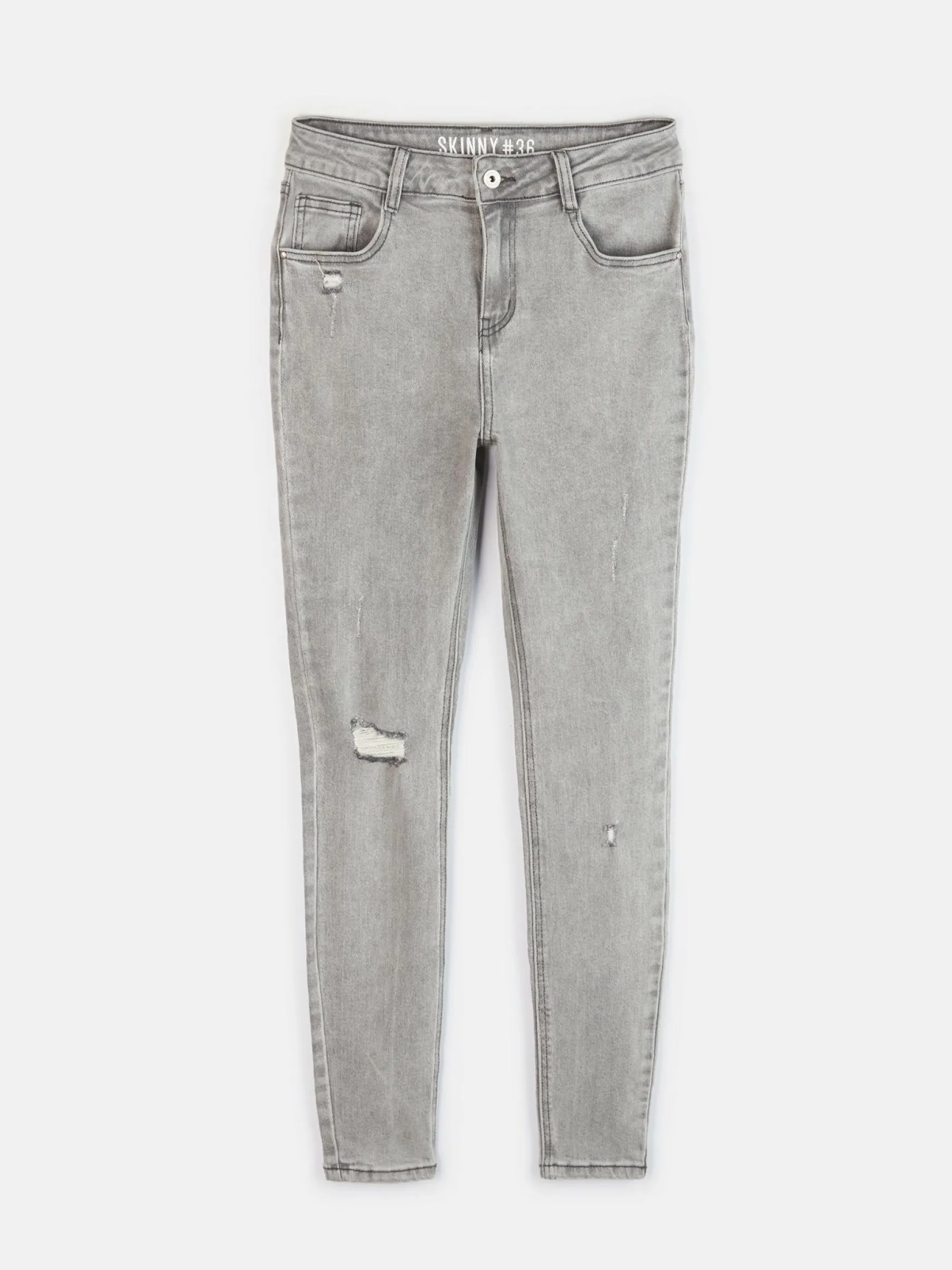 Kolor: szaryKrój: skinnyTyp: jeansDługość: dlugiePattern style: pojedynczy kolorDetal: z otworamiMateriał: dżinsow…