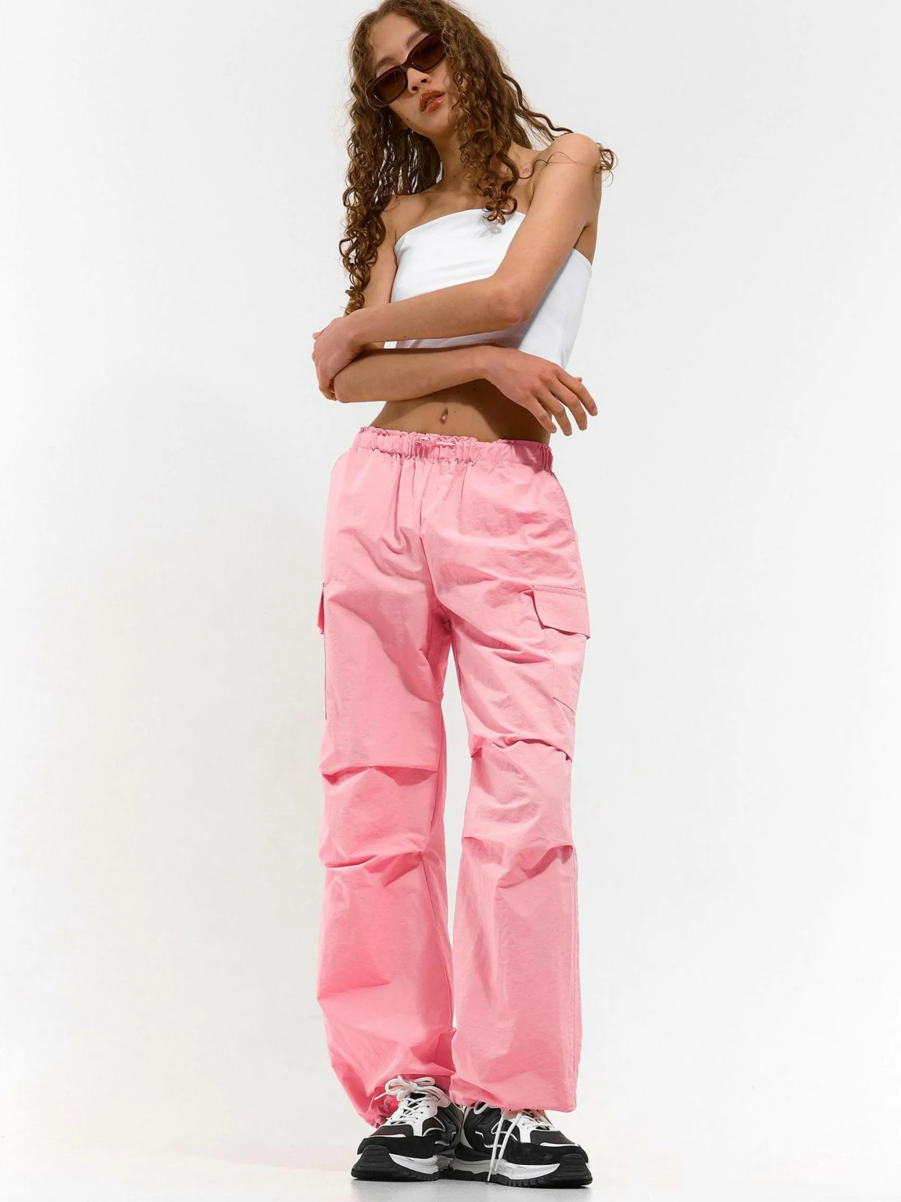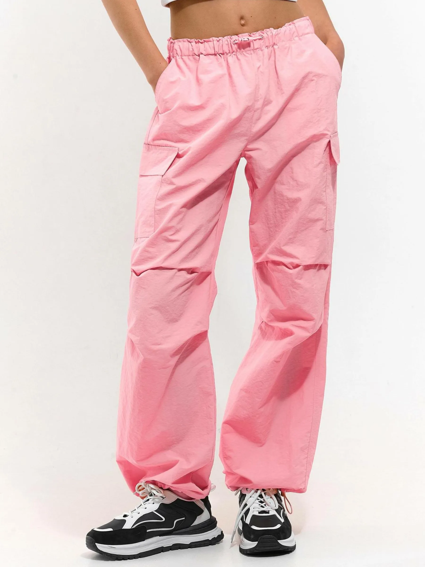 Kolor: różowyKrój: szerokieTyp: spodnieDługość: dlugiePattern style: pojedynczy kolorDetal: z kieszeniamiMateriał…