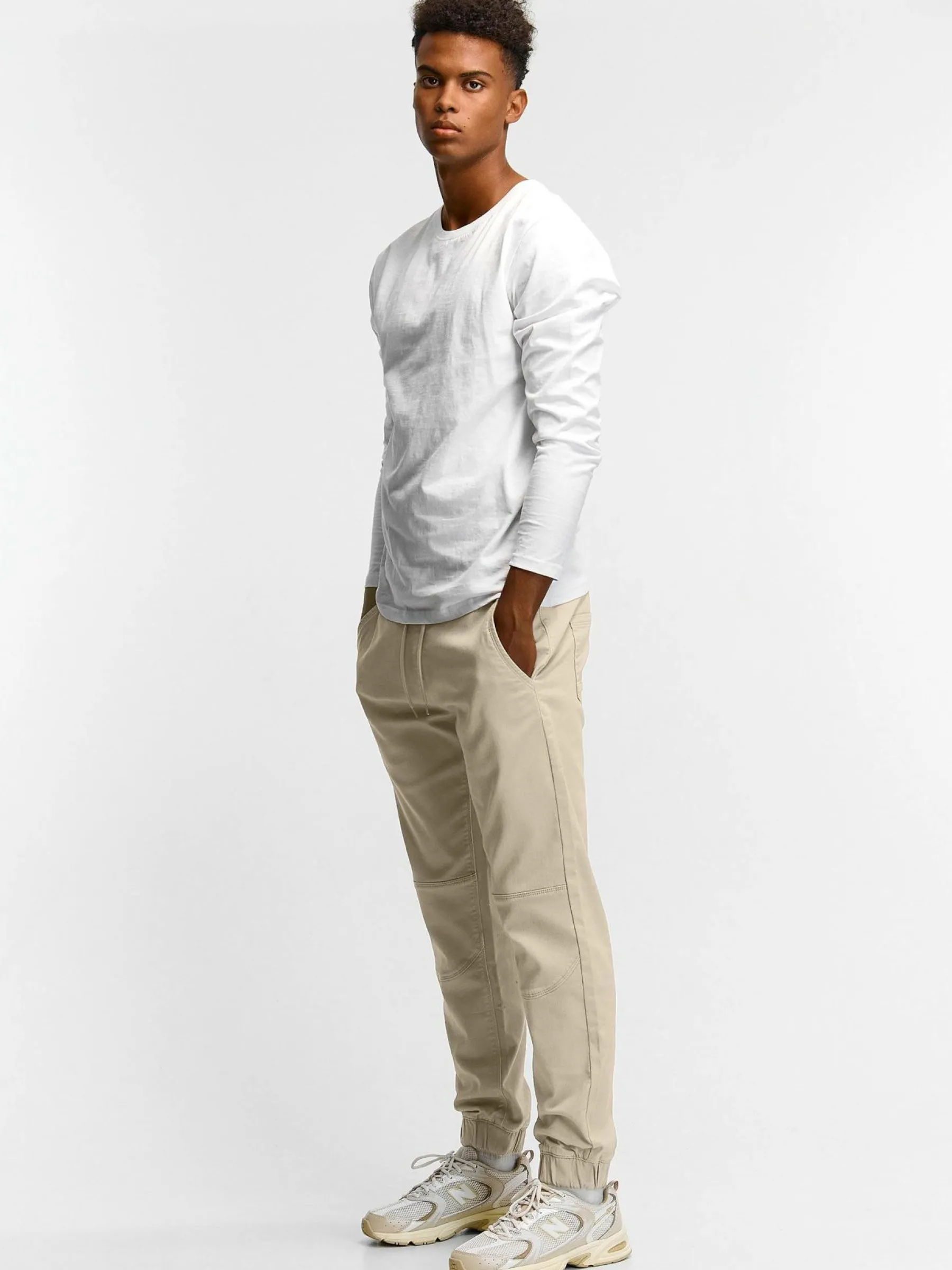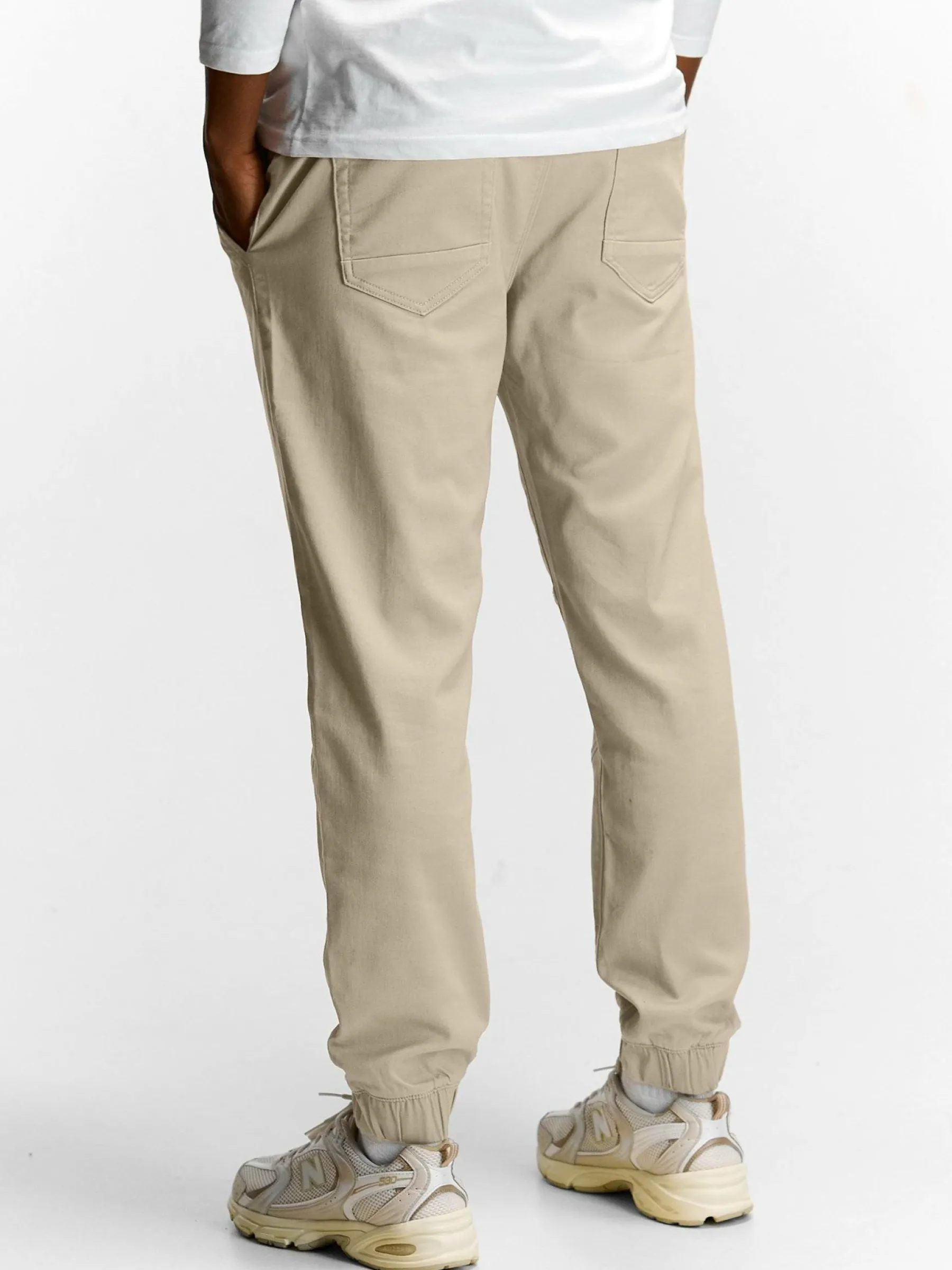 Kolor: beżowyKrój: joggerTyp: spodnieDługość: dlugiePattern style: pojedynczy kolorDetal: ze sznurowaniem, z kiesze…