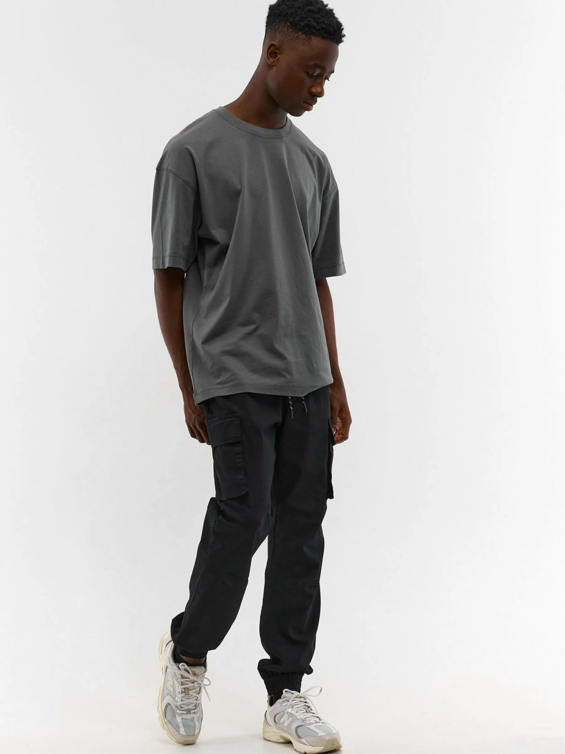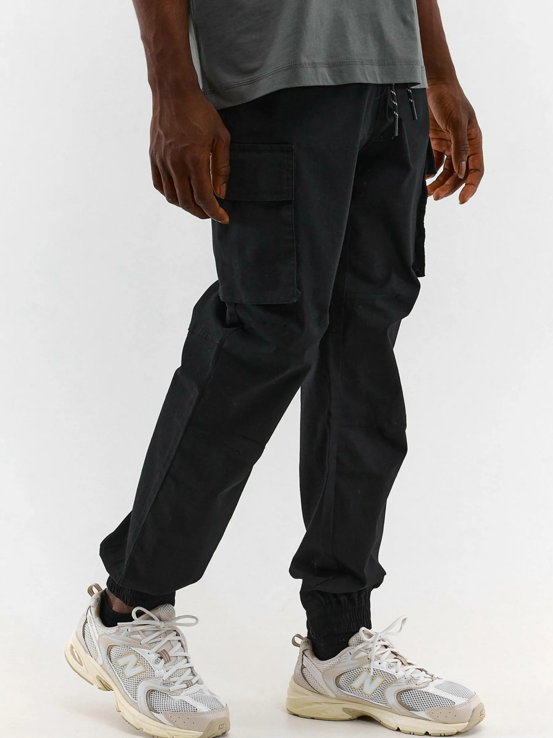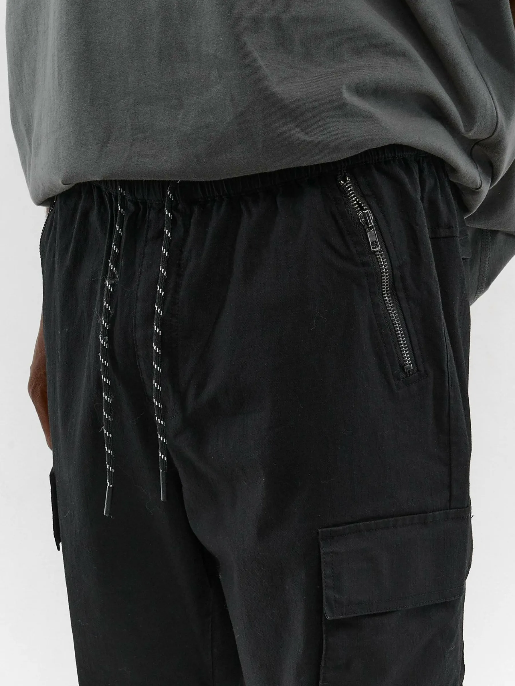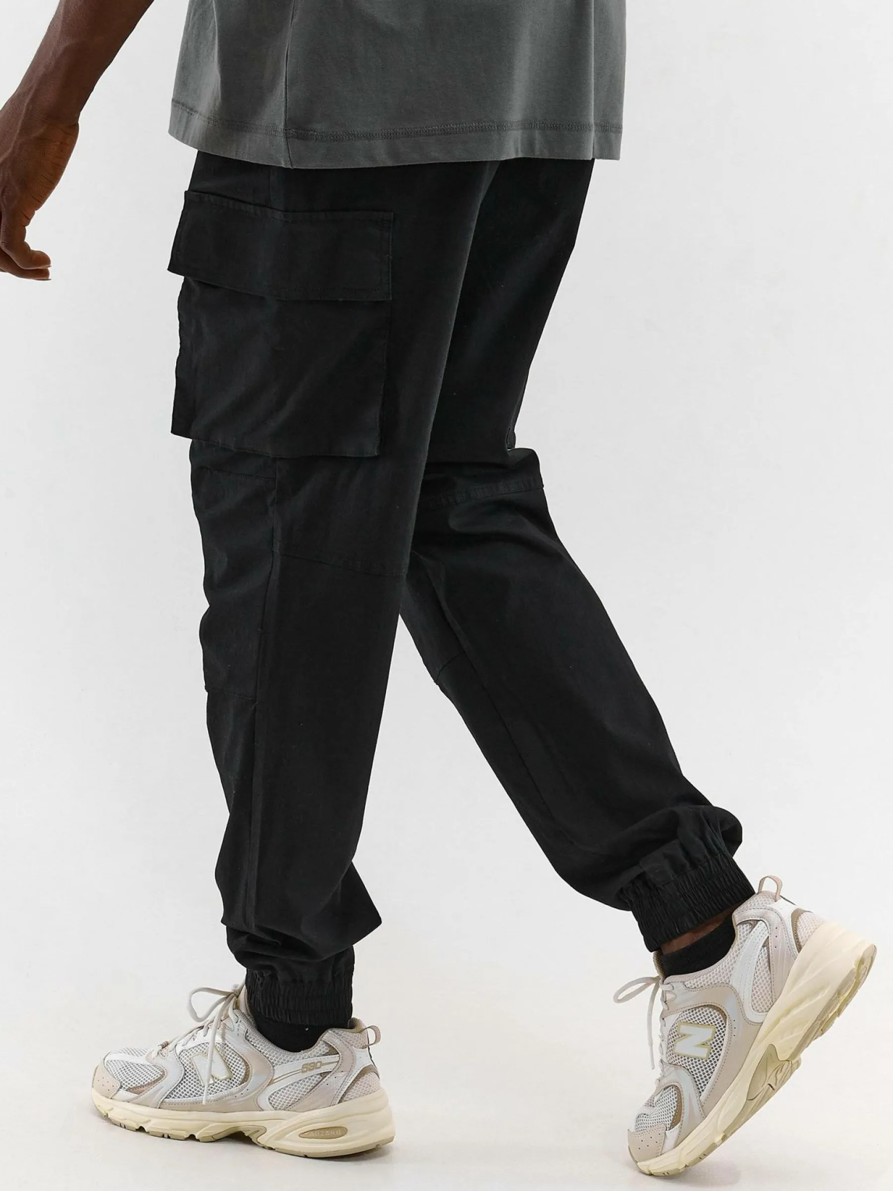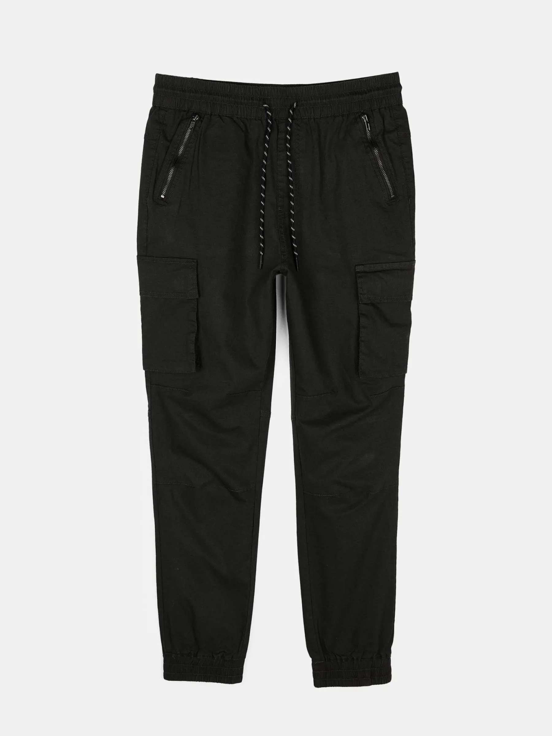 Kolor: czarnyKrój: joggerTyp: spodnieDługość: dlugiePattern style: pojedynczy kolorDetal: ze sznurowaniem, z kieszen…