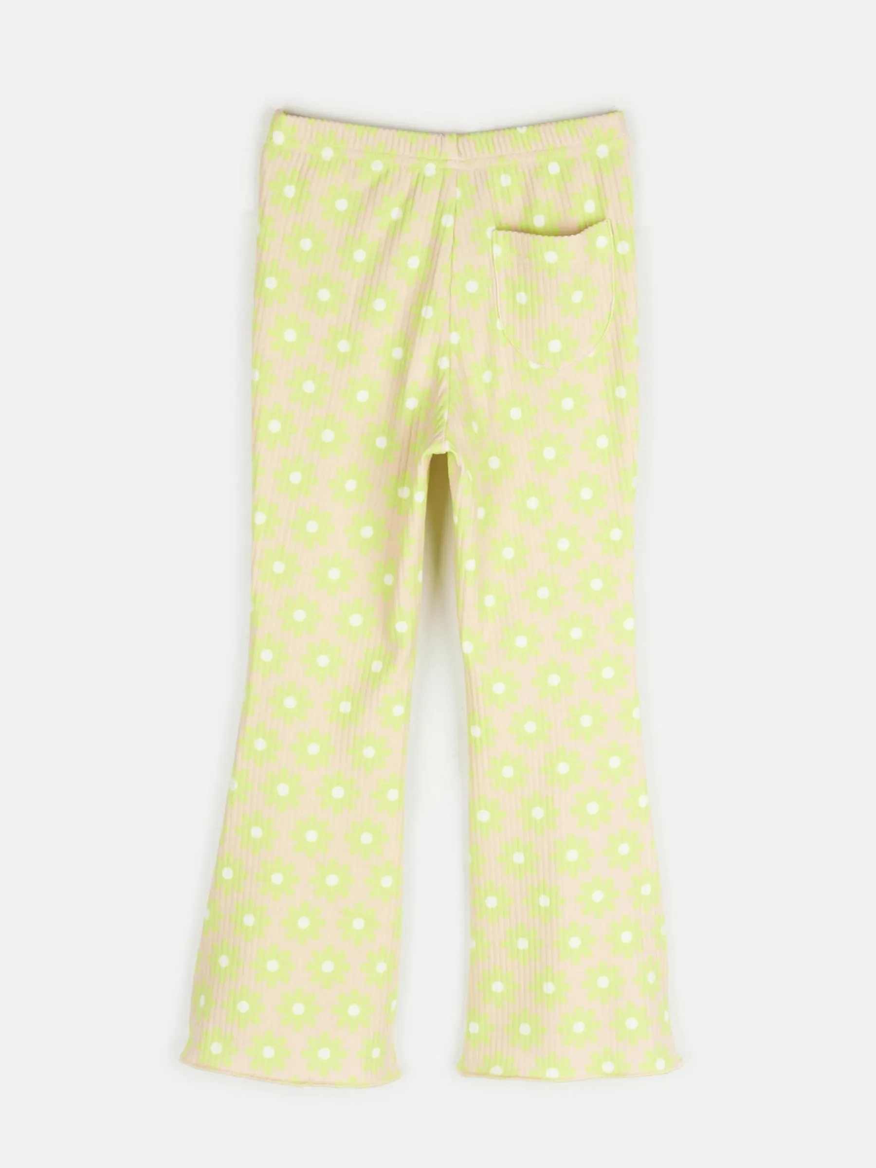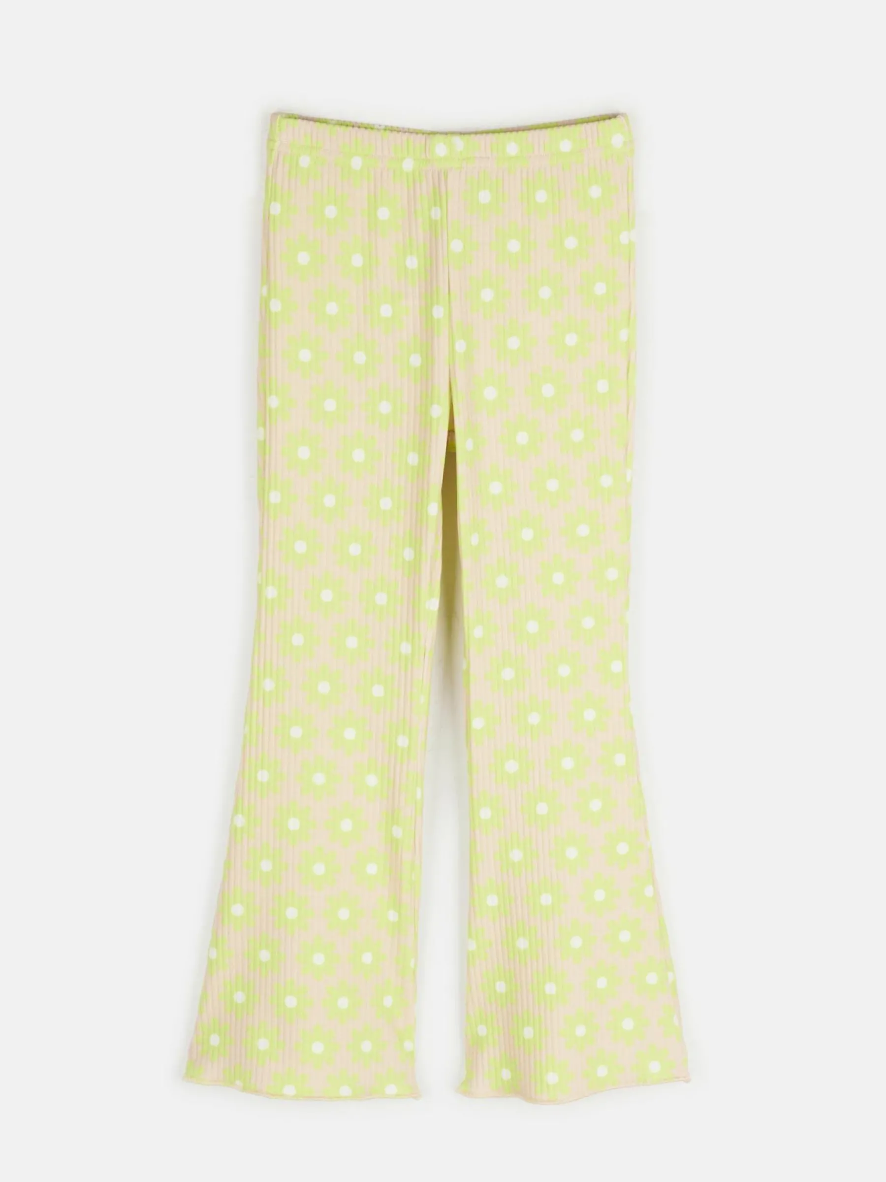 Kolor: beżowyKrój: dzwonTyp: spodnieDługość: dlugiePattern style: kwiatoweMateriał: syntetycznePłeć: dziewczynyO…
