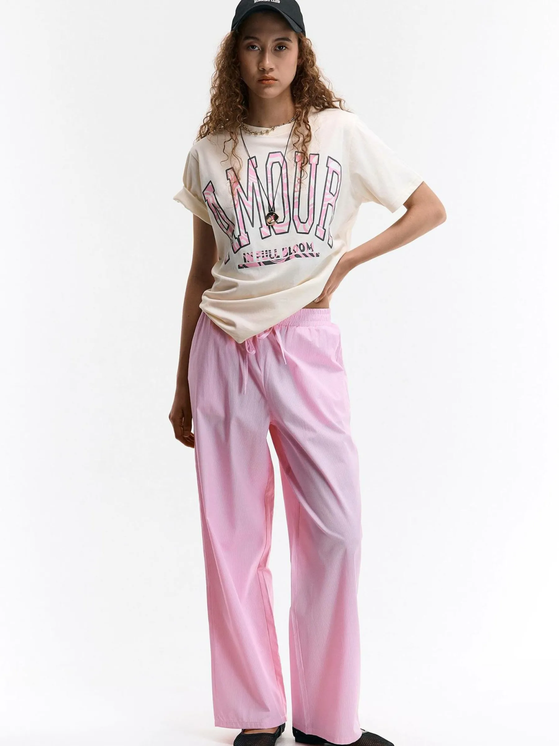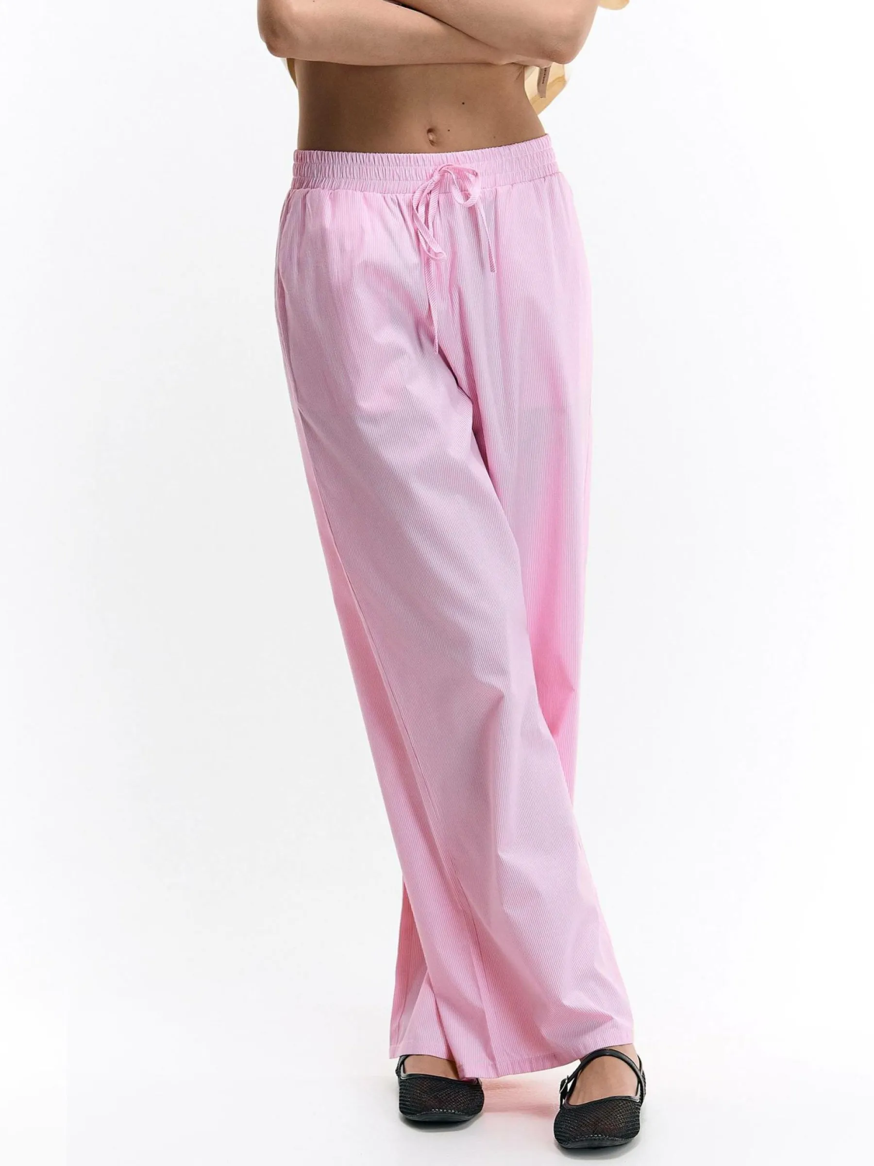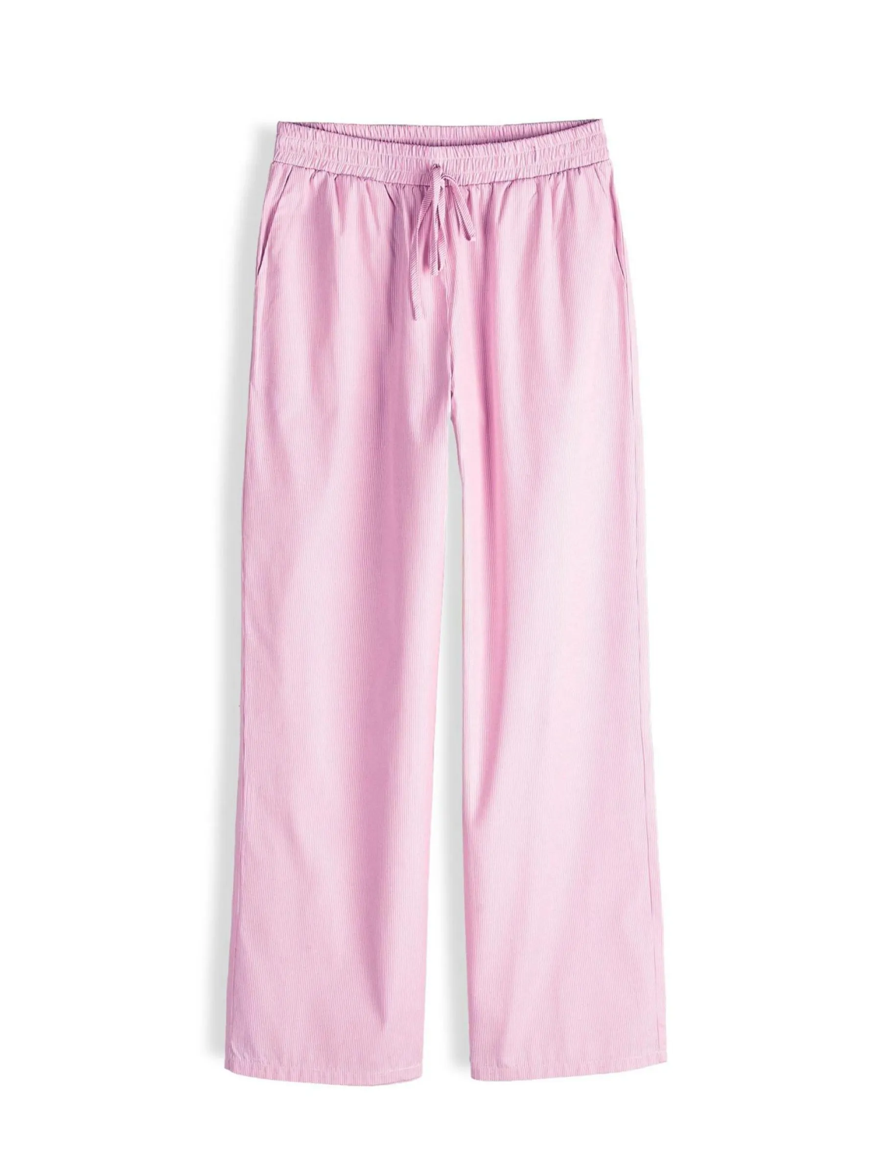 Kolor: różowyKrój: szerokieTyp: spodnieDługość: dlugiePattern style: w prążkiDetal: ze sznurowaniemMateriał: mi…
