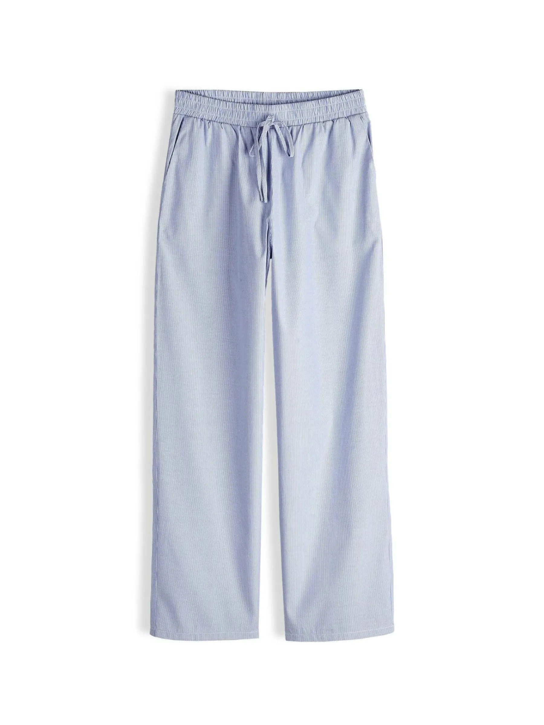 Kolor: niebieskiKrój: szerokieTyp: spodnieDługość: dlugiePattern style: w prążkiDetal: ze sznurowaniemMateriał: m…