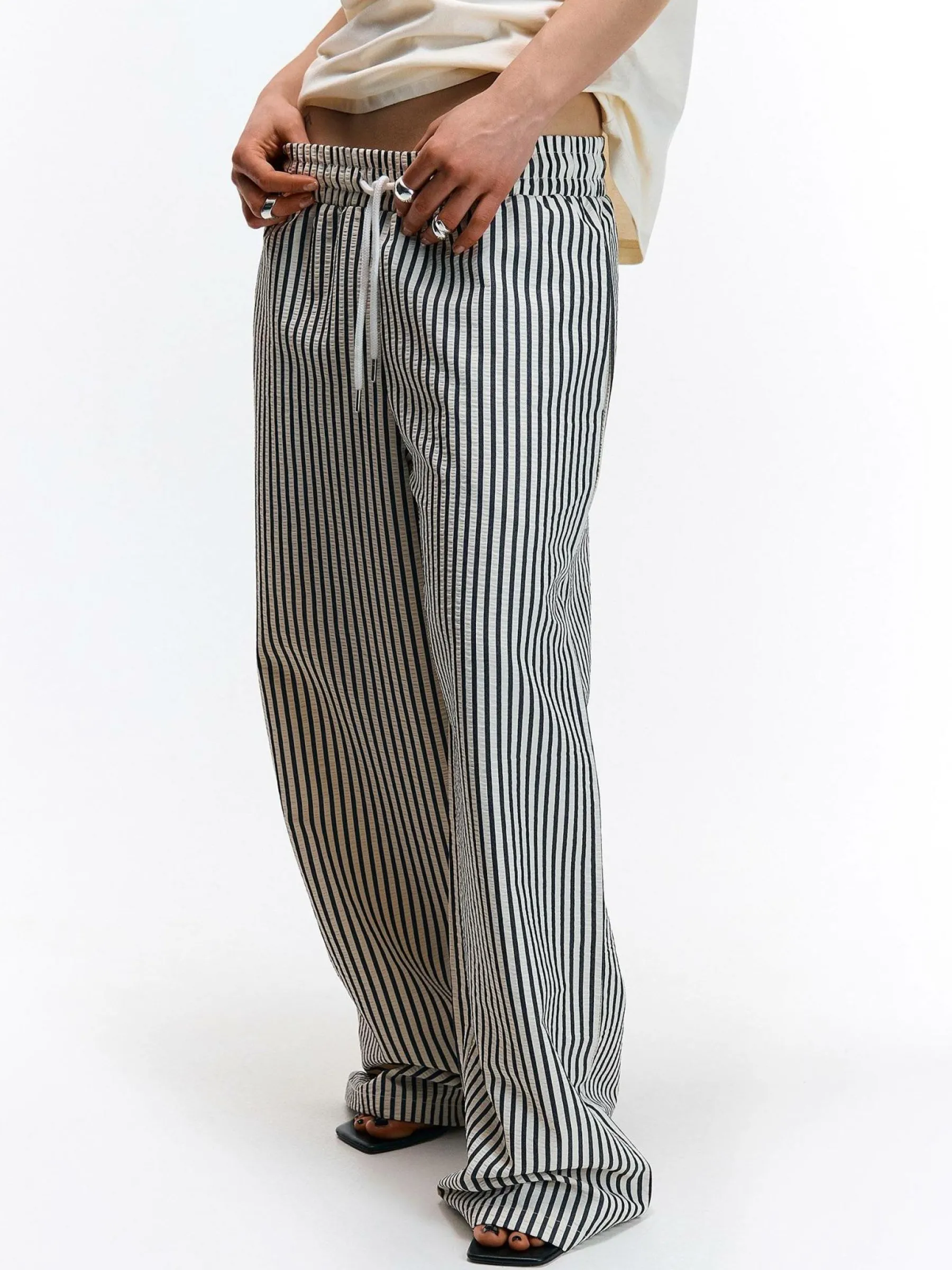 Krój: szerokieTyp: spodnieDługość: dlugiePattern style: w prążkiDetal: ze sznurowaniemMateriał: syntetycznePłeć…