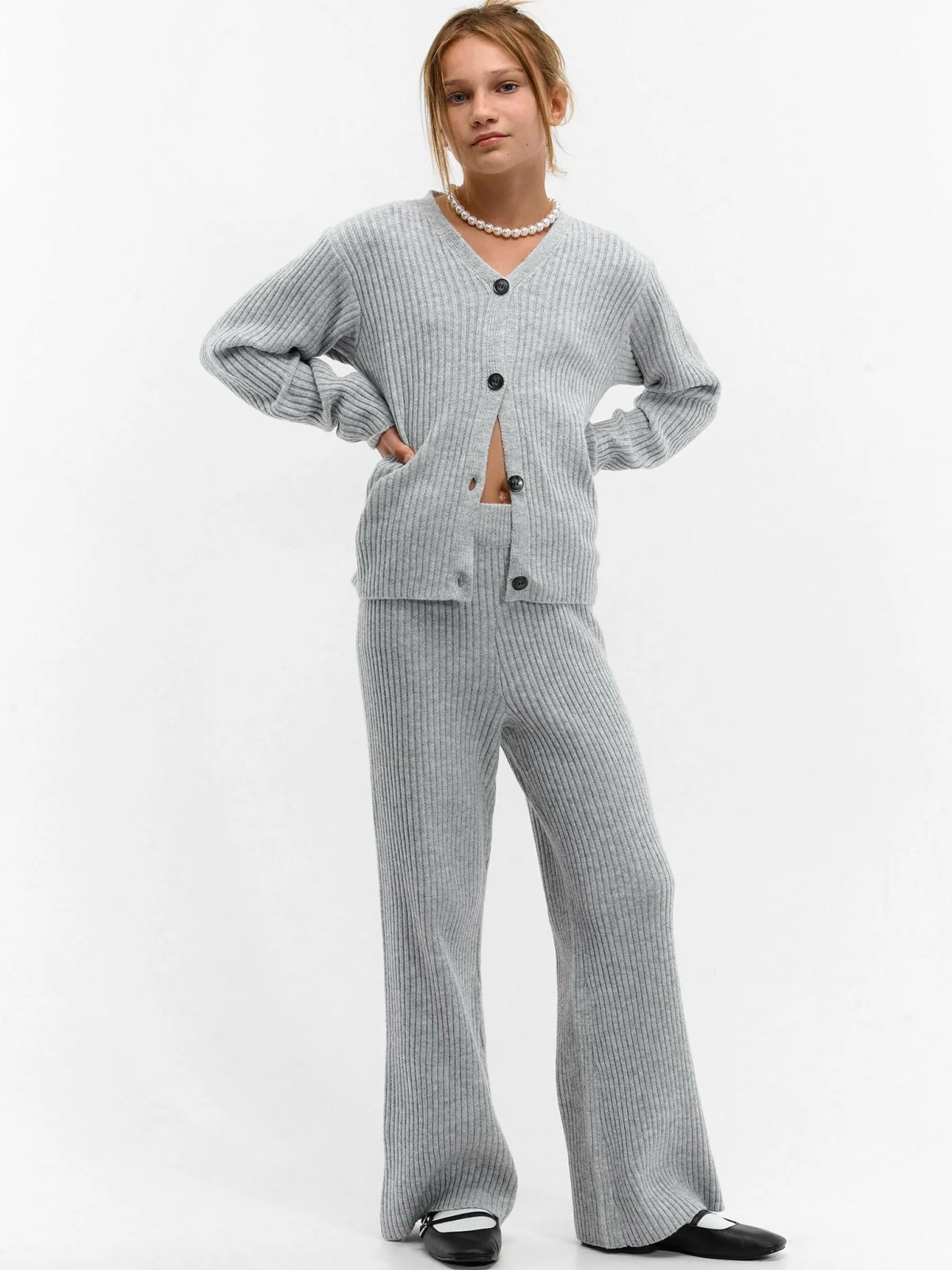 Kolor: szaryKrój: szerokieTyp: spodnieDługość: dlugiePattern style: żebrowany, pojedynczy kolorDetal: z elastyczną…