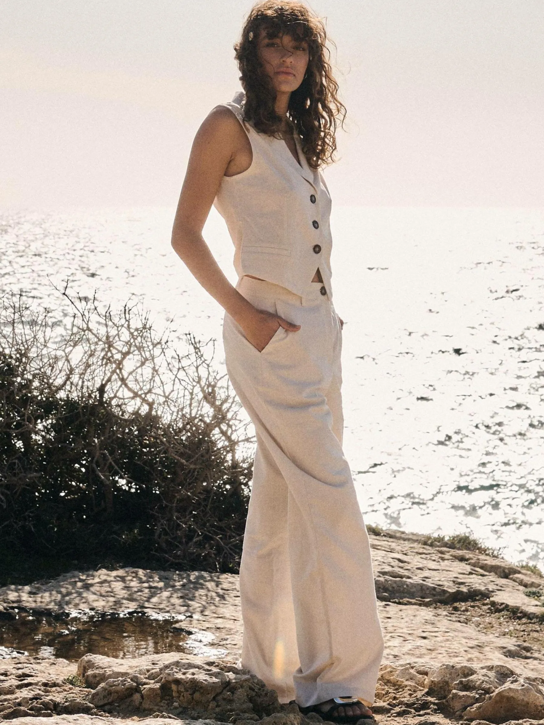 Zdjęcia z modelką mogą nie odpowiadać rzeczywistemu kolorowi produktu.Kolor: beżowyKrój: straightTyp: spodnieDług…