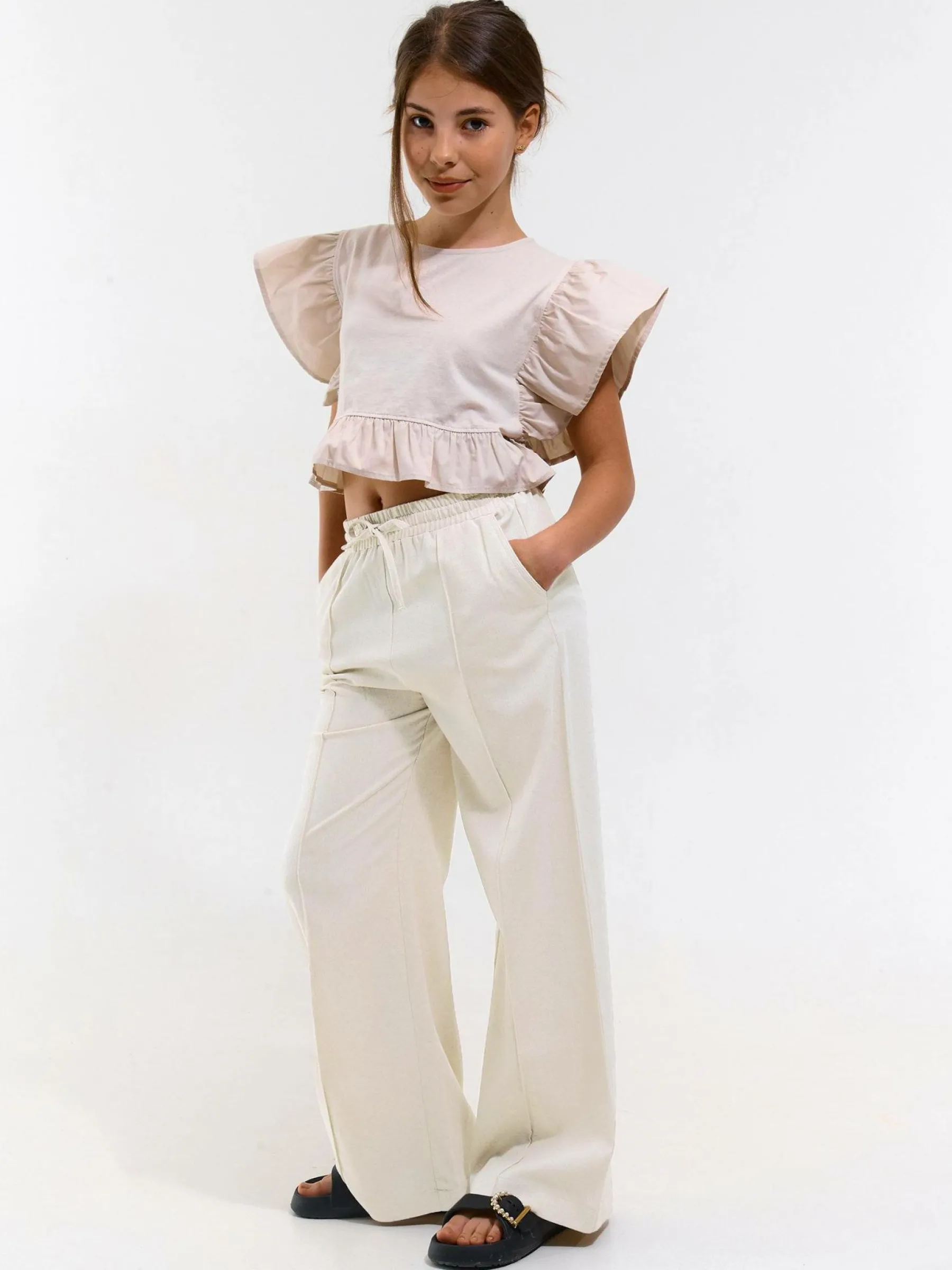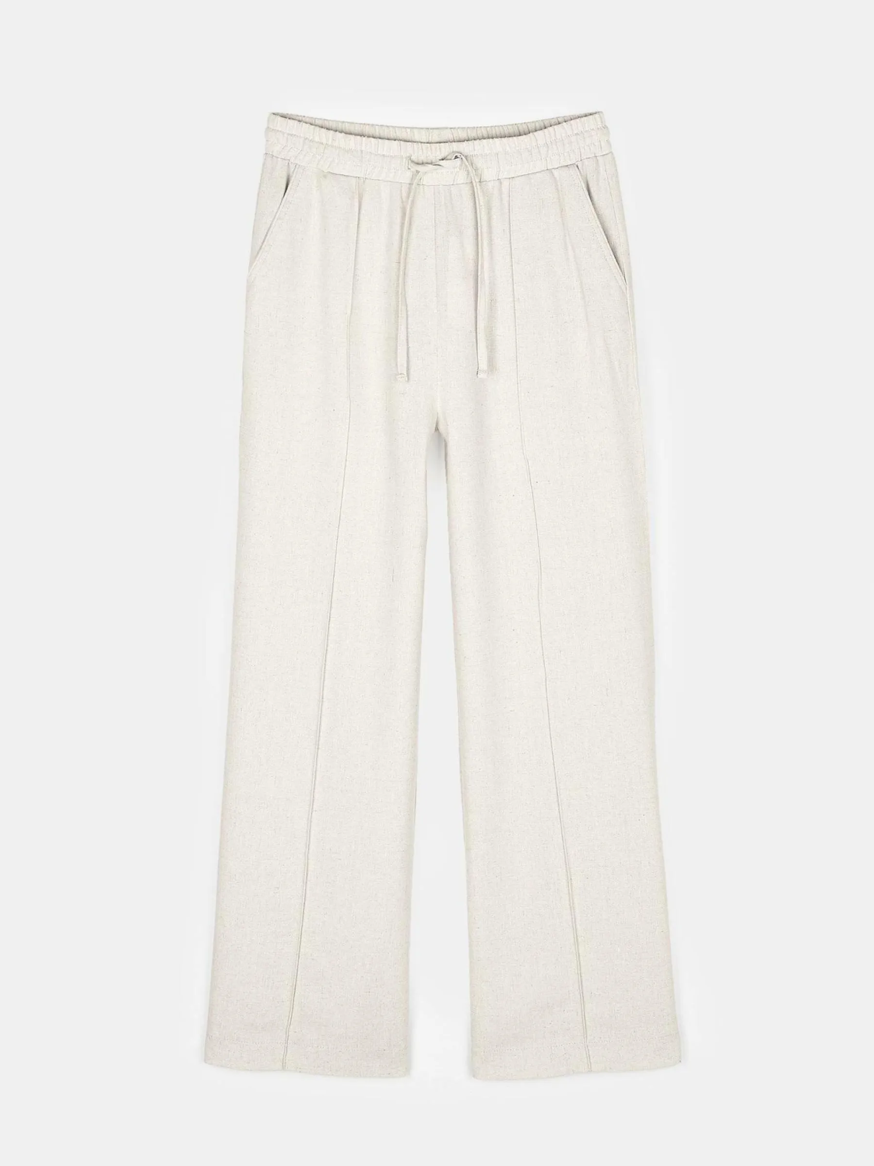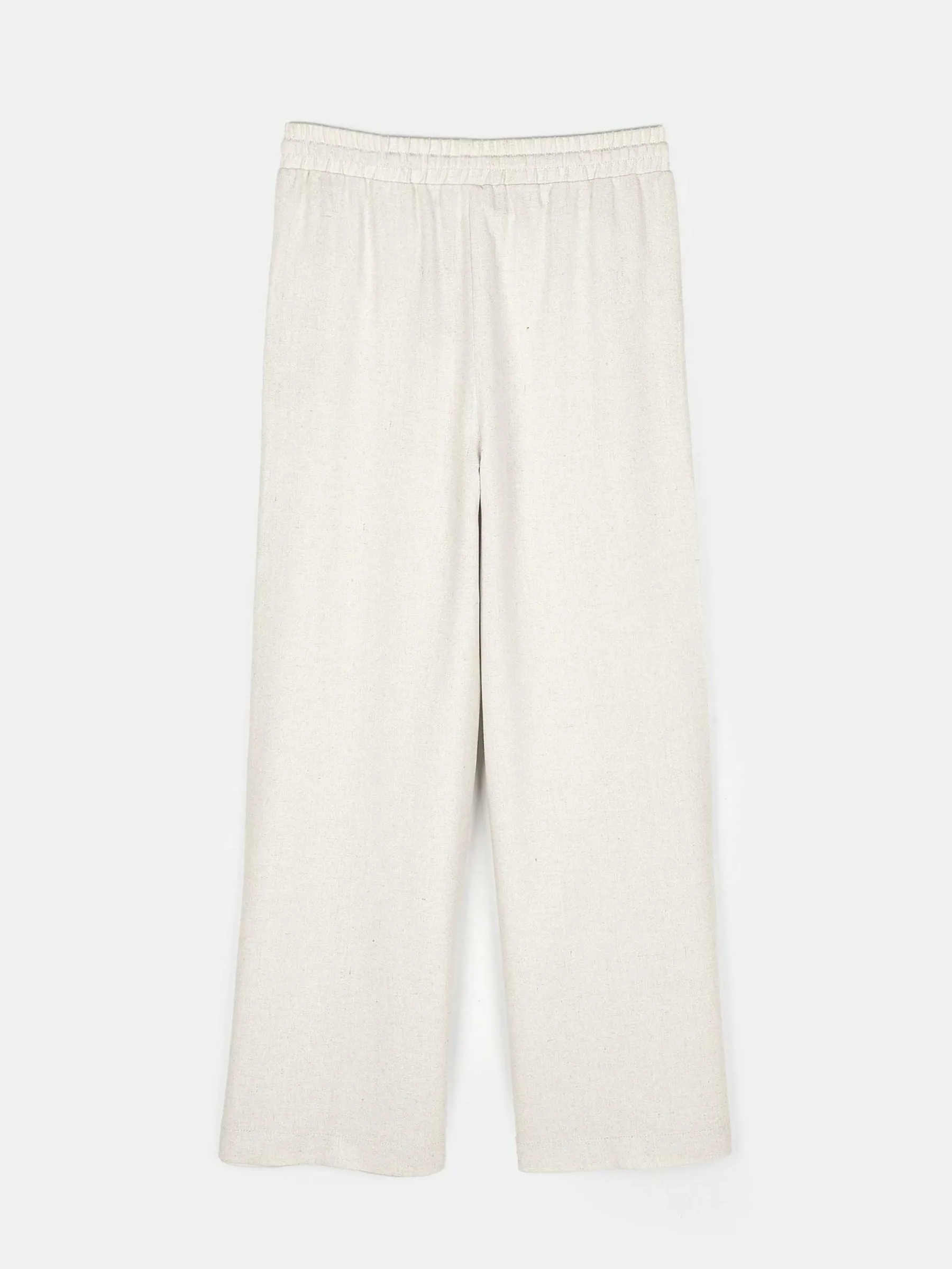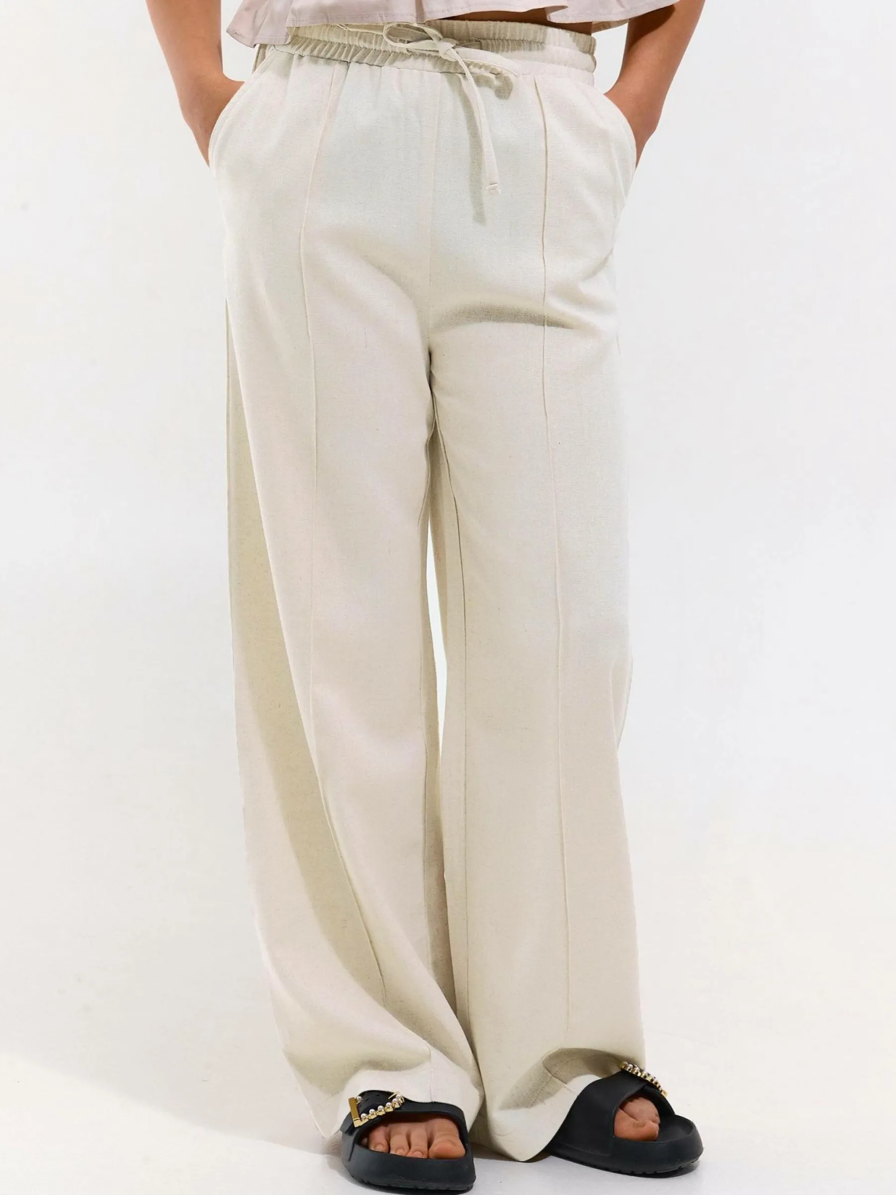 Kolor: beżowyKrój: szerokieTyp: spodnieDługość: dlugiePattern style: pojedynczy kolorDetal: ze sznurowaniem, z kies…