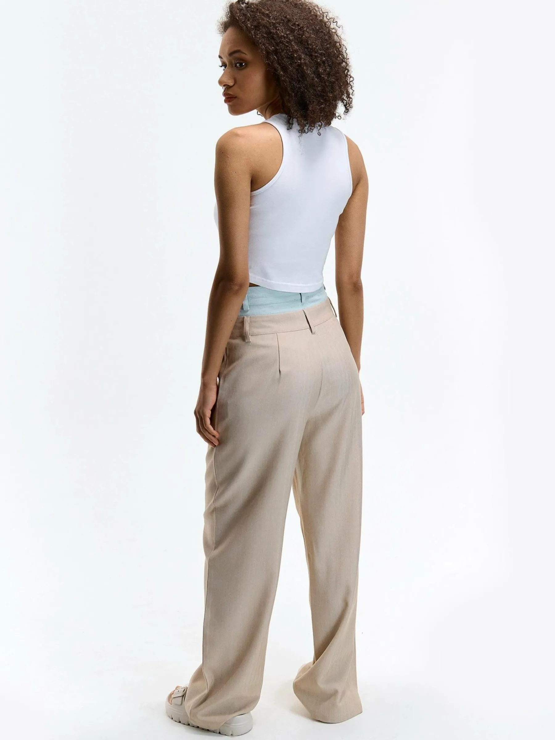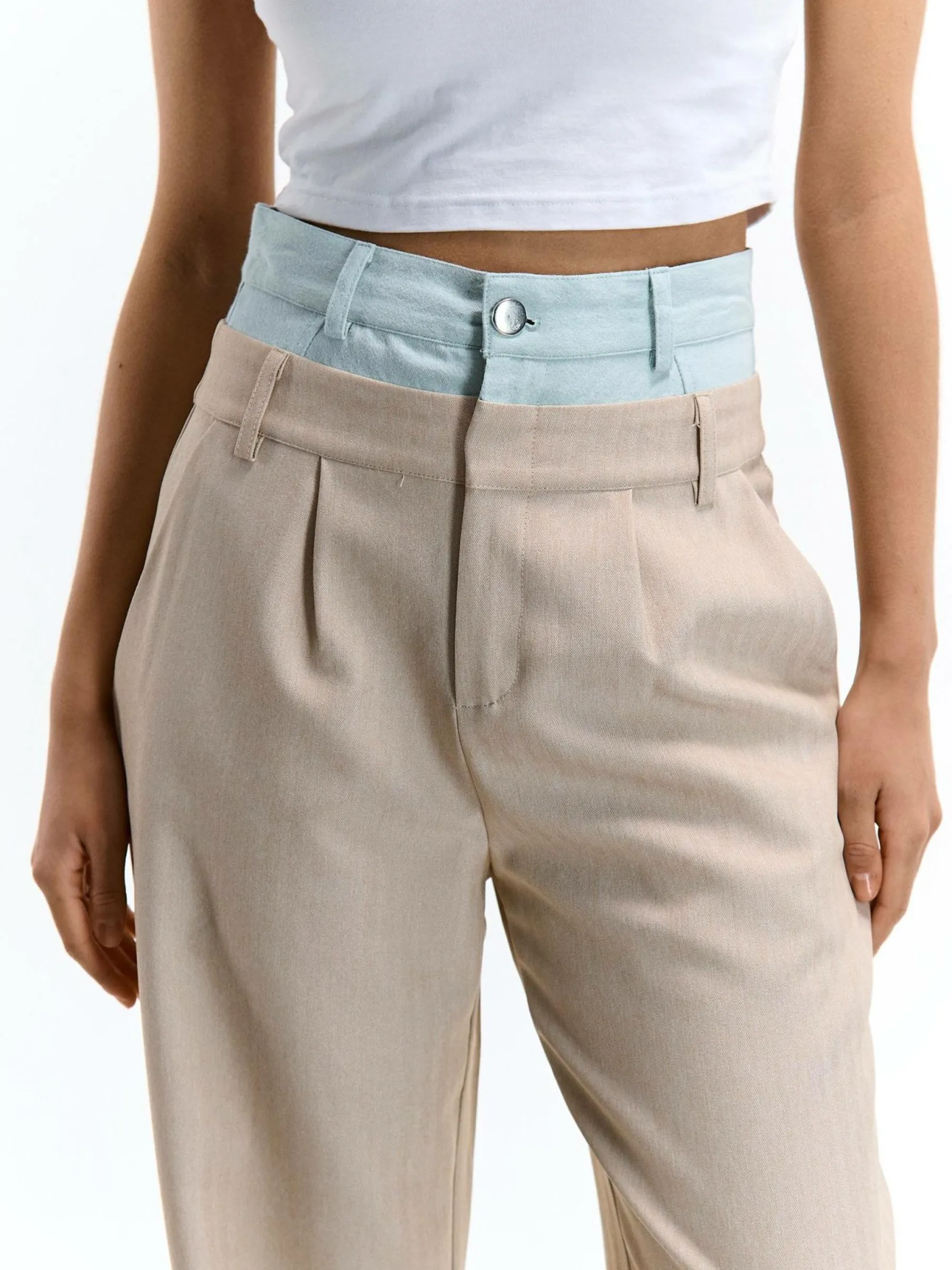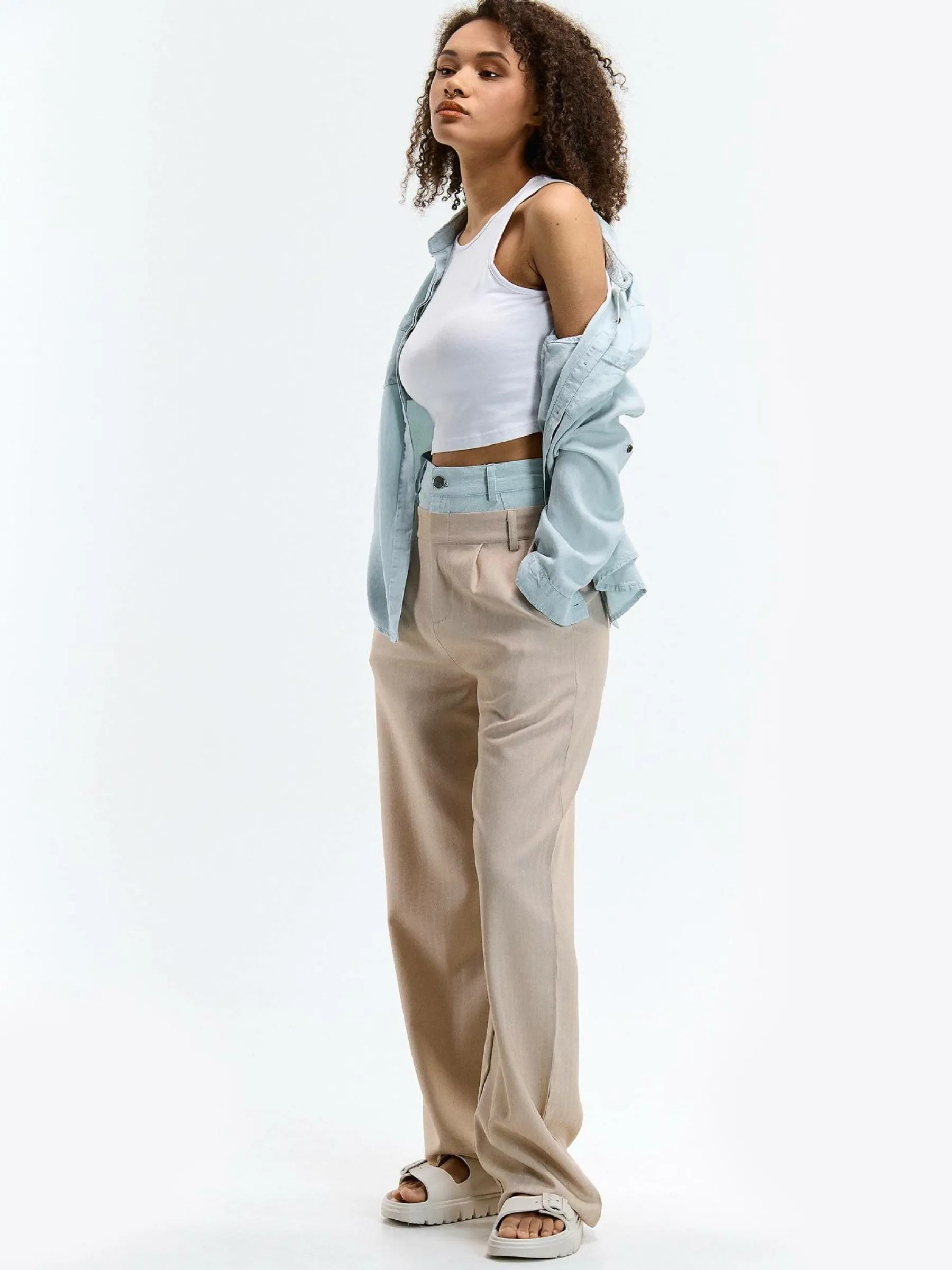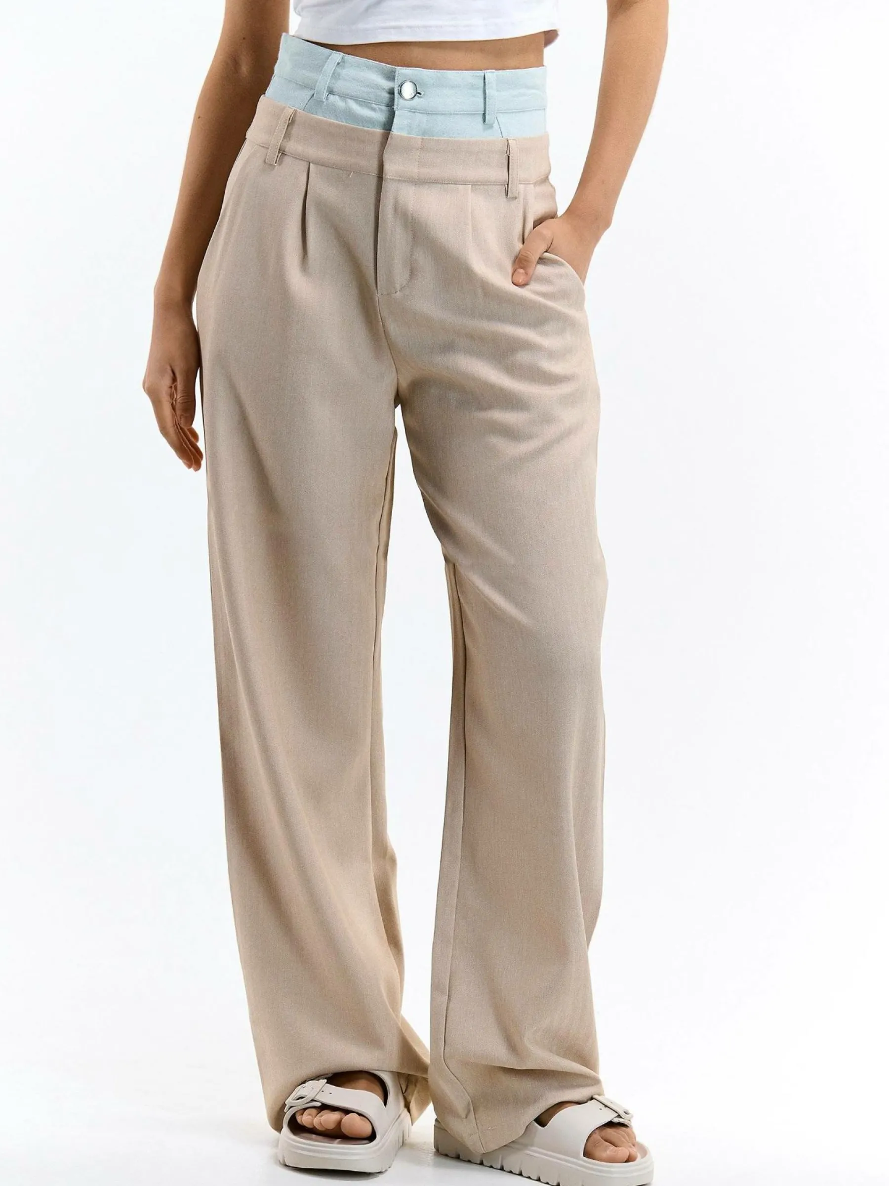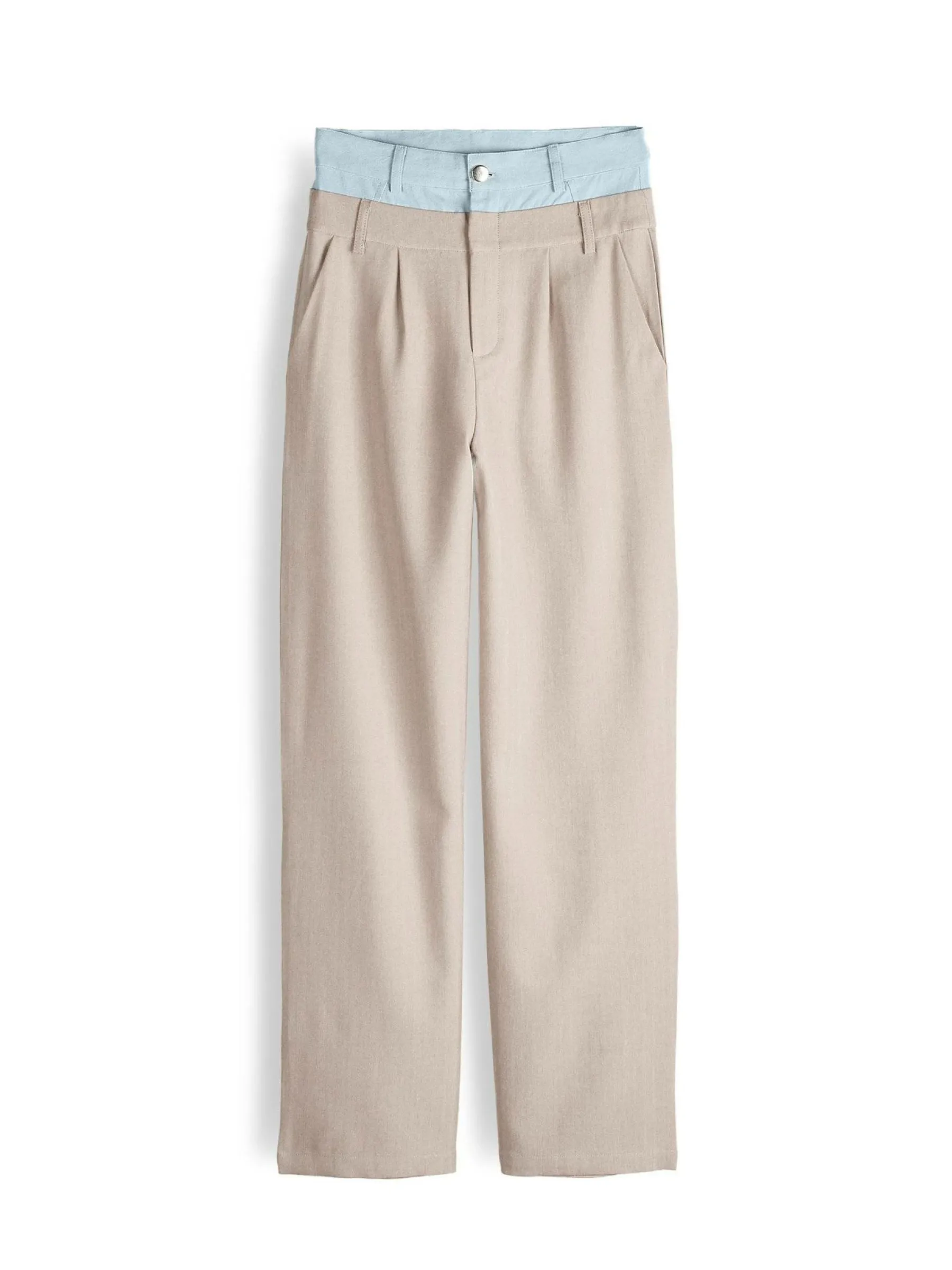Kolor: beżowyKrój: szerokie, z wysokim stanemTyp: spodnieDługość: dlugiePattern style: wielobarwnyMateriał: miesza…