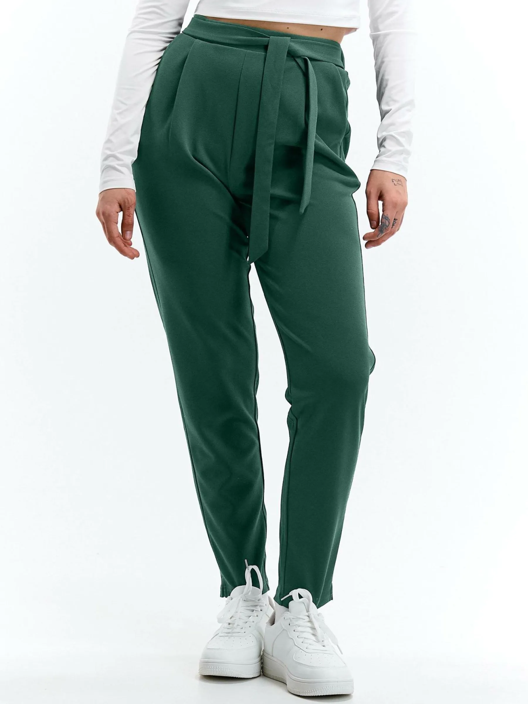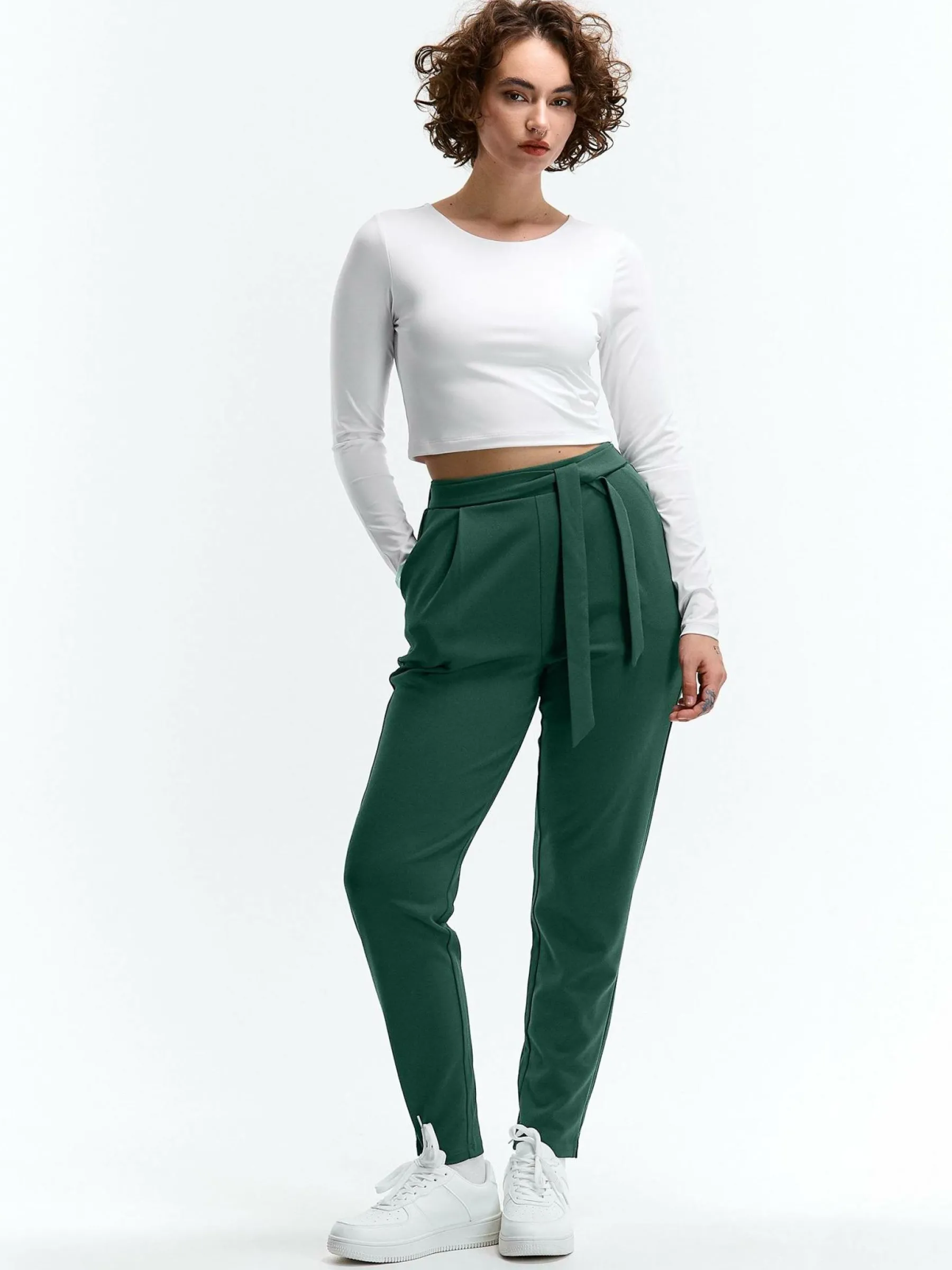 Kolor: zielonyKrój: straightTyp: spodnieDługość: dlugiePattern style: pojedynczy kolorDetal: z paskiem, z kieszeniam…