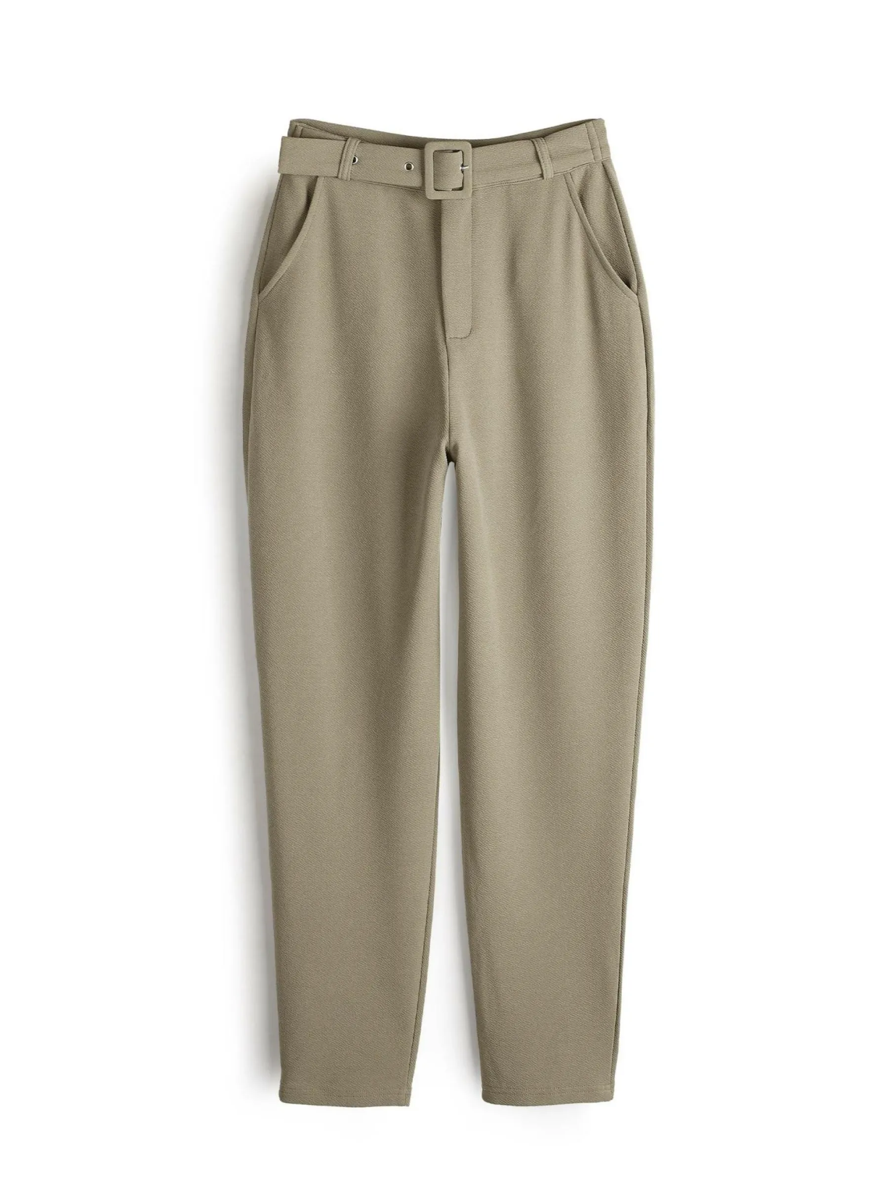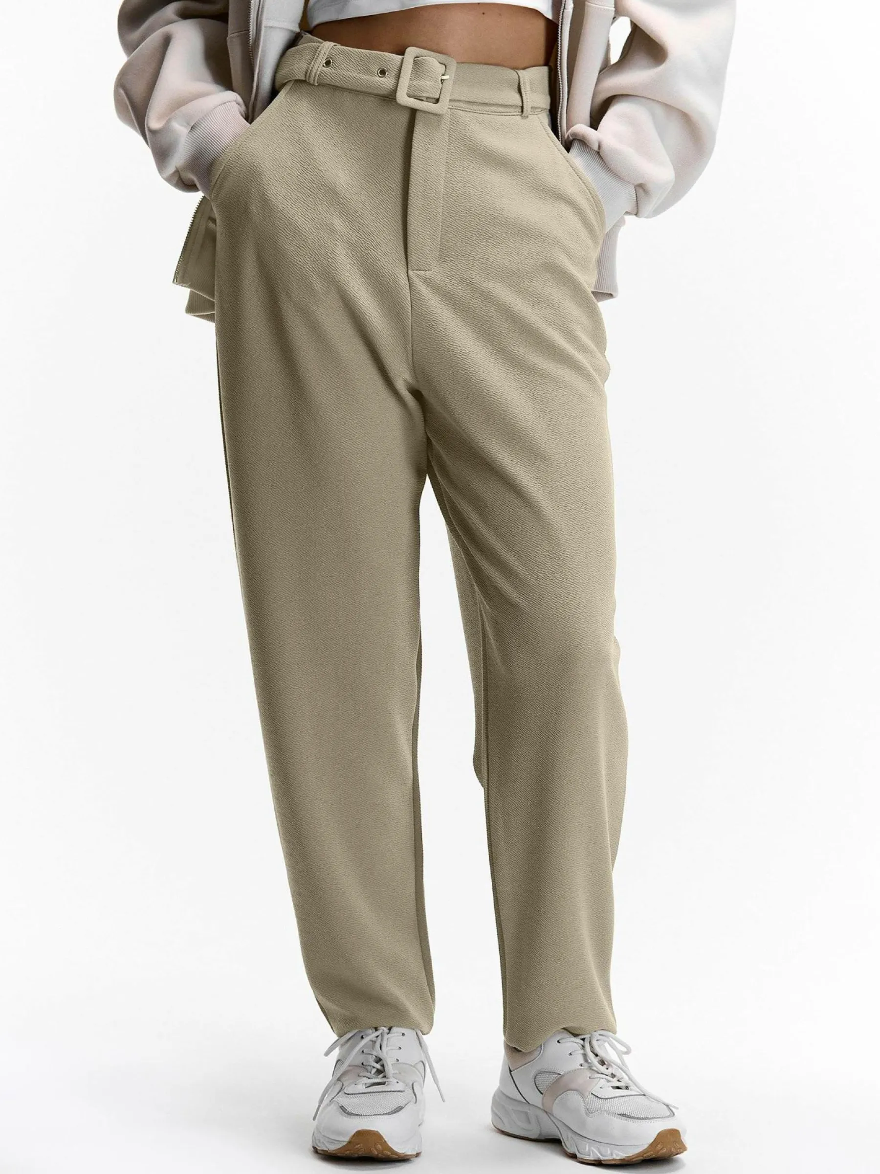 Kolor: beżowyKrój: straight, z wysokim stanemTyp: spodnieDługość: dlugiePattern style: pojedynczy kolorDetal: z pas…
