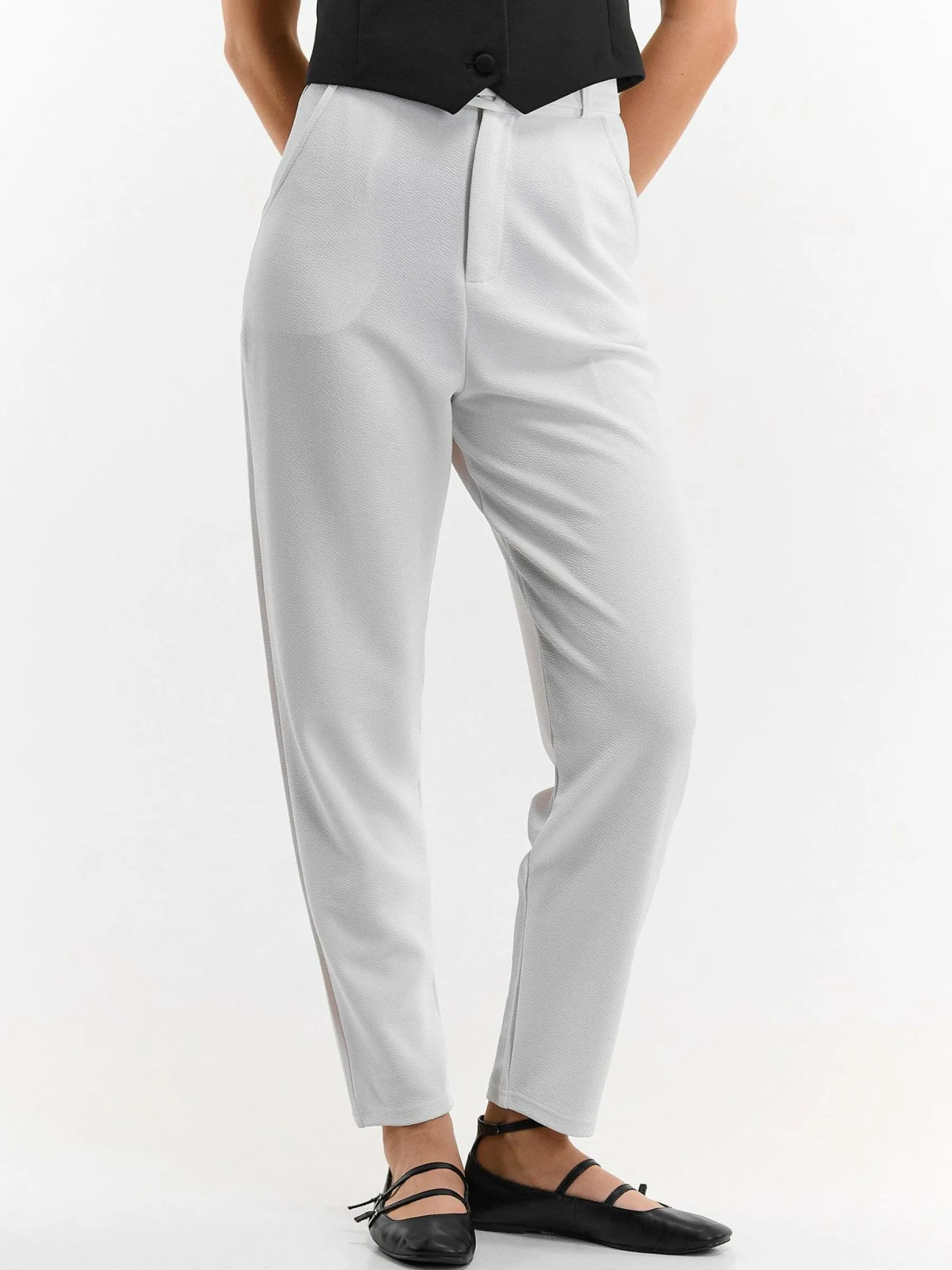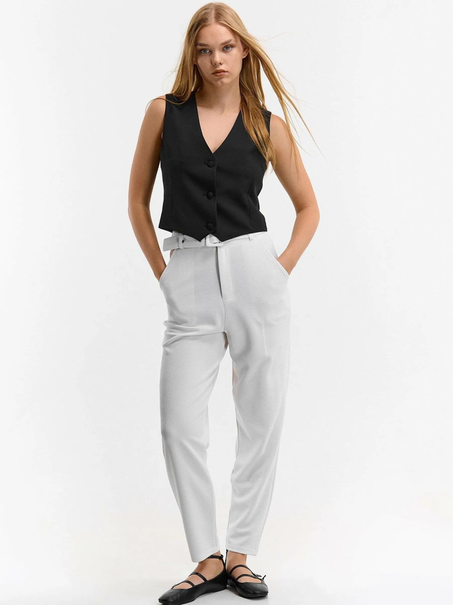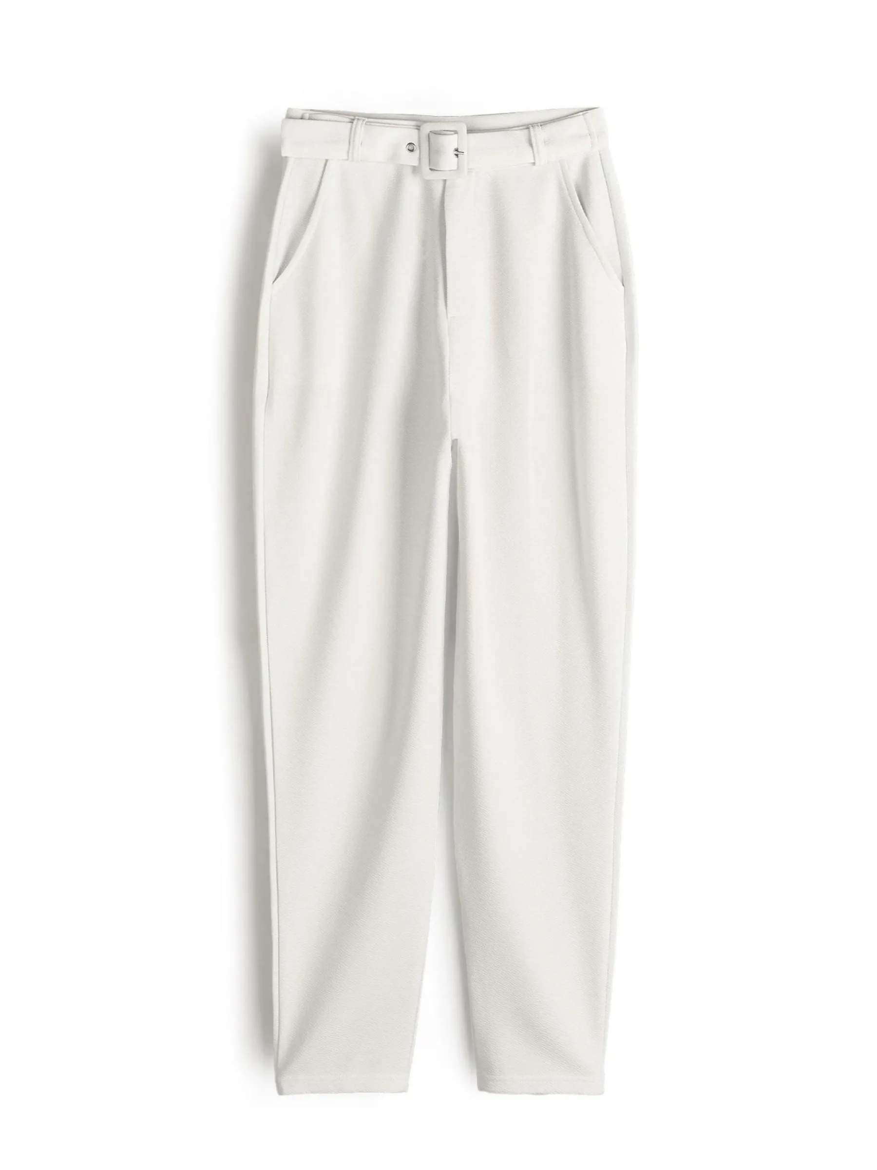 Kolor: białyKrój: straight, z wysokim stanemTyp: spodnieDługość: dlugiePattern style: pojedynczy kolorDetal: na zam…
