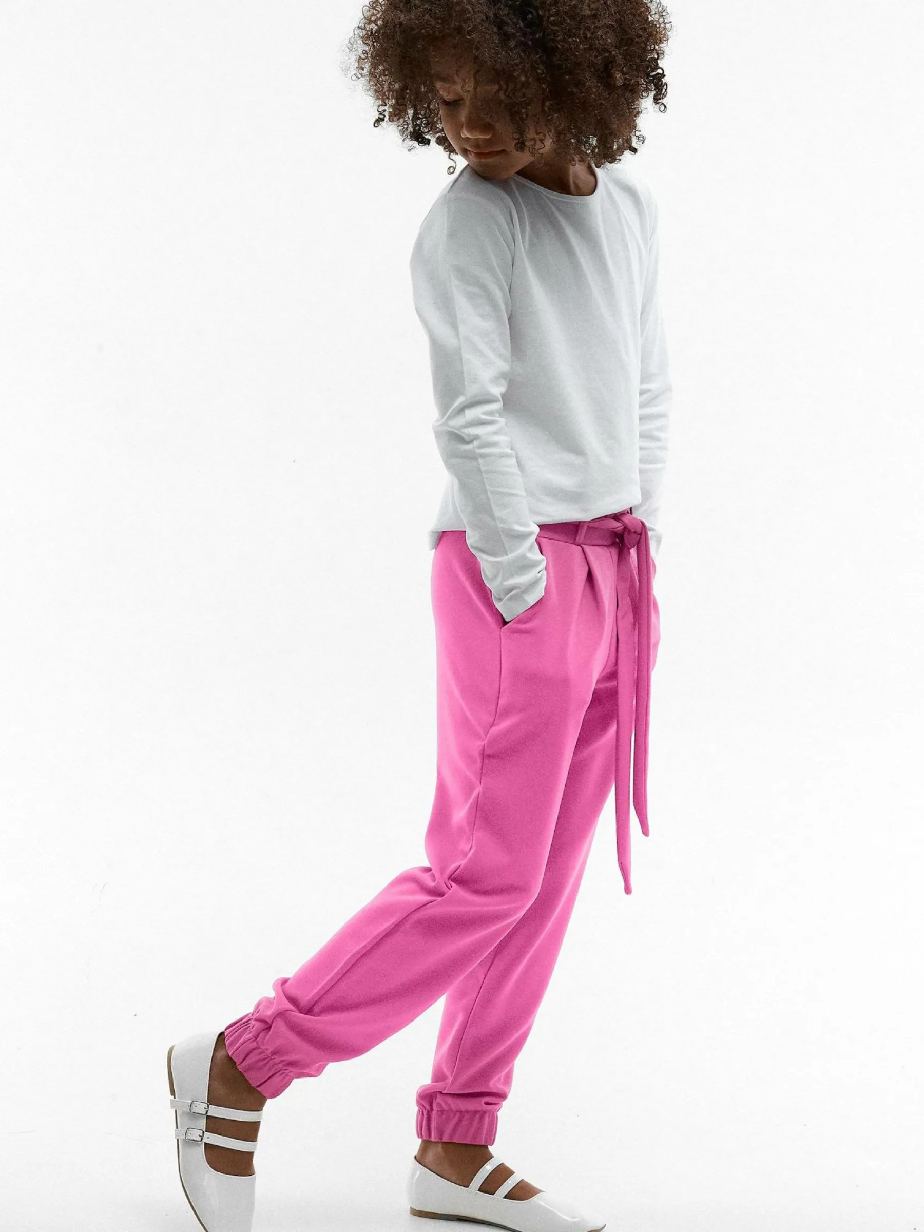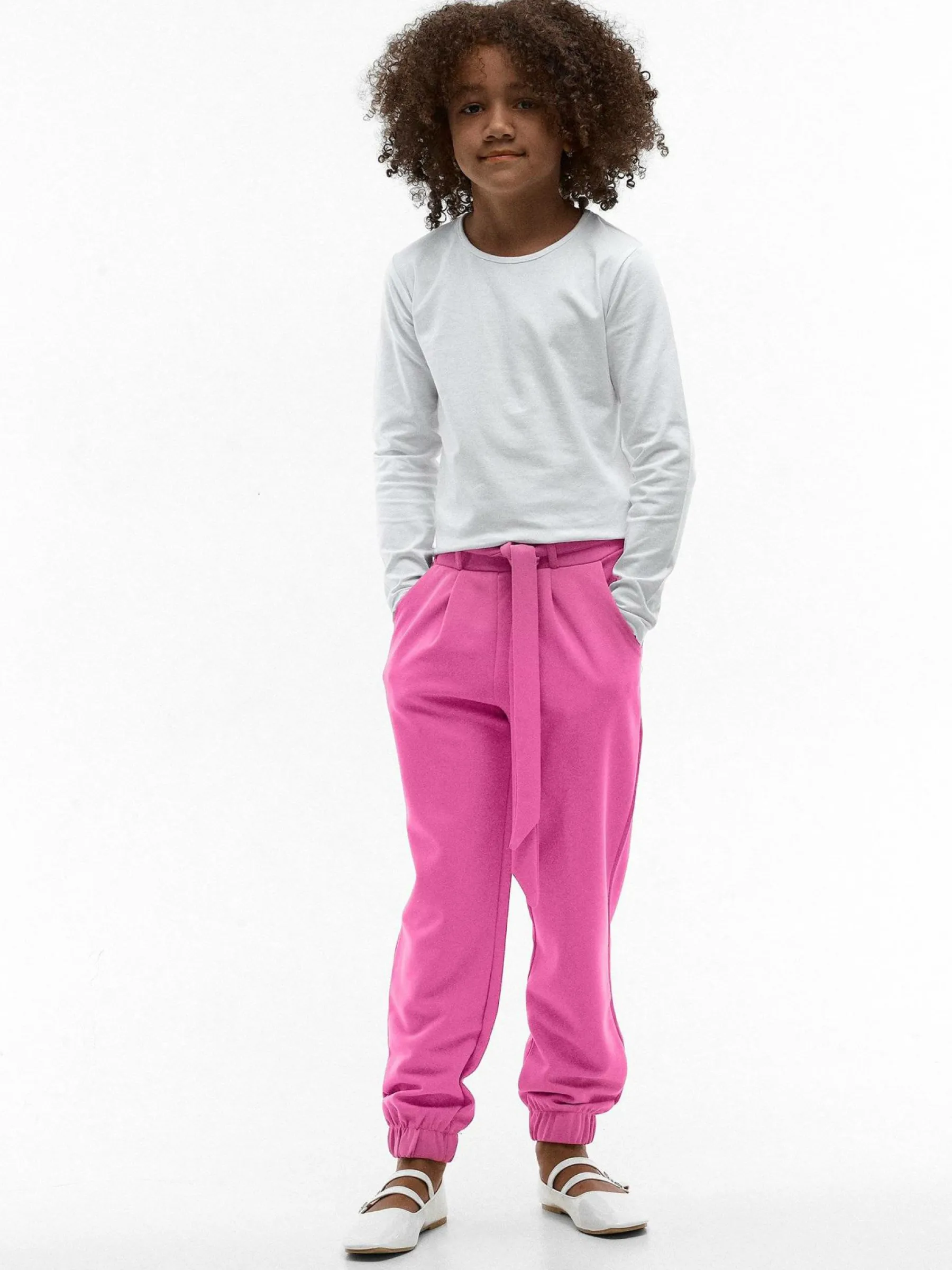 Kolor: różowy, purpurowyKrój: straightTyp: spodnieDługość: dlugiePattern style: pojedynczy kolorDetal: z paskiemMa…