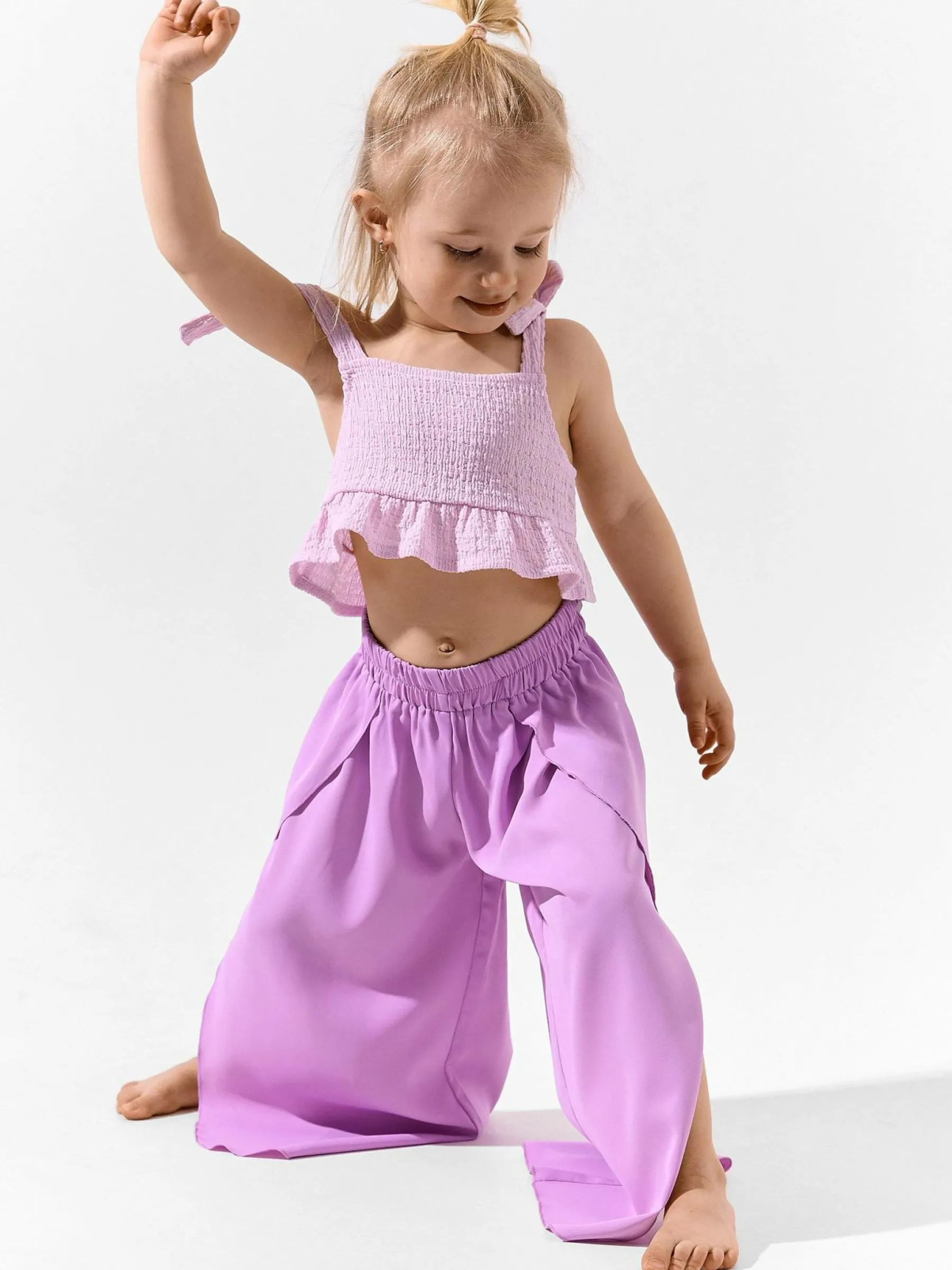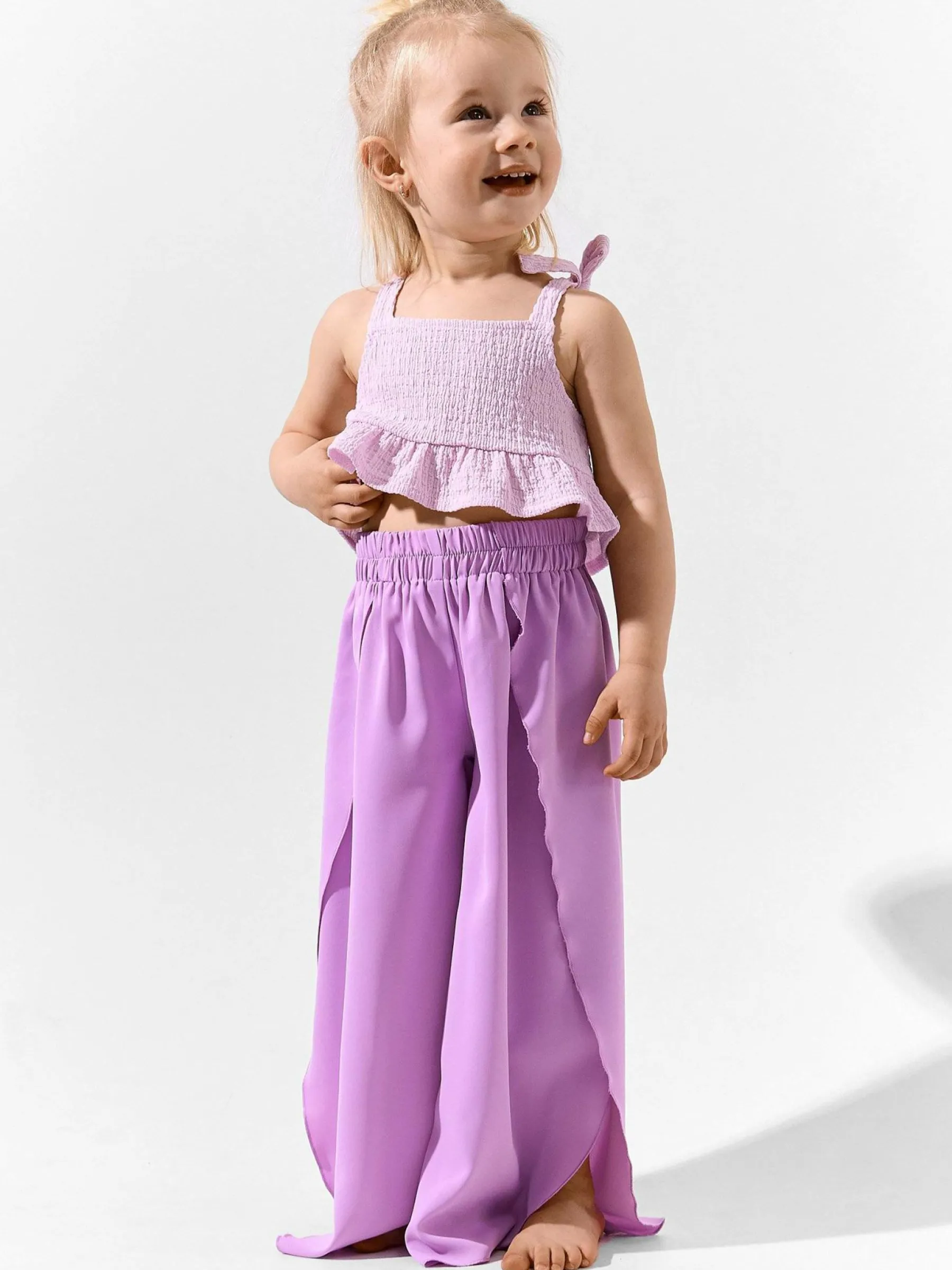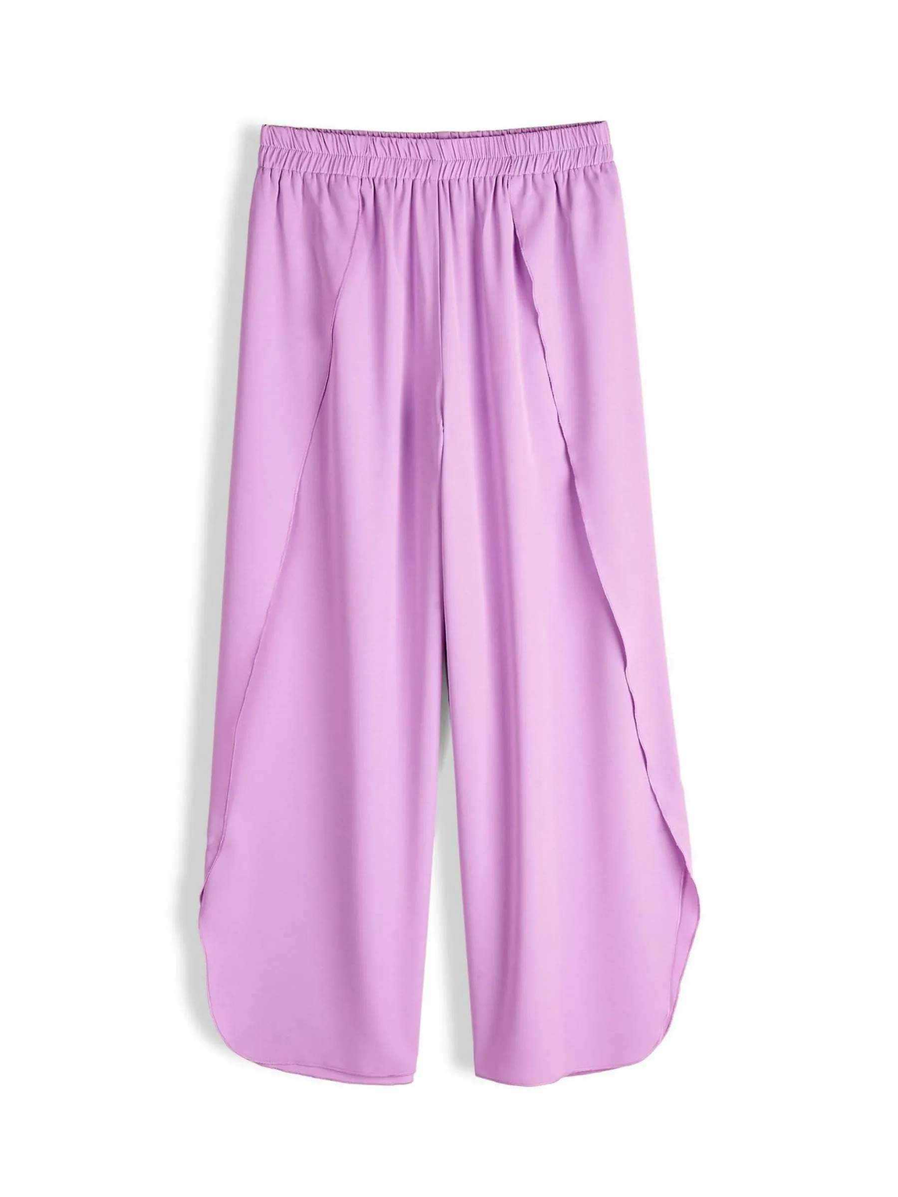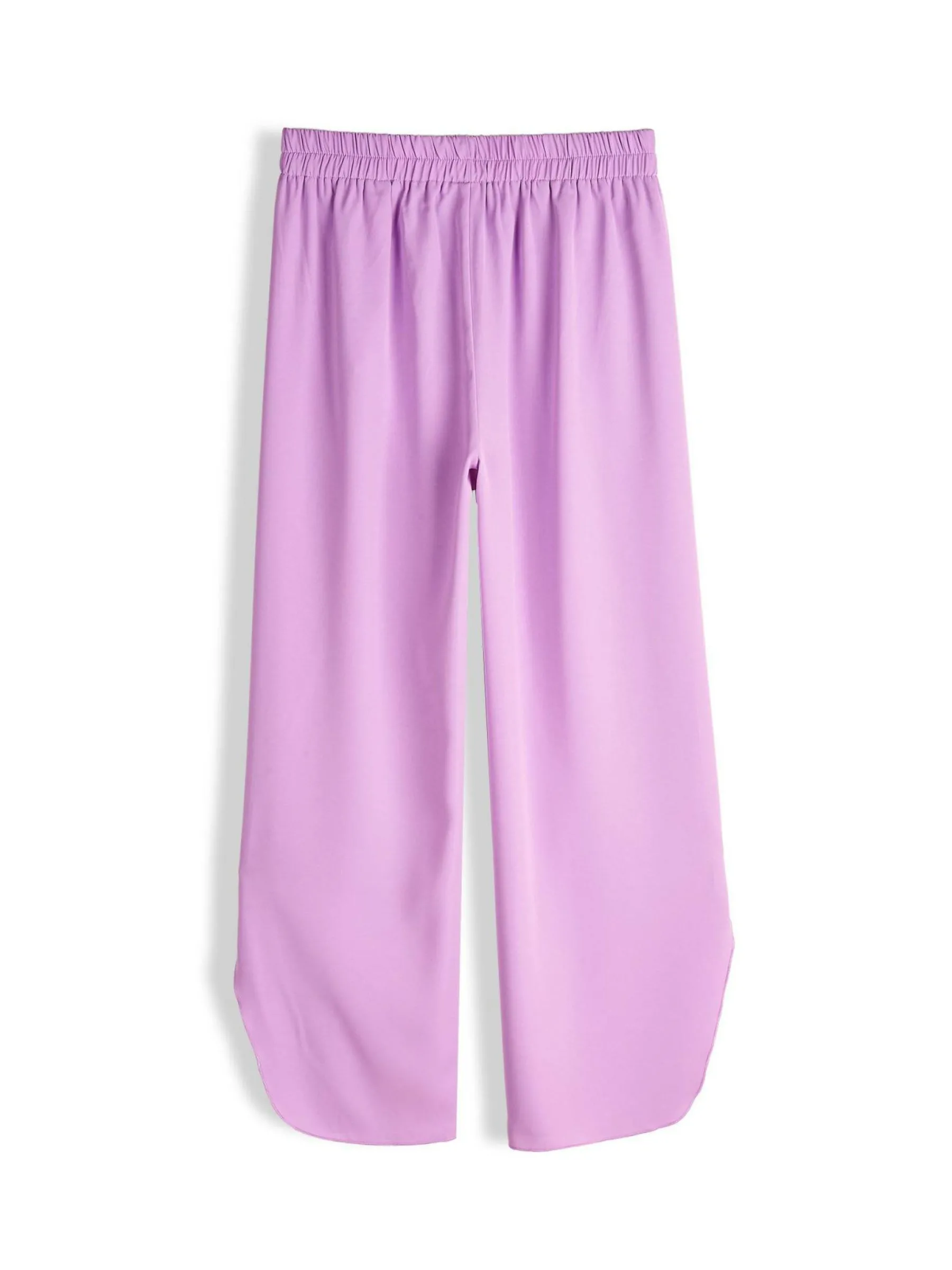 Kolor: purpurowyKrój: szerokieTyp: spodnieDługość: dlugiePattern style: pojedynczy kolorDetal: z rozcięciem, z elas…
