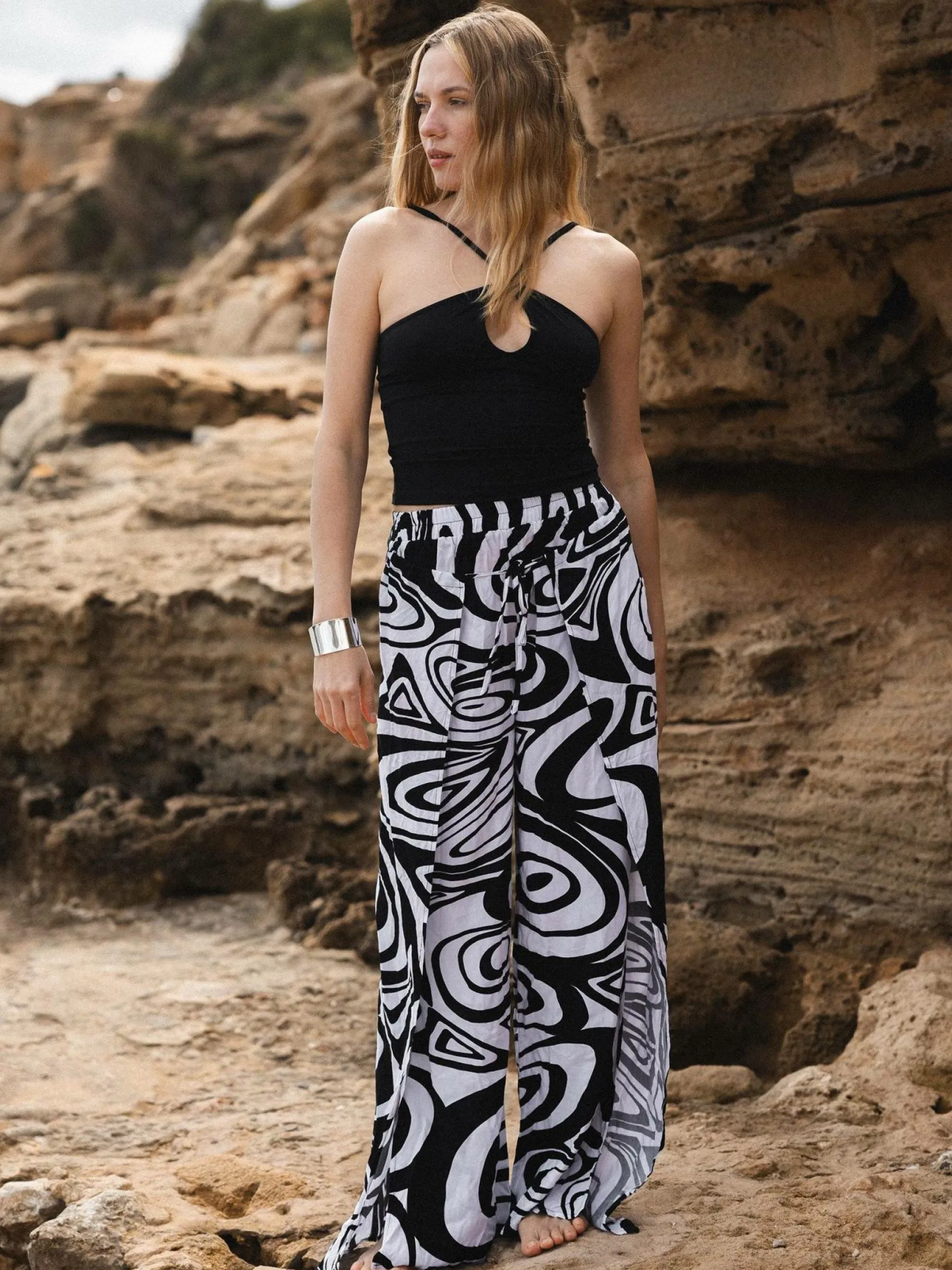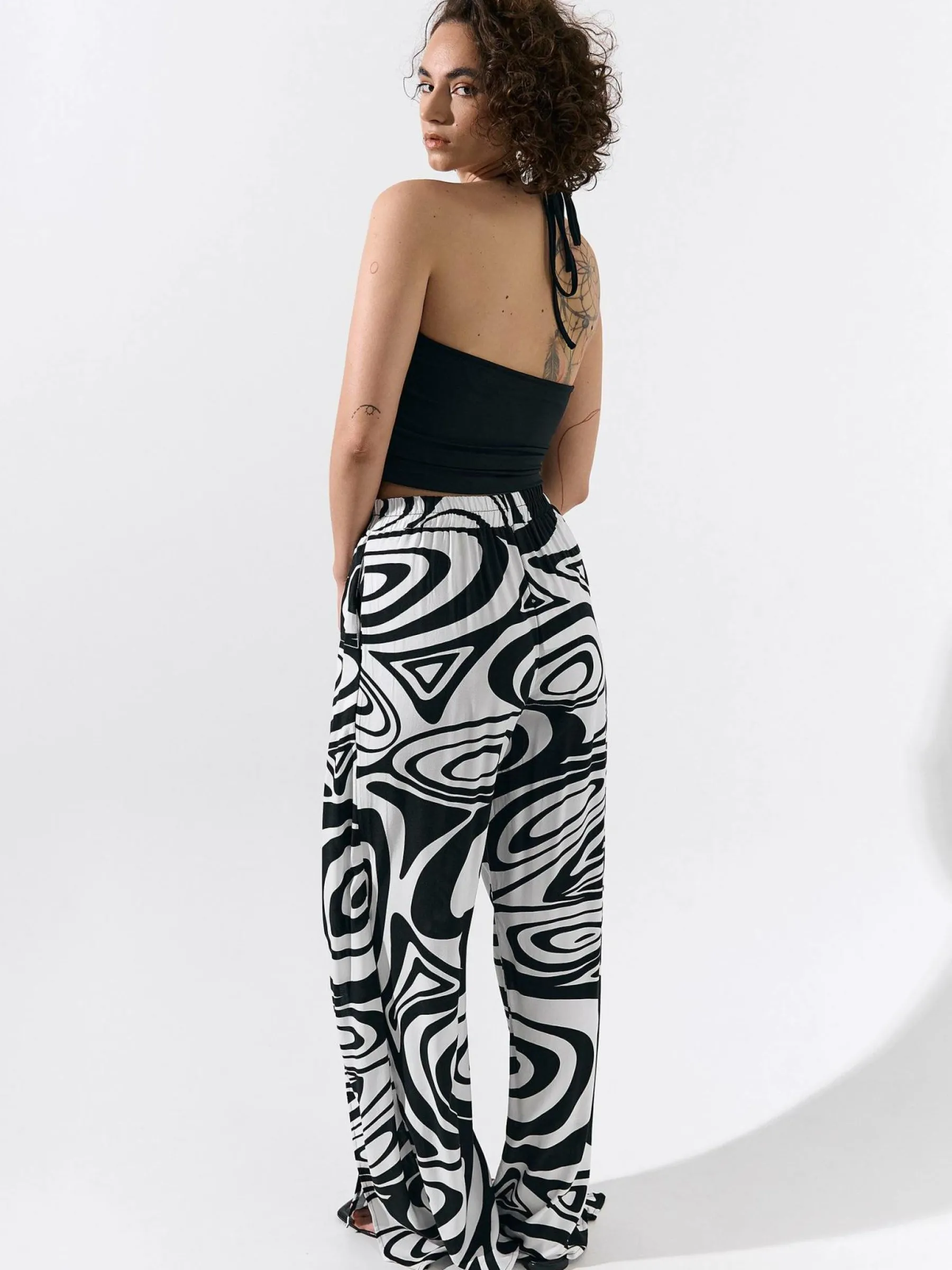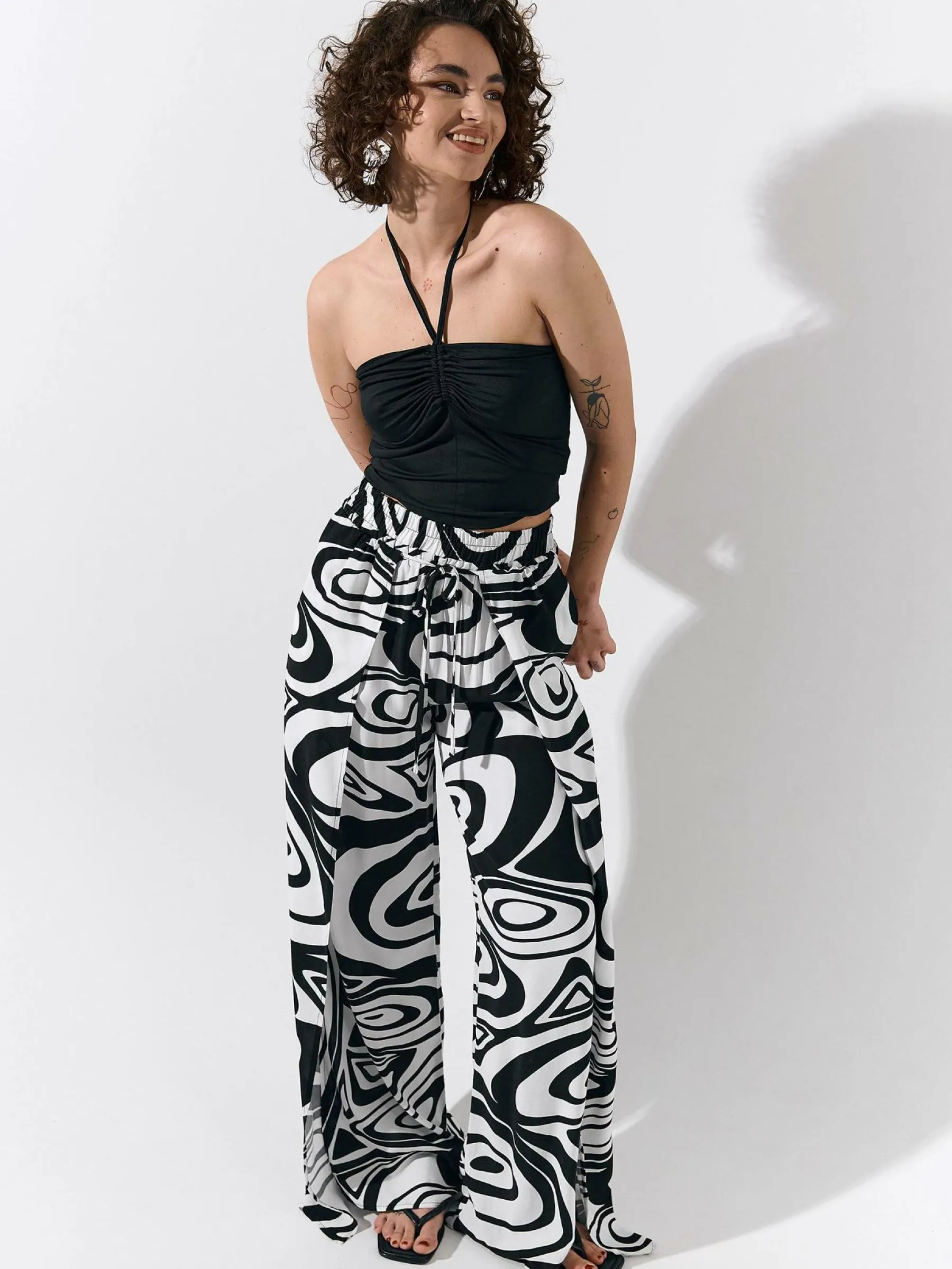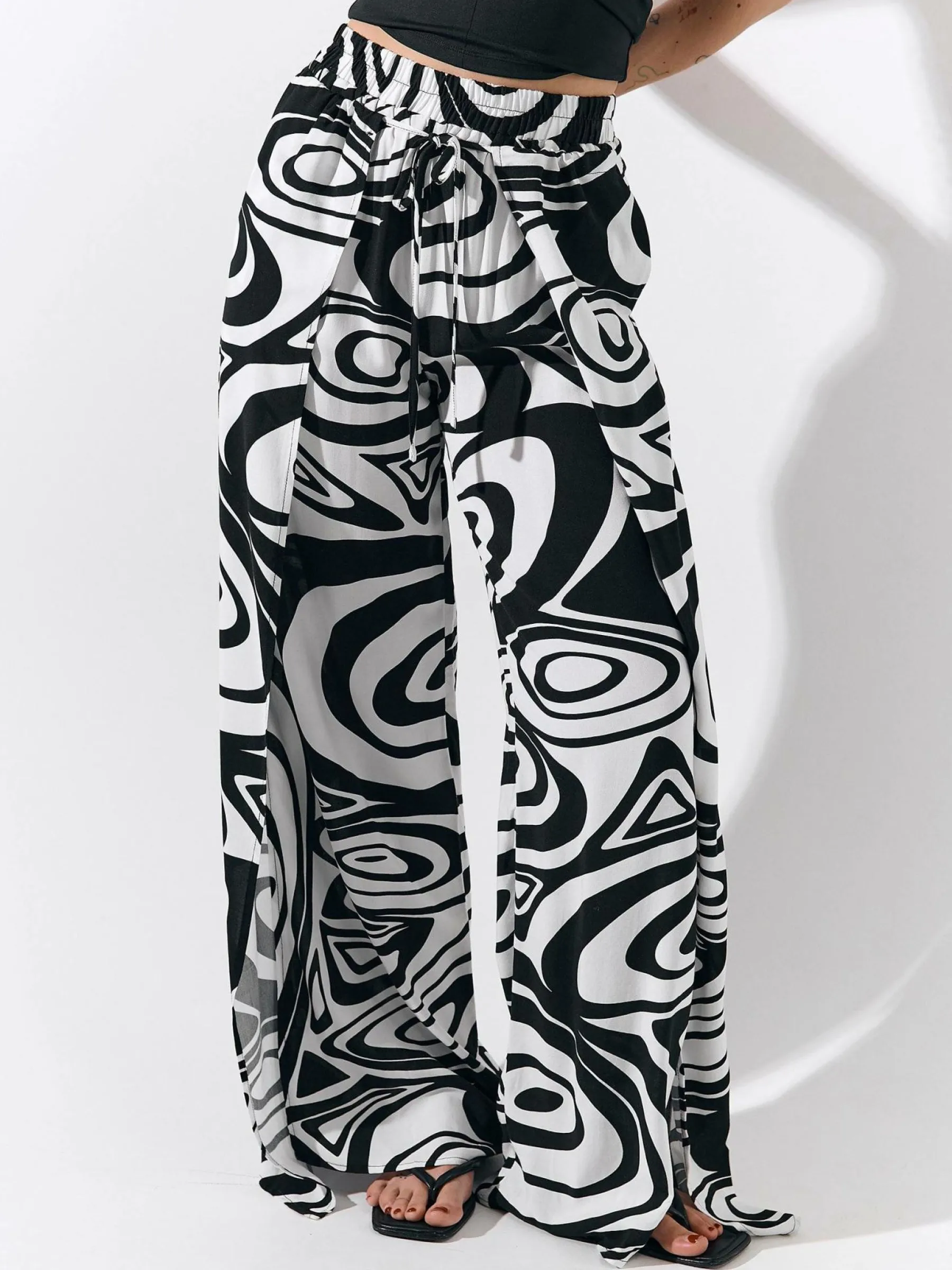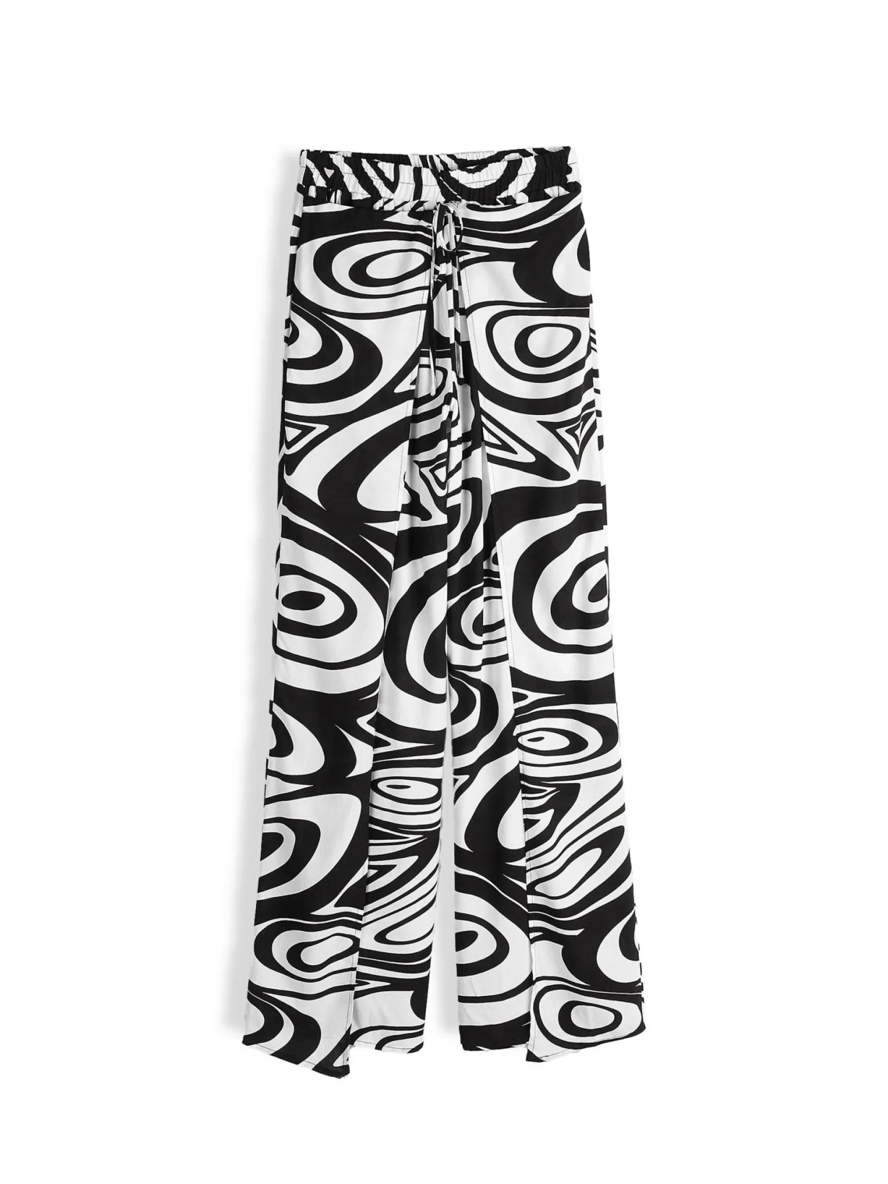 Kolor: białyKrój: kopertówkiTyp: spodnieDługość: dlugiePattern style: wzorzysteDetal: ze sznurowaniem, z rozcięci…