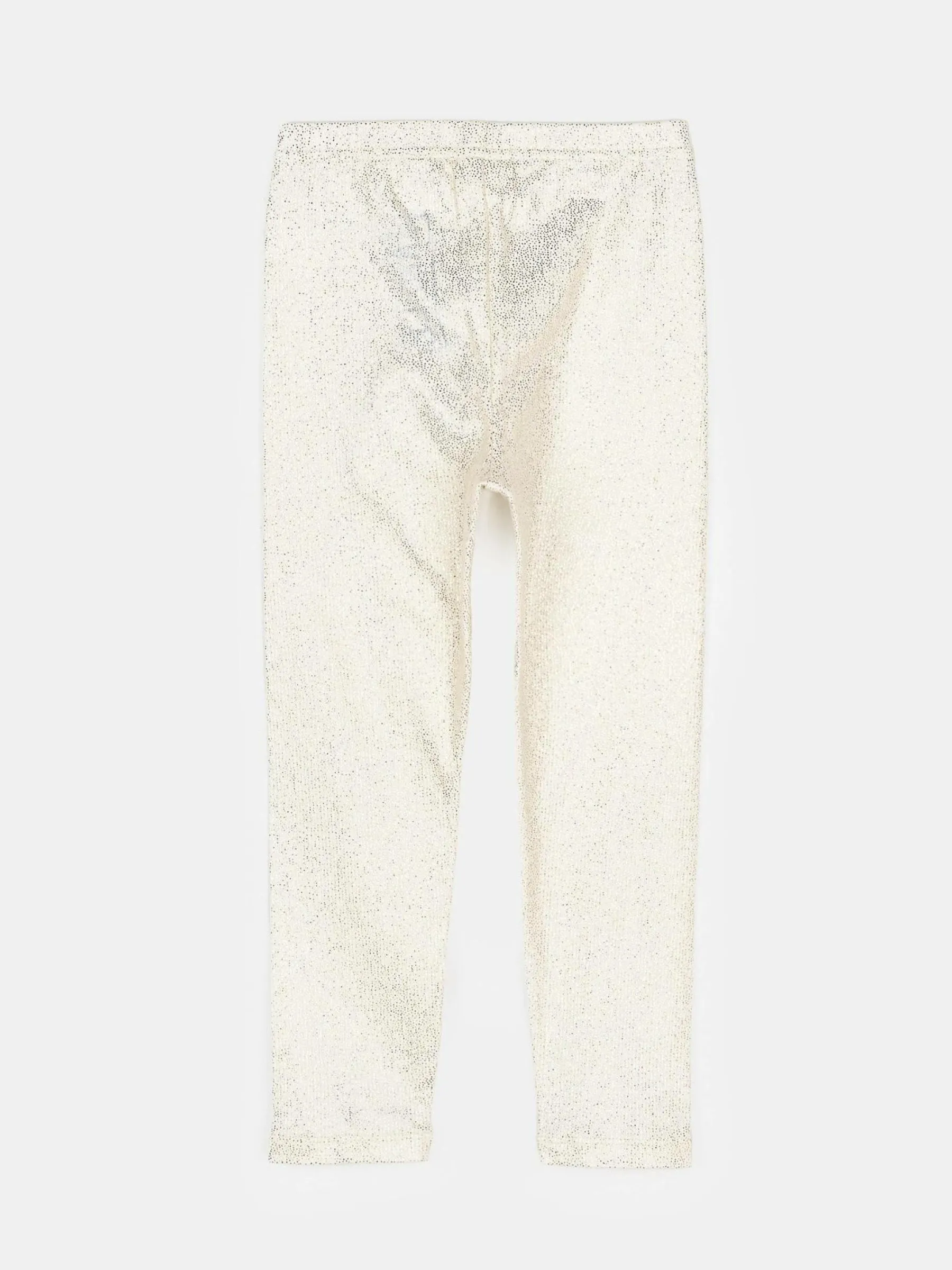 Kolor: gold, metalicznyKrój: slimTyp: spodnieDługość: dlugiePattern style: pojedynczy kolorDetal: z elastyczną opas…