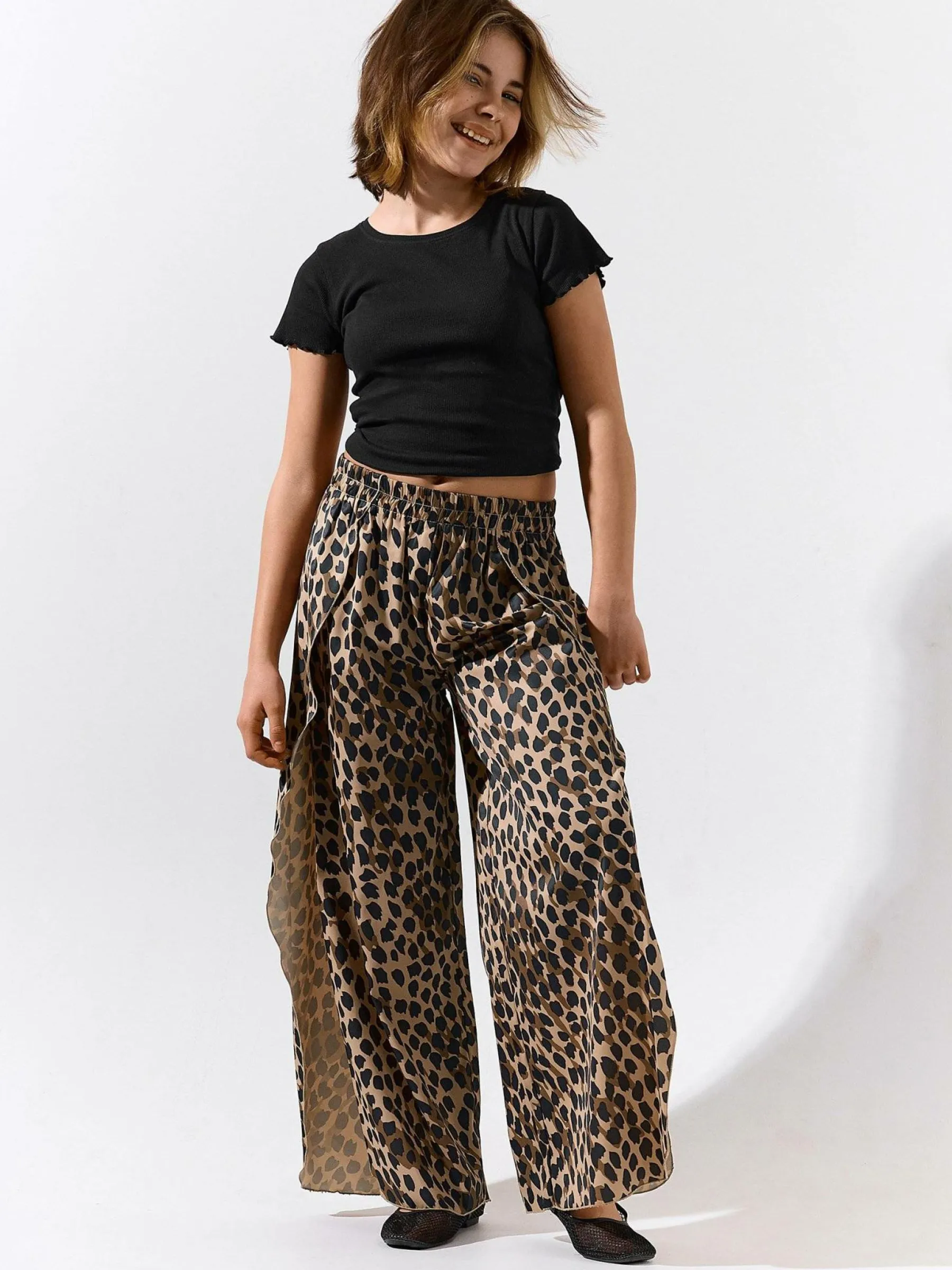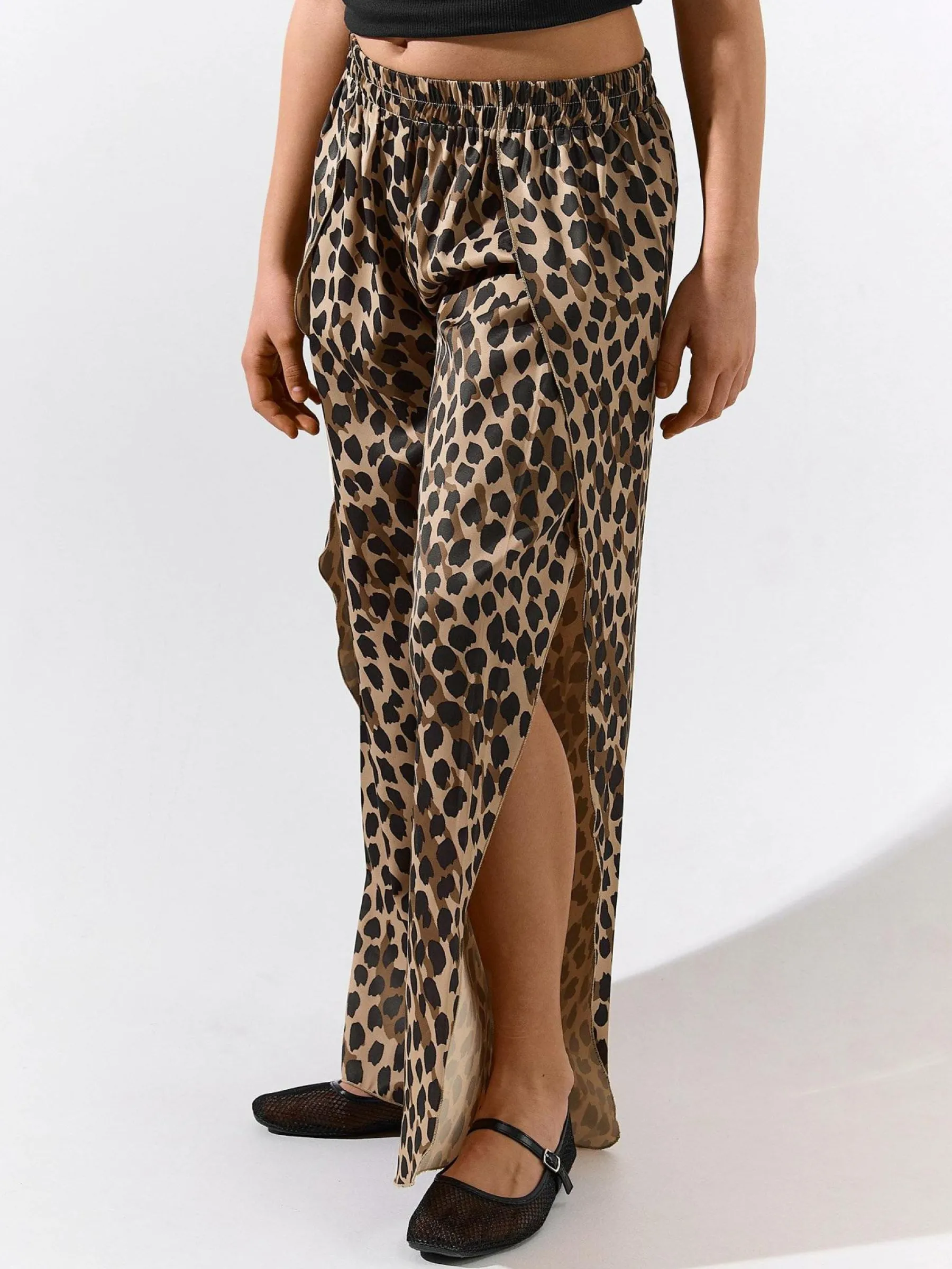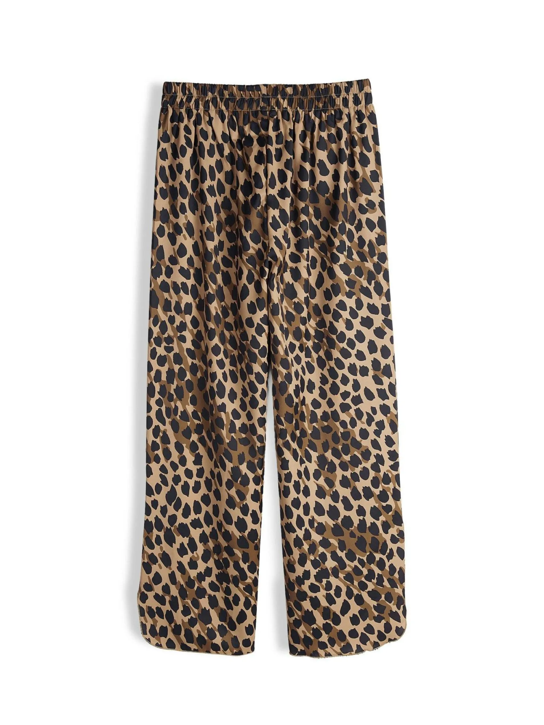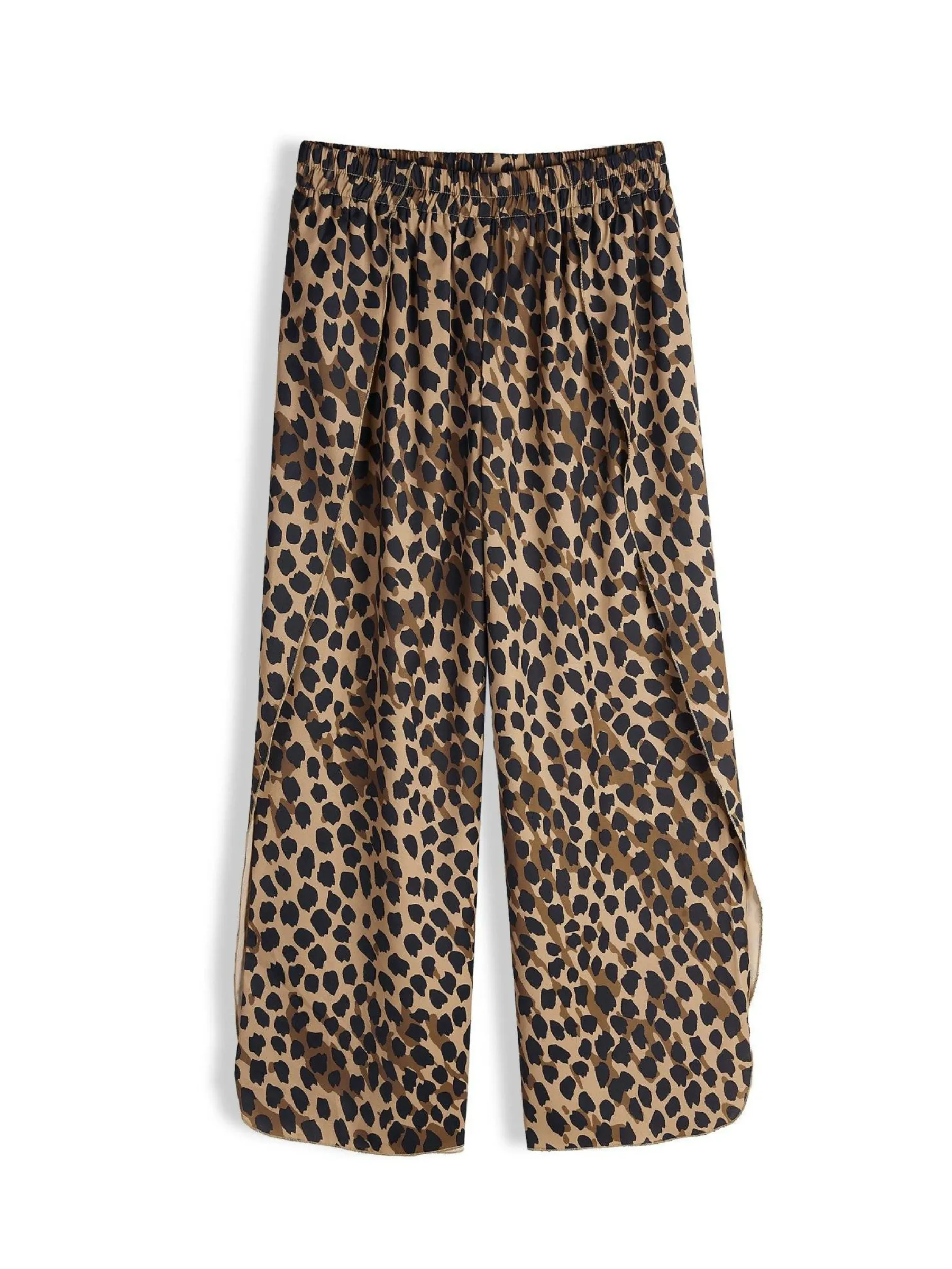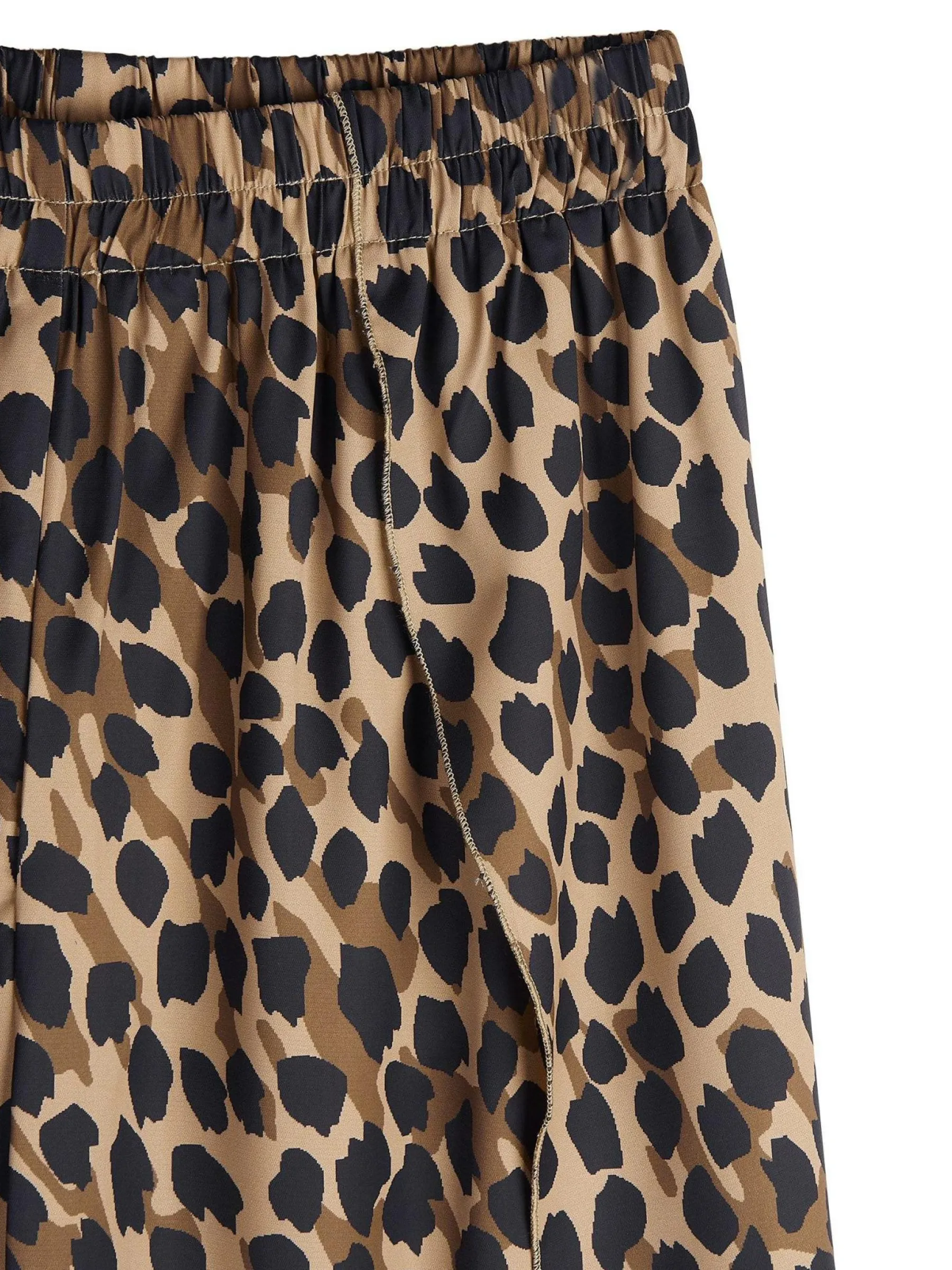 Kolor: brązowyKrój: szerokieTyp: spodnieDługość: dlugiePattern style: zwierzecyDetal: z elastyczną opaską, z rozc…
